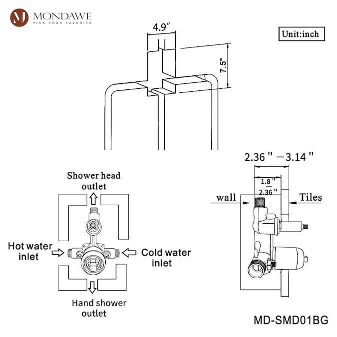 • Max Flow Rate (Showerhead): 2.5 GPM (9.5 LPM)