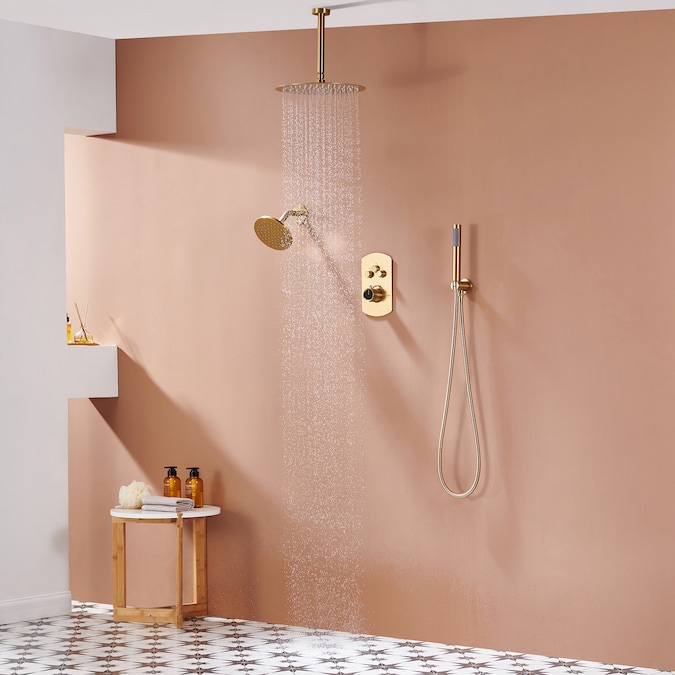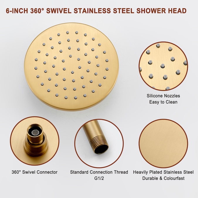 - 360 Angle Adjustable Dual Rainfall Shower Heads: With 12 in ceiling-mounted round shower head and one more 6 in wall-mounted shower head, you can use two showers together to create a spa-like shower experience.
