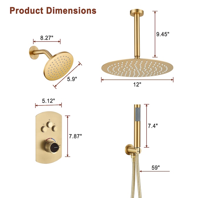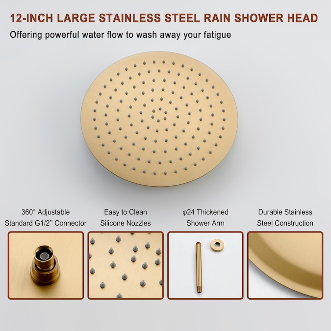 - Shower Head Diameter (Inches): 12