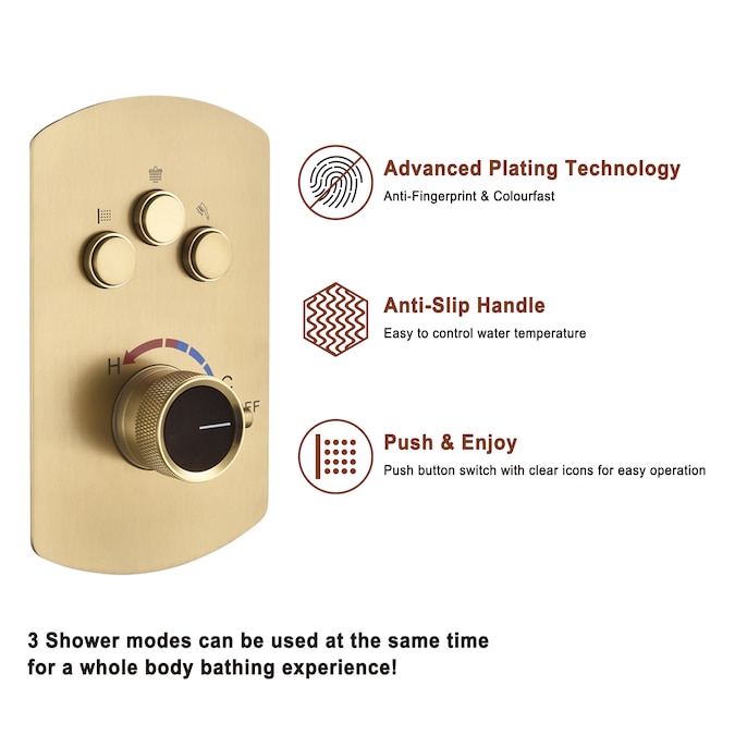 - Anti-Scald: Pressure balanced valve will prevent scalding, and ensure a comfortable and safe shower experience.