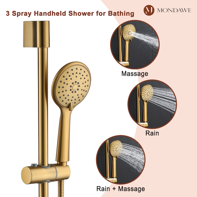 - Handheld Shower Head: 3 spray patterns, ABS material, 1.8 GPM