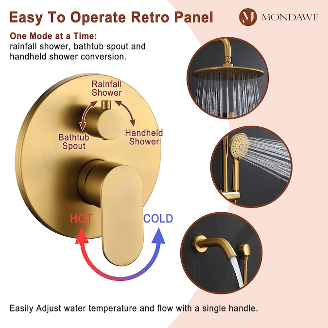 - 3-Way Diverter: Shower head or handheld shower or bathtub spout, cannot be used at the same time