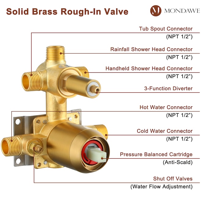 - Pressure Balanced Valve: Anti-Scald, offers water at the desired temperature and keeps it constant without fluctuations to prevent scalding