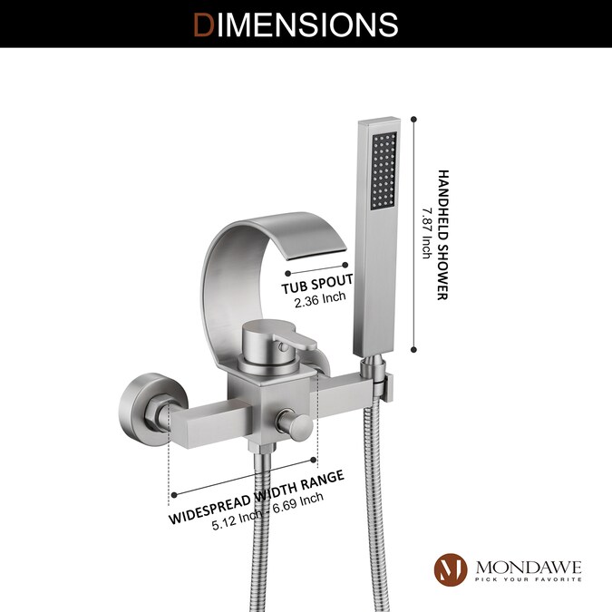 - Premium Material Construction: This shower tub kit is made of solid brass body, durable zinc alloy handle and stainless steel spout and handshower.
