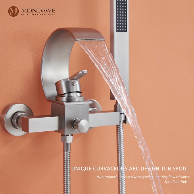 Add a splash of contemporary style and modern elegance to your bathroom with this single handle shower tub kit. The arc clean lines, horizontal spout, and three fashionable finish choices of the faucet create a sophisticated, high-end appearance. The unique arc spout provides a smooth waterfall experience, controlled by an easy-to-adjust 4-handle lever, which is designed to meet your needs.