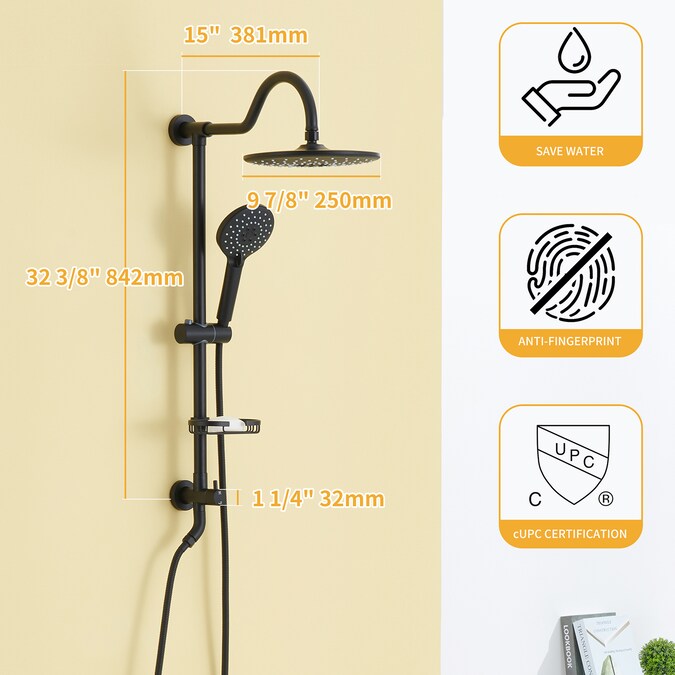 - Max Flow Rate (Showerhead): 2.5 GPM (9.5 LPM)