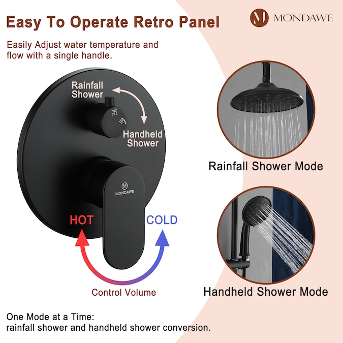 - Two Ways Diverter: Shower head or handheld shower, cannot be used at the same time