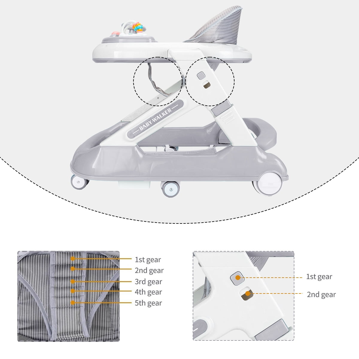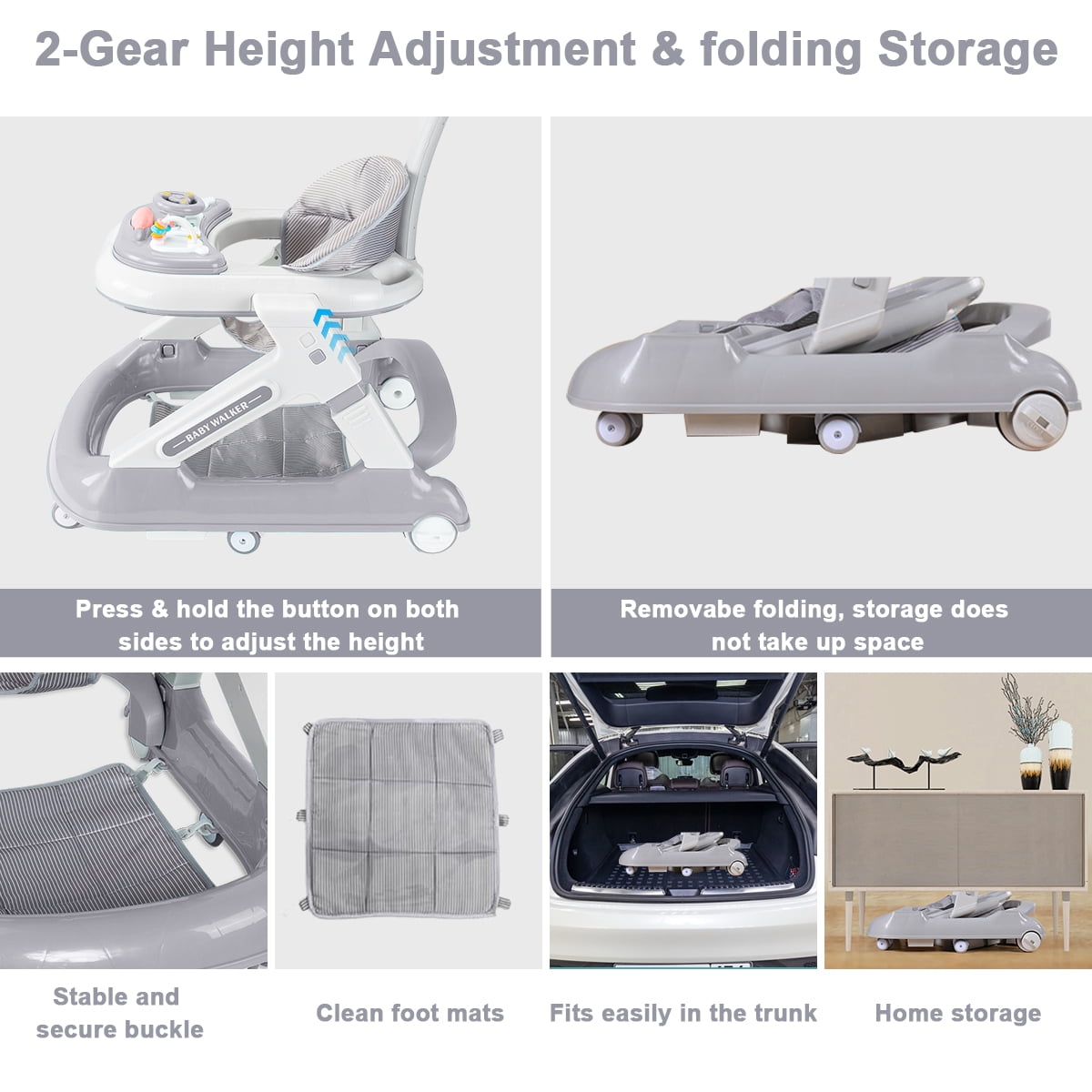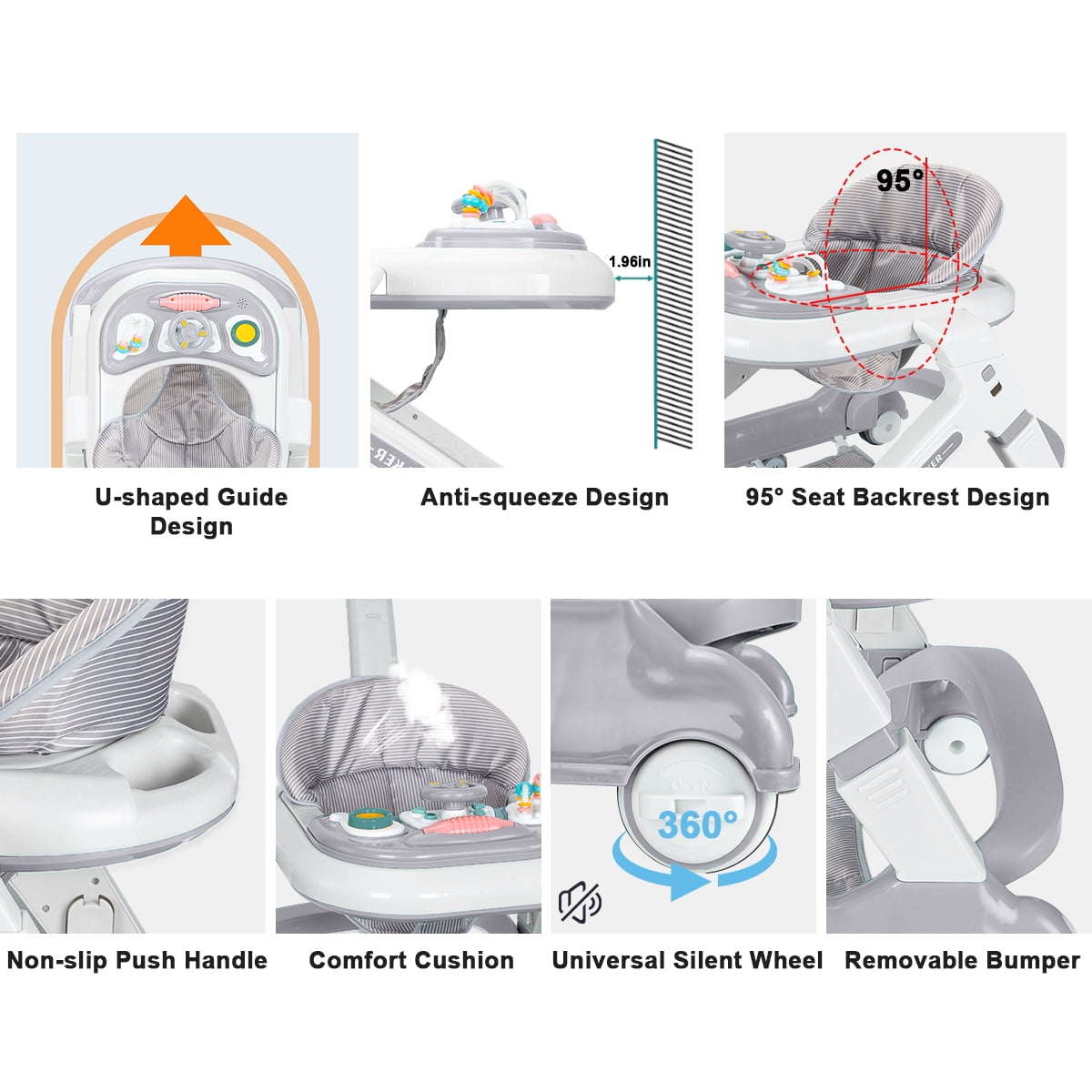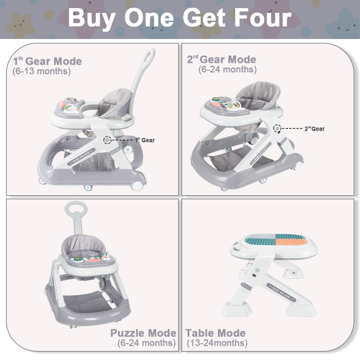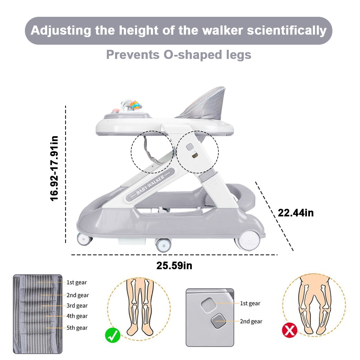 ????【5-in-1 Multi-functional Baby Walker】 – The baby walkers adopts 5-in-1 design, including baby walker mode, walker mode, block play table mode, stroller mode and dining table mode, which meets the needs of babies of both genders from 6 to 24 months, enlightens and educates, and helps babies perceive the world! ????【Easy Folding, Easy Storage】 – The baby walkers for boys can be easily folded by one person. After folding, the body is lightweight and compact, can be carried with one hand and placed under the bed, under the sofa and other small spaces, storage space is not limite ????【Complimentary Building Block Toys】-This baby walker with wheels removes the U-shaped chassis, can be transformed into a building block table, we have prepared for the babies to adapt to the building block accessories, to better meet the needs of children’s entertainment! ????【7-gear Height Adjustment】-The toddler walker can be adjusted in height, the body can be adjusted in 2 levels, and the seat cushion can be adjusted in 5 levels, which can be adjusted in time according to the growth of the baby’s legs, and effectively and scientifically prevent the O-shaped legs. ????【Compact Scientific Design】 – This walkers for babies 6-24 months have delicate designs: wheel knob design, adjustable wheel speed to match different walking periods; Z-shaped body design, the head features a safe distance to prevent kids from squeezing the hand; 95 ° backrest design to protect the baby’s spine. ????【Child-friendly Material】- The cushion of walker for babies is made of high-density linen fabric, which is comfortable and breathable; the body is made of edible-grade PP material, and the dinner plate is easy to clean, safe and environmentally friendly. Product Dimensions:27 x 22.8 x 7 inches material_composition: PP Material Batteries required: No Item Weight: 13.4 pounds Product Net Content Quantity: 1 each