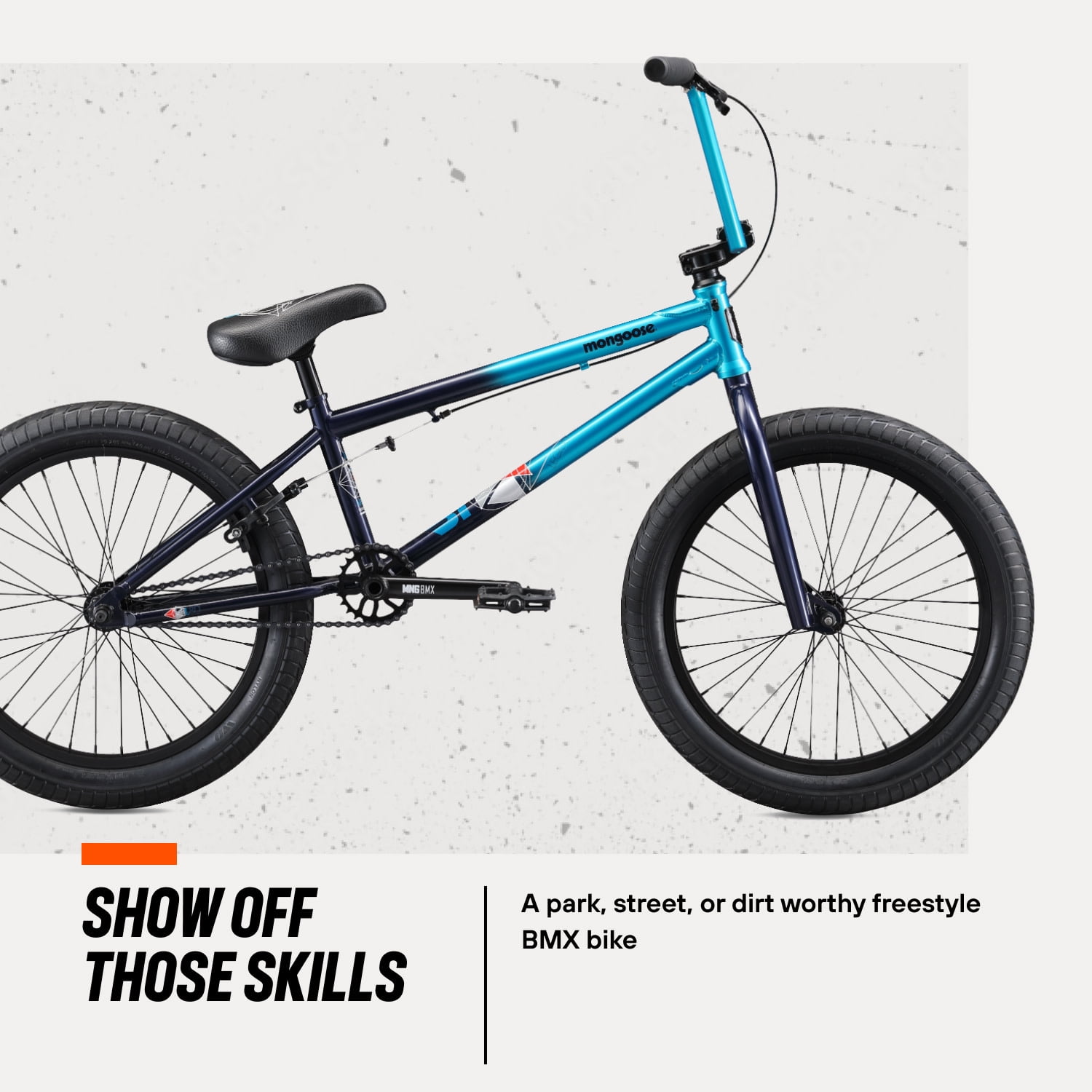 Mongoose Legion L80 Freestyle BMX Bike, 20″ Wheels, Ages 8 and up, Teal The Mongoose Legion L80 is the perfect BMX bike for kids ages 8 and up who are ready to take on the park, street, or dirt trails. Built for freestyle BMX riders, this boys bike is designed for durability, control, and performance, making it an ideal choice for young riders looking to take their BMX skills to the next level. The Legion L80 features a professional-grade 4130 chromoly front triangle with a 20.75” top tube, providing a lightweight and sturdy frame that handles tough tricks and rough terrain with ease. The 9” rise handlebars and 50mm stem offer precision control, while the 2.3” BMX tires and wide aluminum rims deliver excellent grip and durability for smooth rides and confident landings. Equipped with a 25x9T gearing system, 3-piece tubular chromoly cranks, and a mid-sealed bottom bracket, the L80 ensures a clean, reliable drivetrain that performs well under pressure. The aluminum U-brake and alloy brake levers provide responsive speed control, while the Hi-Ten steel BMX fork adds stability for a smoother ride. The Mongoose Legion L80 is the ideal kids bike for young BMX enthusiasts who want a bike built for park, street, and dirt action. Ready to be assembled and ridden right out of the box, this boys bike is ready for any BMX adventure. View more from us on our brand page.