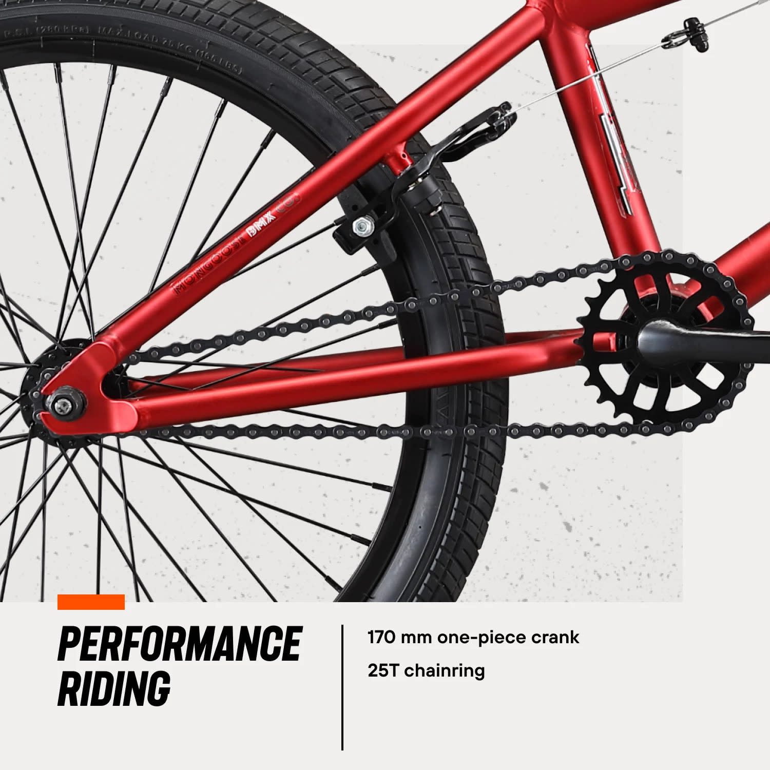 Mongoose Legion L10 Freestyle BMX Bike, 20″ Wheels, Ages 8 and up, Red The Legion L10 is the perfect entry-level BMX bike, designed to help you get started on your BMX journey with ease and confidence. Whether you’re hitting the ramps, cruising the streets, or practicing your skills, this bike is built to handle it all with durability and smooth performance. The Legion L10 features a strong Hi-Ten steel frame and 20″ top tube, providing a stable foundation for riders who are just starting out. Its responsive 8″ rise handlebars and 48mm stem are designed for easy control and precision, while the 36H aluminum rims paired with 2.25″ BMX tires ensure a smooth, grippy ride on a variety of surfaces. The bike’s 25x9T gearing and one-piece tubular chromoly cranks offer a clean, reliable drivetrain that’s easy to maintain. The Legion L10 is also built with safety and control in mind, featuring a steel U-brake and aluminum/resin brake levers for responsive stopping power. The Hi-Ten steel BMX fork ensures stability and performance, so you can ride with confidence whether you’re cruising or tackling new challenges. View more from us on our brand page.