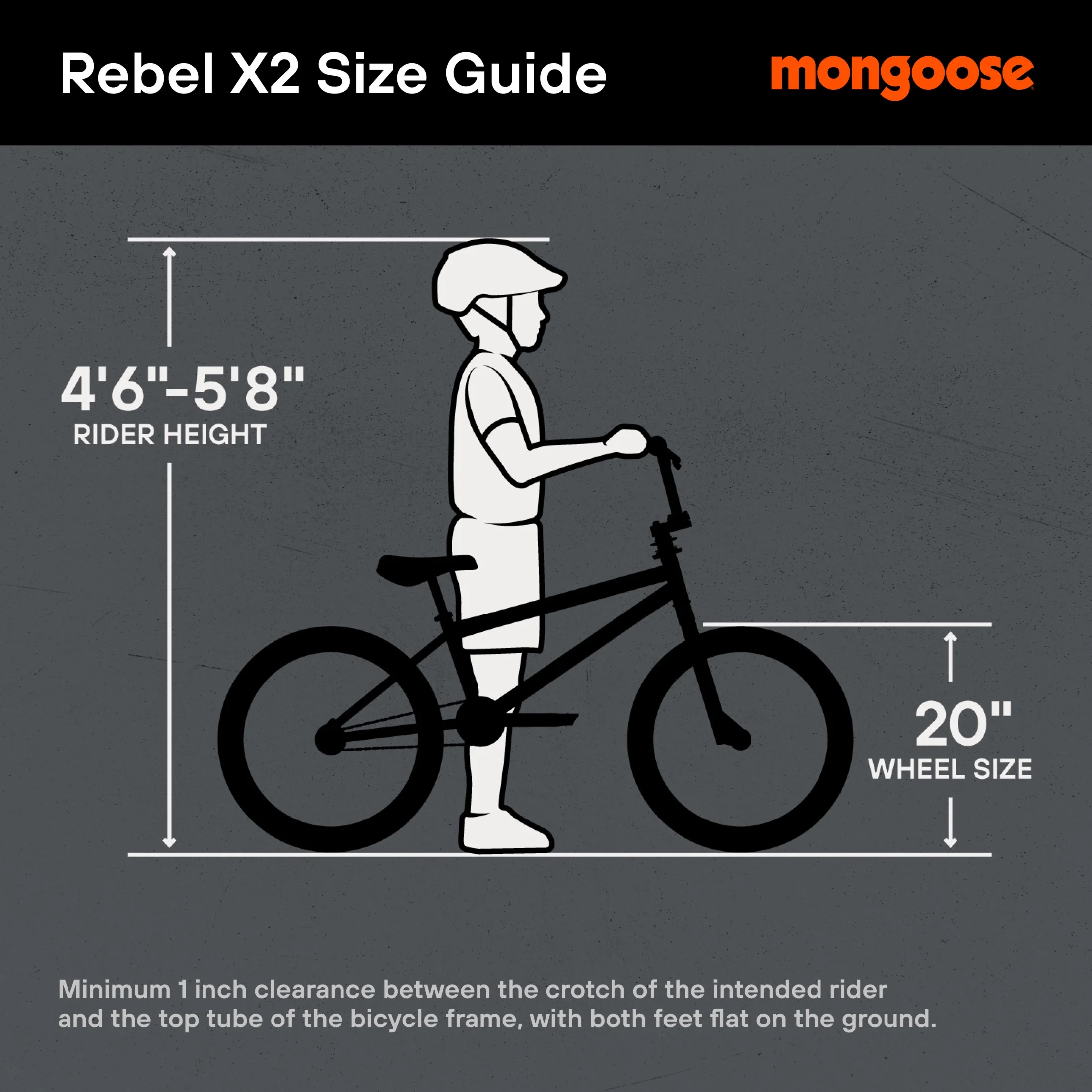 Prepare to shred with the Rebel X2 Youth BMX bike by Mongoose. Built for the bike park, this ride features a two-tone steel frame integrated head tube bearing for durability, while the included 4 axle pegs and long 160mm street grips to complete the BMX package. The single speed drivetrain with 3-piece tubular chromoly crank offers simplified riding and easy maintenance, and the rear U-brake delivers reliable stopping power and speed control. But that’s not all. The Rebel sits on big 20 x 2.4-inch tires for superior stability and a smooth ride. So get out there and tear it up with the Mongoose Rebel.