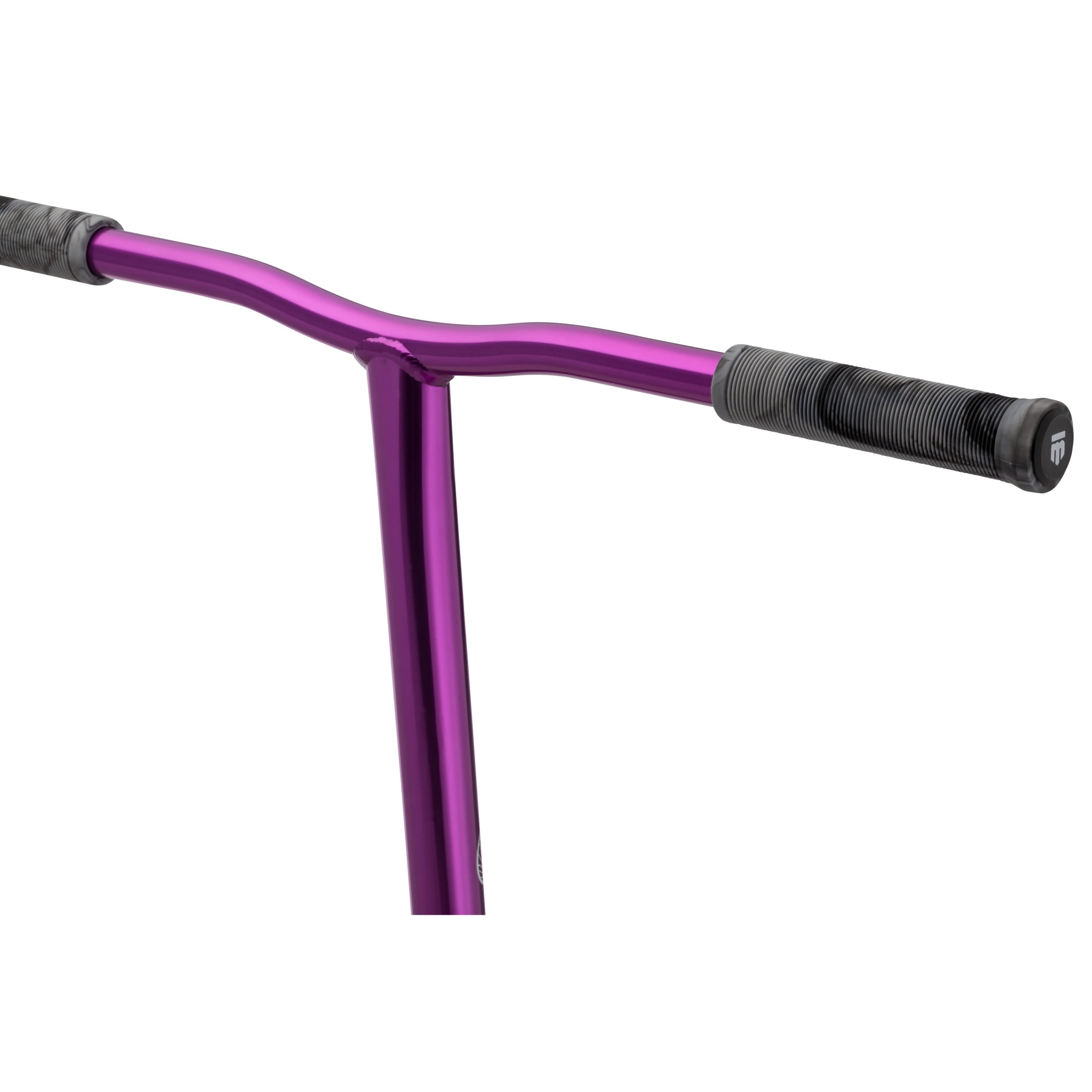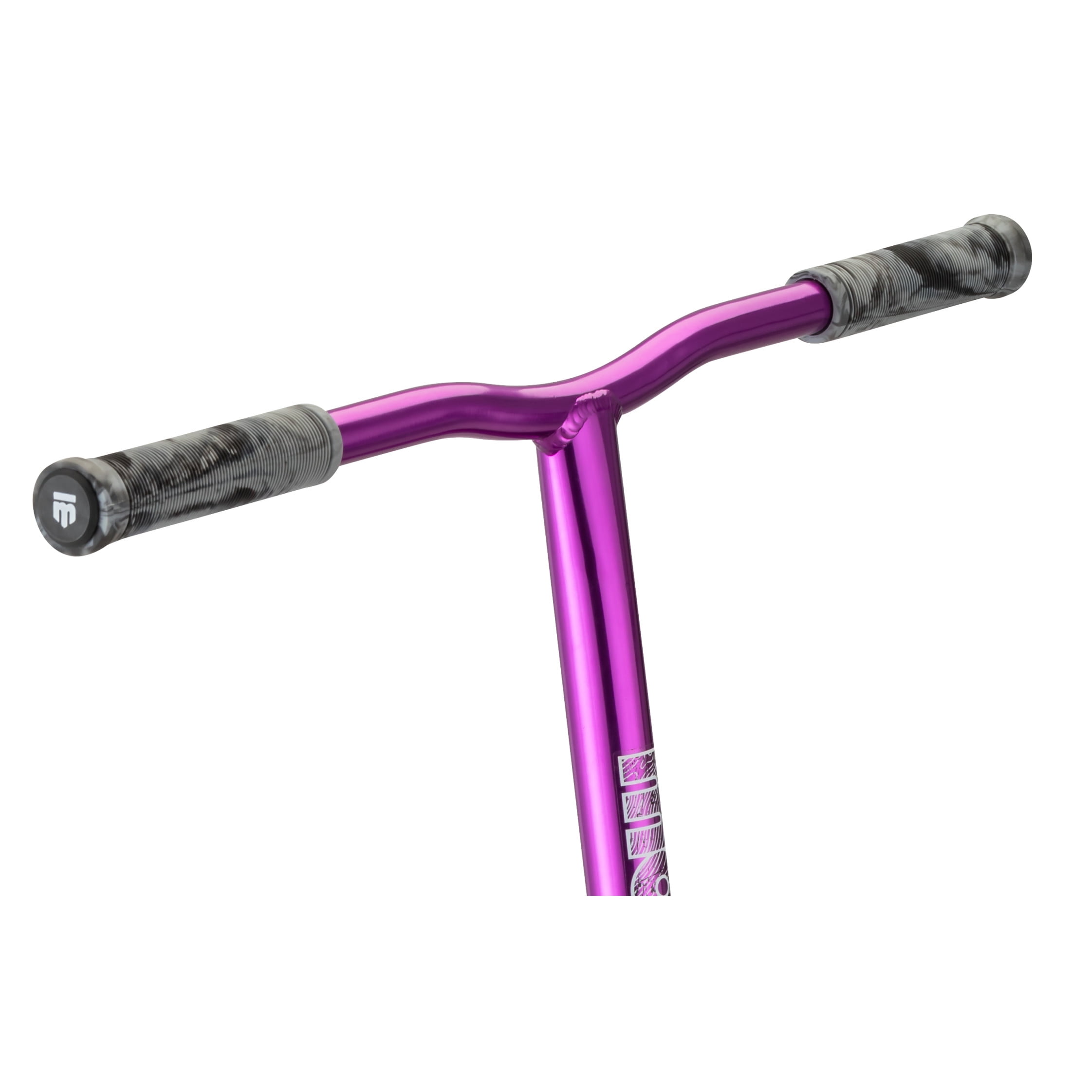 Lightweight alloy deck with extended standing area for pro-style scooter performance. Full-coverage MaxGrip™ on the alloy deck and brake combine with 110 mm high impact alloy wheels and durable ABEC-9 bearings to provide smooth non-slip riding. One-piece welded alloy T-bar handlebar with bike-style grips provide the perfect combination of durability and comfort. Quadruple anodized CNC clamp collar with sealed internal threadless headset, and CNC alloy fork for precise, crisp steering wherever you go. Heavy-duty frame supports riders ages 8+, up to 220 lbs.