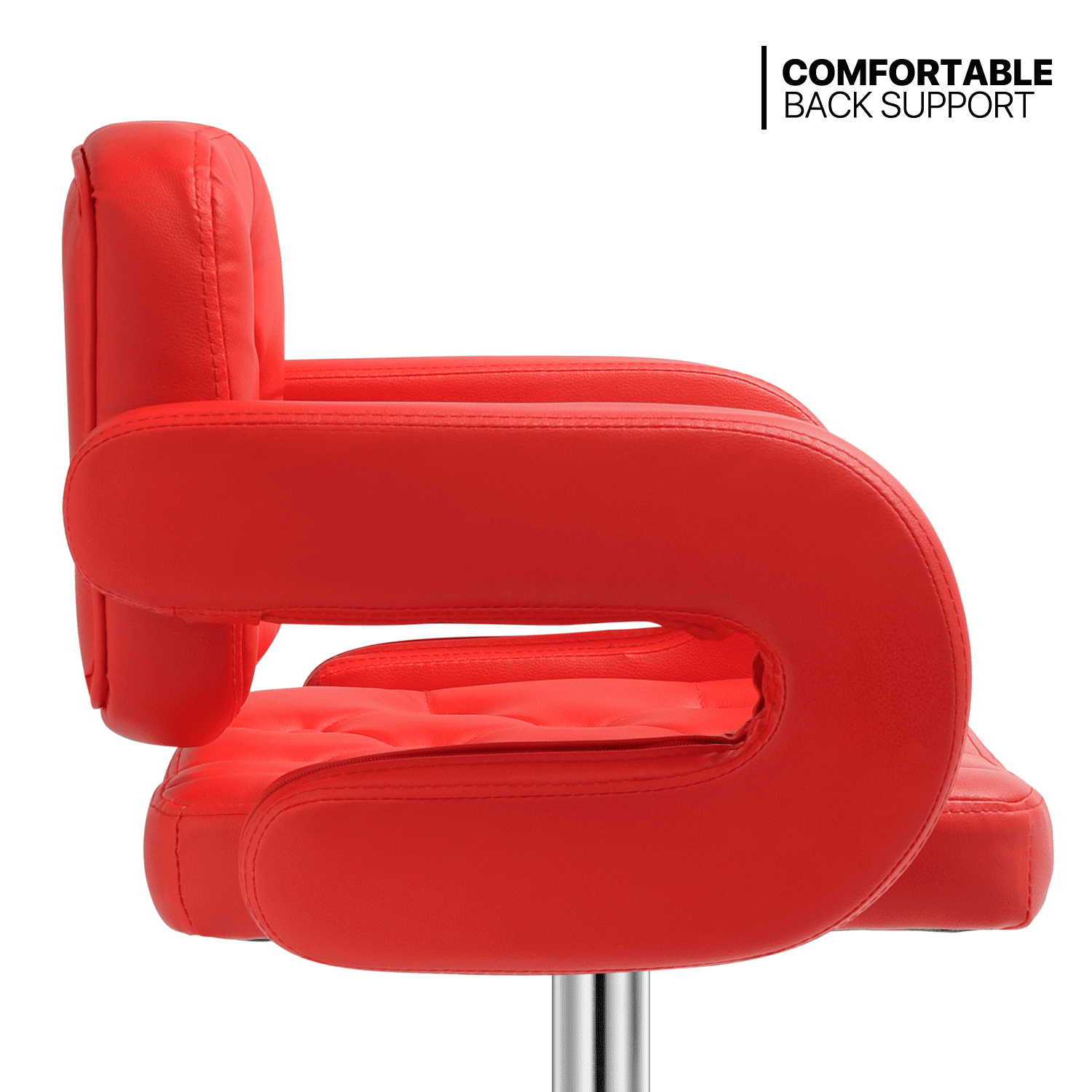 MoNiBloom Counter Height Bar Stool Set of 2, Dining Swivel Hydraulic Chair Faux Leather with Armrest and Footrest, Red
