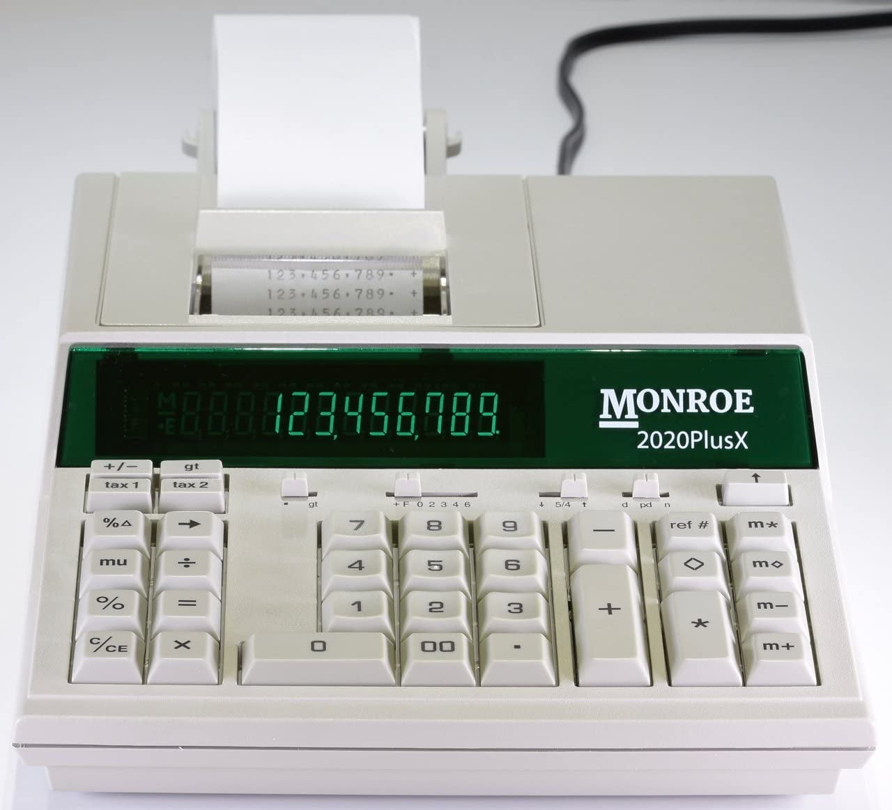 Make accurate calculations with the Monroe 2020PlusX 12-Digit Print/Display Medium-Duty Color Printing Calculator, in Ivory. The Monroe 2020PlusX 12-Digit Print/Display Medium-Duty Color Printing Calculator provides you with the means to calculate the answers to a wide variety of mathematical problems with speed and accuracy. Offers multiple benefits and features as compared to other similar items. Whether you’re double-checking invoice prices or totaling out the sum of several costs, you can feel at ease knowing that the Monroe 2020PlusX 12-Digit Print/Display Medium-Duty Color Printing Calculator will yield the correct answer. Plus, this calculator easily fits on a desktop or in a drawer, so it’s convenient to keep one on hand either at home or in the office.
