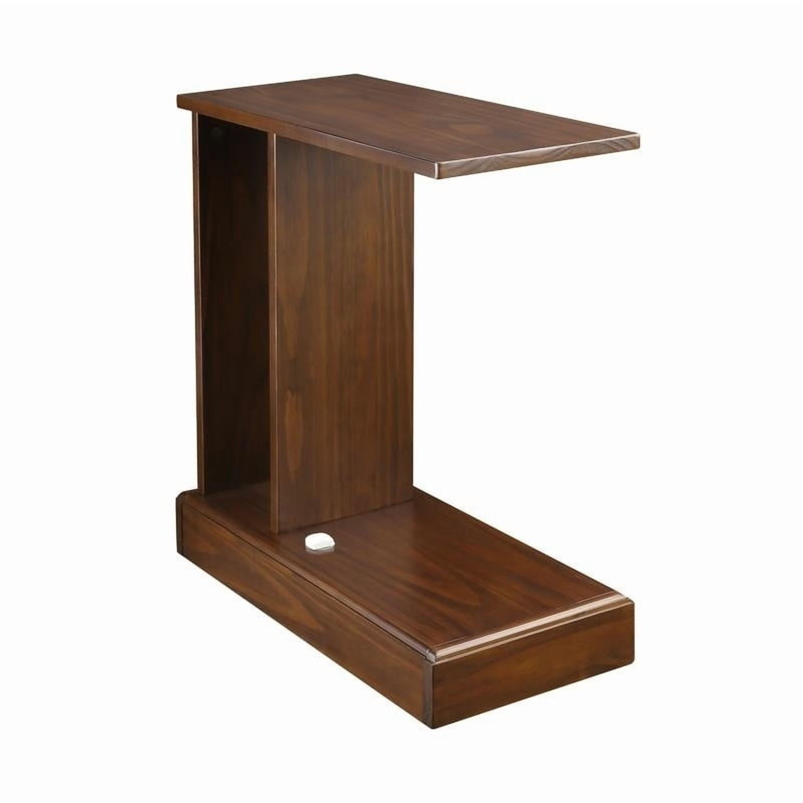 Designed with sophisticated versatility and convenience in mind, the Monroe C Table with Concealed Drawer is a secure and reliable alternate to your tradition laptop accent table.The smooth-gliding concealed compartment is located at the base of the C Table and comes equipped with a Secured Magnetic Locking Device and Key that is magnetically released with just a swipe for instant access.Its C shape is perfect for computer sessions on the couch, sofa side meals, and for showcasing decor.The convenient side shelf is an ideal place to store books, magazines, and other essentials.The rich mocha design gives this accent table a stylish appeal that hides valuables in plain sight.Constructed from Solid Wood for lasting beauty and longevity.Ideal for those who value safekeeping for valuables and privacy. Smooth gliding concealed lower compartment enables you to securely conceal valuables and more.(Concealed Drawer Dimensions: 6.5″W x 12.75″D x 1.75″H) Secure magnetic locking technology ensures safety when away from home. Easy access magnetic trigger design provides instant access when needed. Sophisticated C Table Design hides valuables in plain sight. Functional C shape is perfect for laptops, meals on the couch, and decor. Solid wood construction ensures lasting beauty and longevity. Color/Finish: Mocha Primary Material: Solid Pine Item Dimensions: 22.75″W x 10″D x 24″H,Concealed Drawer: 6.5″W x 12.75″D x 1.75″H Assembly Required: Yes Weight Capacity(lbs): Top: 60 lbs,Concealed Drawer: 5 lbs Horizontal Slide Number of Shelves: 2 Number of Drawers: 1