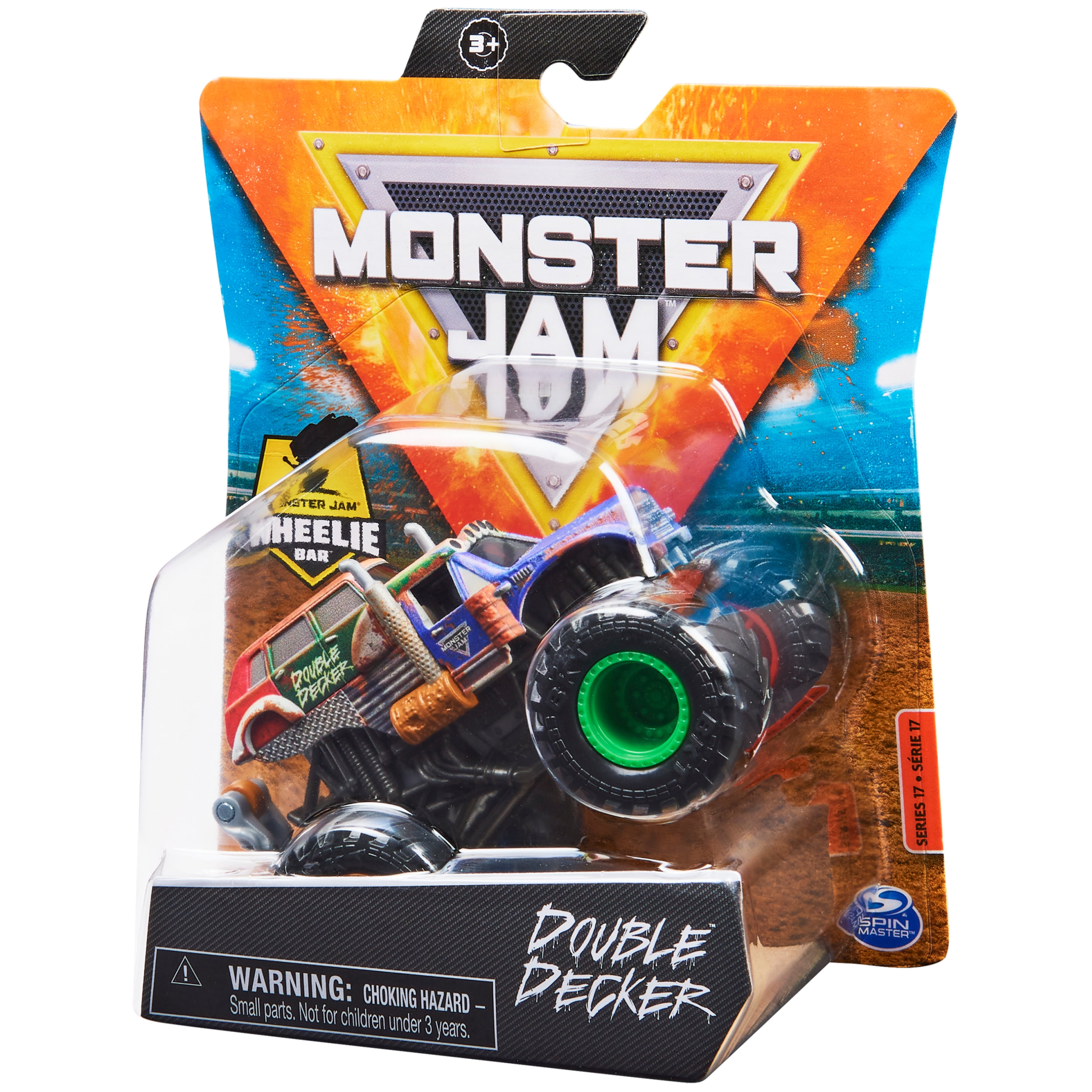 OFFICIAL MONSTER JAM TRUCK WITH WHEELIE BAR: Dominate everything in your way with the all-new, official Monster Jam 1:64 scale monster truck with a detachable wheelie bar! Pop into wheelies or stoppies! AUTHENTIC REPLICA: The 1:64 die-cast series brings the Monster Jam action right to you! Official BKT tires, detailed graphics and a styled chassis make it feel like you’re holding the real thing! COLLECTIBLE POSTER: Keep track of your Monster Jam trucks with the exclusive collector poster! Each poster features an awesome Monster Jam truck on one side, so you can hang it on your wall! COLLECT THEM ALL: Collect Grave Digger, Megalodon, El Toro Loco, Max-D and more and smash your way to victory in your own Monster Jam event! Start collecting today! For ages 3 and up. Includes: 1 Monster Jam 1:64 Scale Monster Truck, 1 Wheelie Bar, 1 Collectible Poster WARNING: CHOKING HAZARD – Small parts. Not for children under 3 years. Covered by the Spin Master Care Commitment. If you have a problem with a Spin Master product that you purchased from an authorized seller, we’ll resolve it! Because Spin Master is unable to control the quality of products sold by unauthorized sellers, unless otherwise prohibited by law, the Care Commitment is not available for products purchased from unauthorized sellers. The Care Commitment is limited to the original end-user purchaser. You may also be required to provide proof of purchase and/or a picture of your product to Spin Master to verify eligibility. Spin Master reserves the right to verify information, require a valid proof of purchase, and to deny request in its discretion