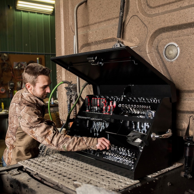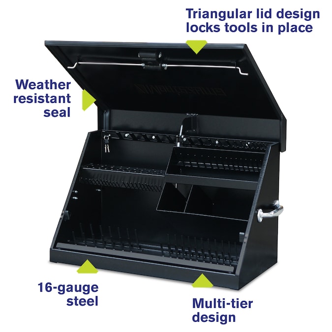 The 30 x 15-in steel Triangle toolbox allows you to organize more than 141 tools. With the multi-tier design, finding the right tools for the job is a breeze. When closed, the trademarked lid design locks tools in position. This enables you to do more of what you love while staying protected, secured and organized. This can be used in your workspace or mounted to a vehicle for work or play.