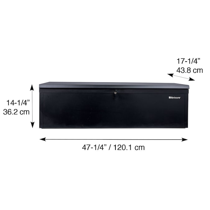 The Montezuma 47-in Steel Lockable Utility Box provides convenient and accessible tool storage. This durable steel utility tool organizer is perfect for storing your tools and equipment in your garage, shed, repair shop and more. With its unique snap fit design, the metal toolbox can be assembled in minutes. Constructed from a high-quality steel, this 47.28-in wide by 17.24-in deep utility storage toolbox is built to last. The full-length steel piano hinge secures the lid to the box frame, ensuring durability and strength. A protective, weather-resistant seal on the reinforced lid protects your tools against dust and moisture. Designed with portability in mind, the easy to transport toolbox can be used in your garage or workspace or on the go. Easily transport the toolbox with the reliable swing-up steel side handles. For maximum security and protection, the durable tool organizer has a cylinder lock that defends and safeguards your stored tools, parts, and accessories from theft. To steady the toolbox, it features feet to keep the toolbox stationary and off the ground. The Montezuma 30-in Metal Utility Toolbox is perfect for auto shops, welders, workshops, and mechanics. The compact toolbox measures 47-1/4-in W x 17-1/4-in D x 14-1/4-in H.