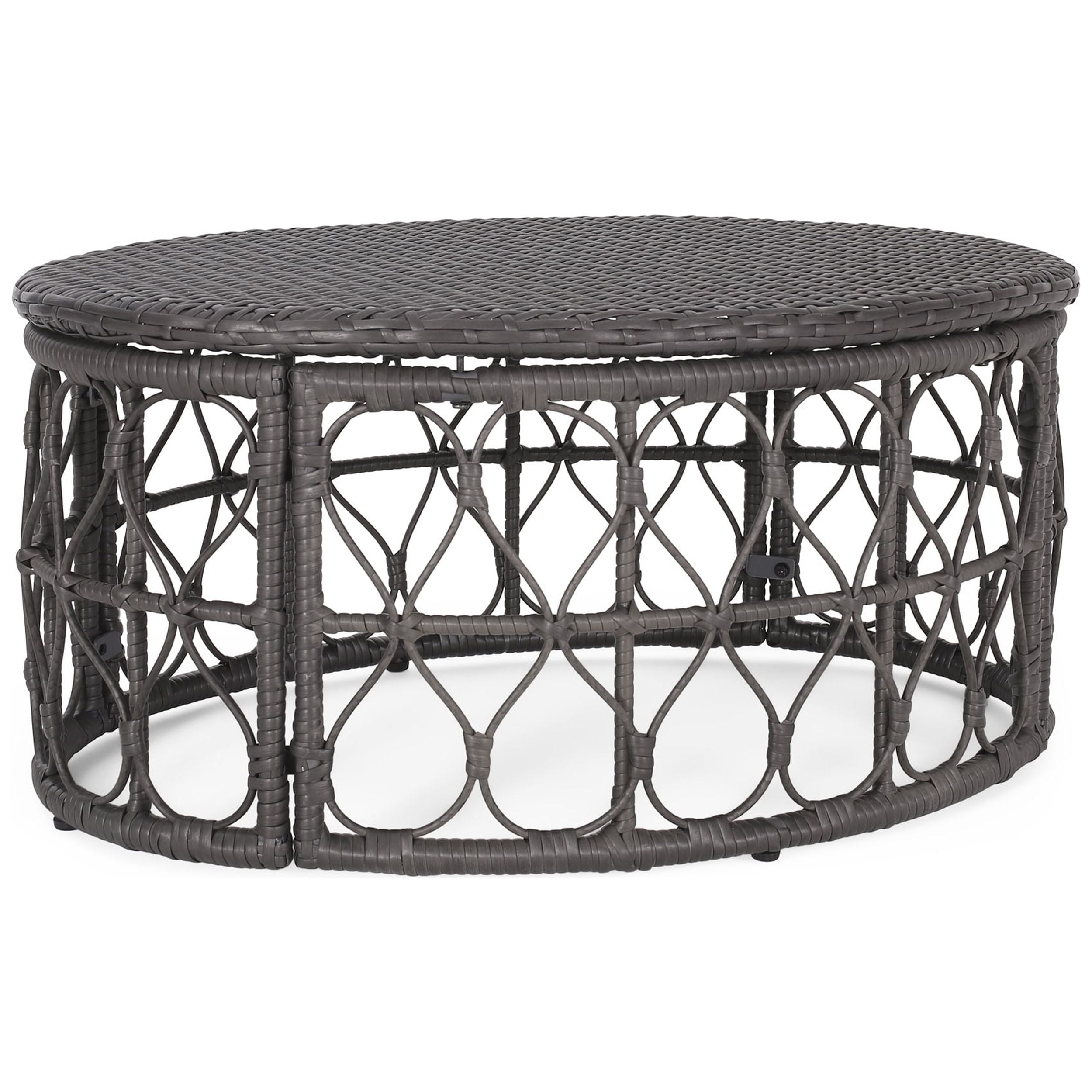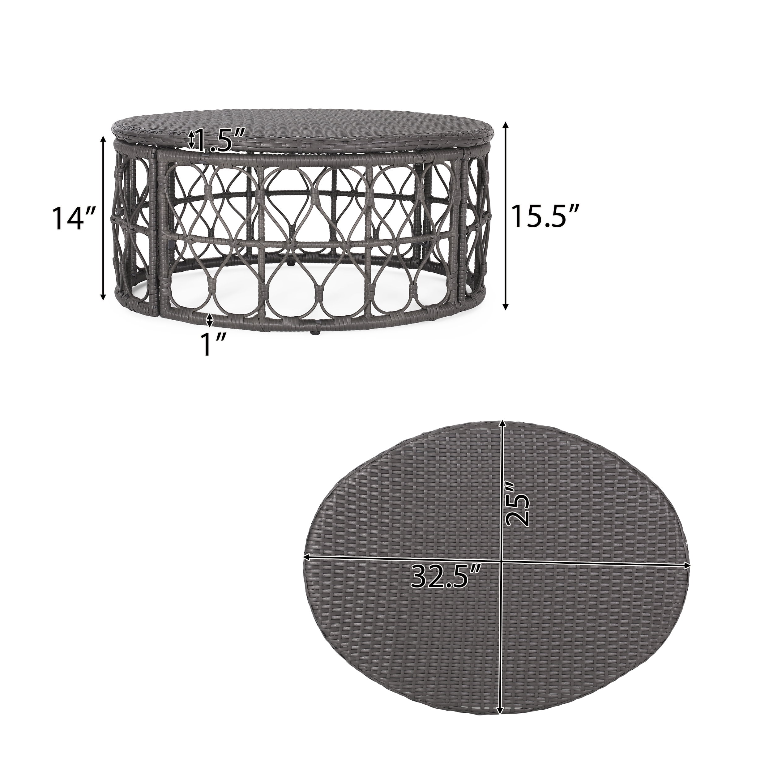 Add a little something to your outdoor space with a centerpiece that is sure to impress. Our impressive coffee table brings together a stunning wicker weave and looped design to offer a charming boho touch for your decor. Its oval shape brings an elegant atmosphere to any space while also providing incredible stability. With an underlying metal frame, the sturdy structure of this table will allow you to easily enjoy a warm sunny day outdoors with a glass of lemonade and a bowl of your favorite snacks. A TOUCH OF PERSONALITY: Bring your outdoor space to life with our coffee table that features a beautiful wicker weave top and looped design. With charming aesthetics, this table will be sure to enliven any home. BOHO-INSPIRED: For a carefree, unconventional look and a variety of textures for your patio space, our coffee table brings an earthy boho touch to your decor with its beautifully woven wicker weave. POLYETHYLENE RATTAN: Featuring a long-lasting woven finish, this style is not only incredibly durable but also provides a versatile appearance. The handcrafted details of this material allow this piece to blend seamlessly with your outdoor decor. DIMENSIONS: Choose an accessory that is the perfect size for you and your furniture. This coffee table is 32.50″ W x 25.00″ D x 15.50″ H. You will love how much your space can transform with the simple addition of this charming coffee table. ASSEMBLY REQUIRED: Some assembly is required for this coffee table. All of the instructions and tools needed for assembly are included.