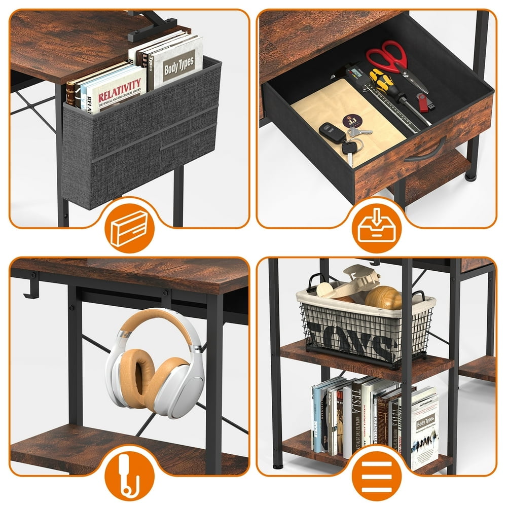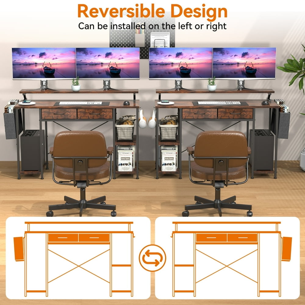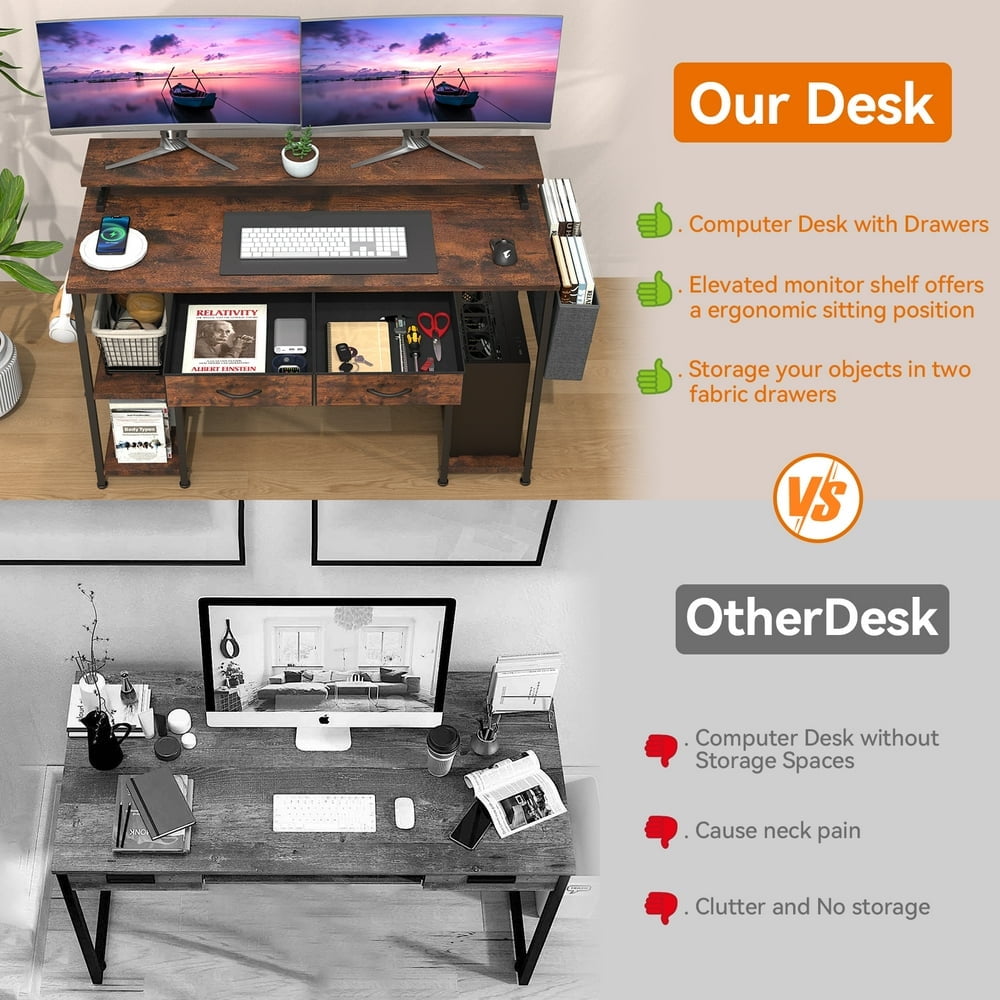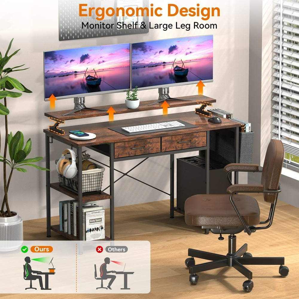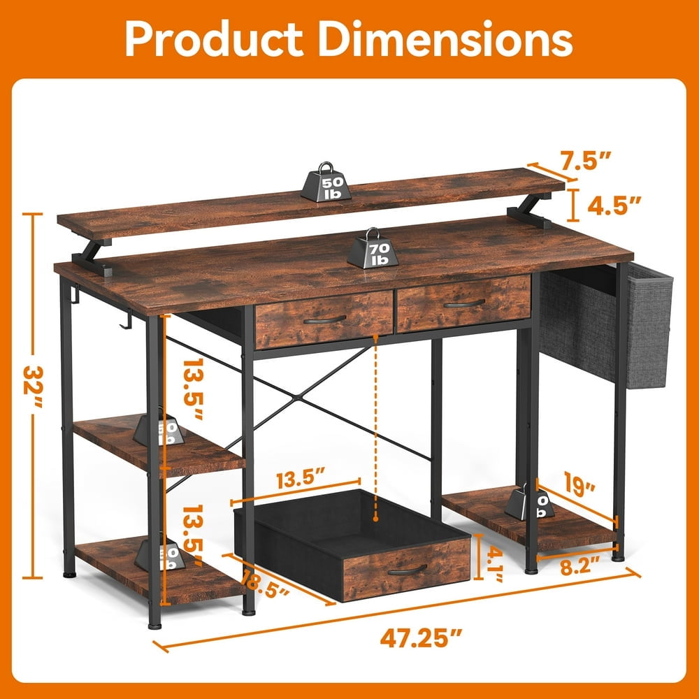 MONVANE 47″ Gaming Desk,Computer Desk with Drawers & Storage bag,Rustic Brown