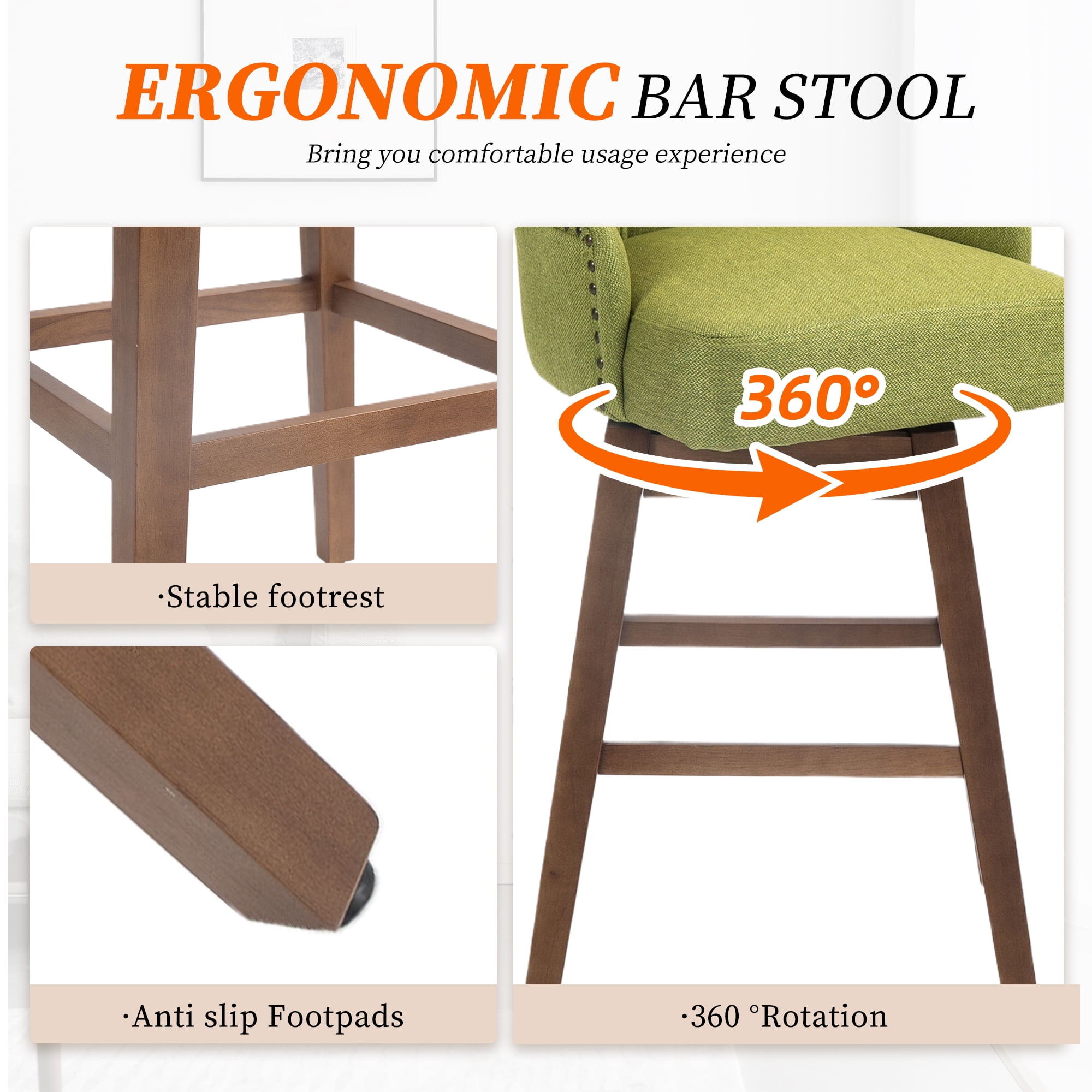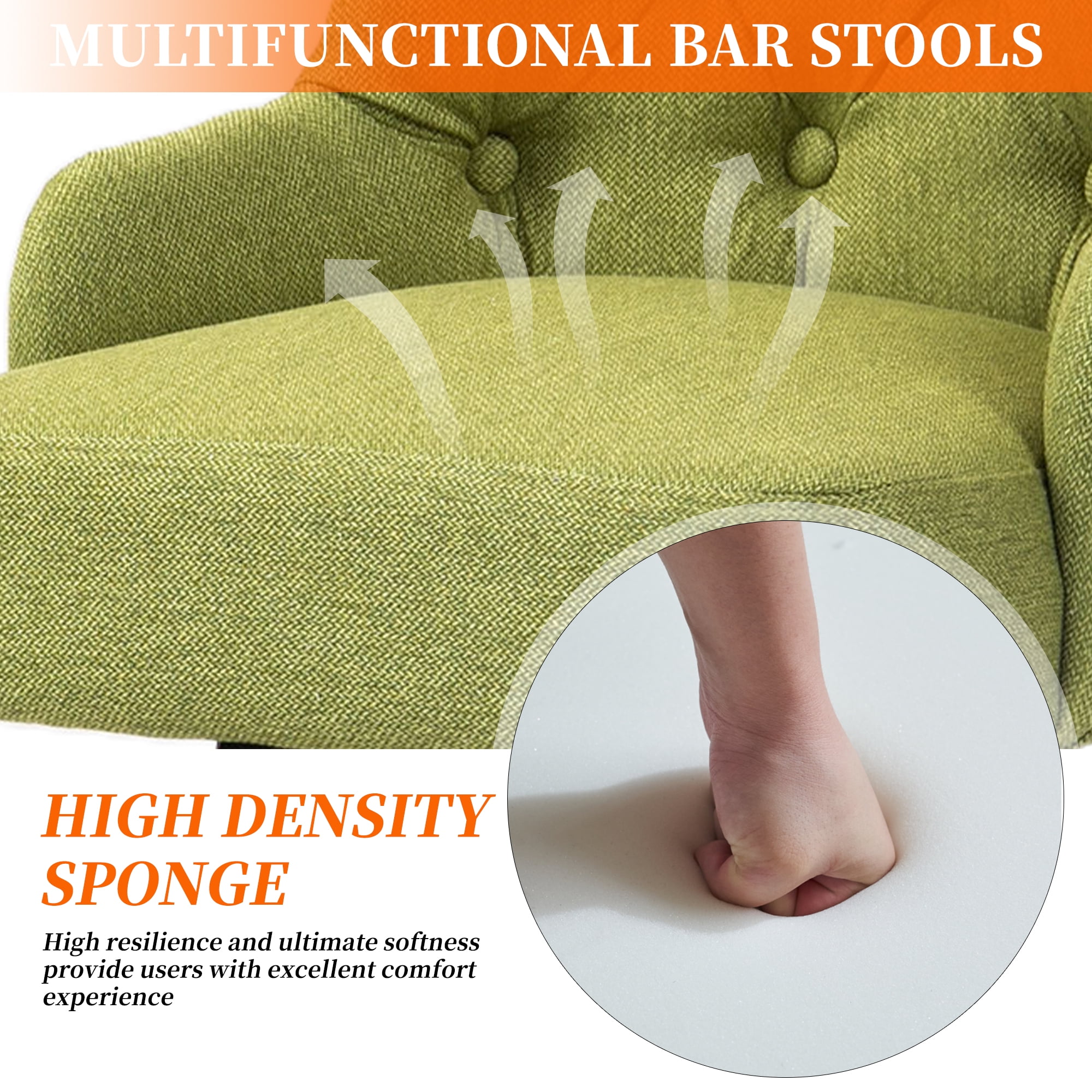 MOONMISS Linen Upholstered Tufted Wood Frame 360°Swivel Nailhead Bar Stools(set of 2)-Olive Green