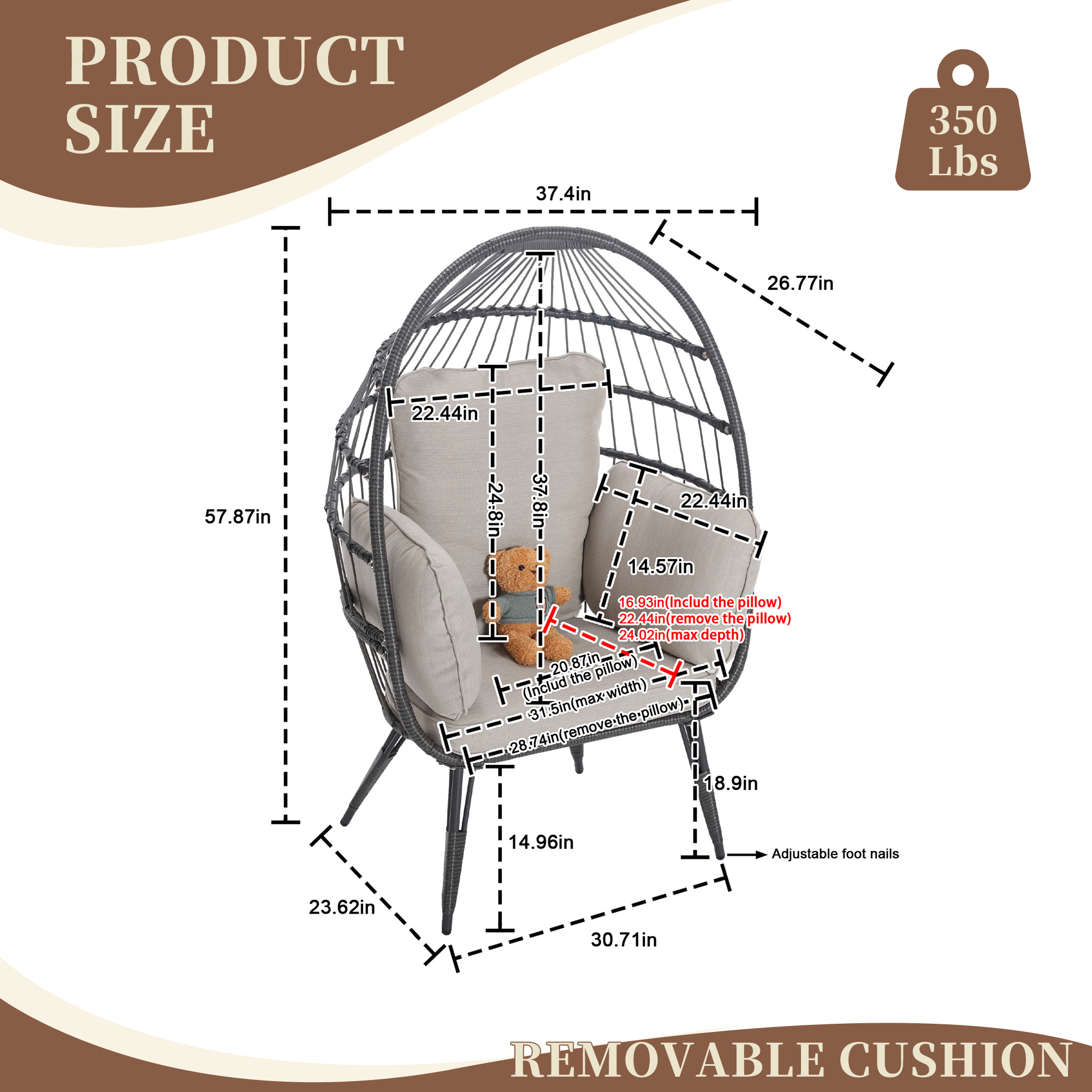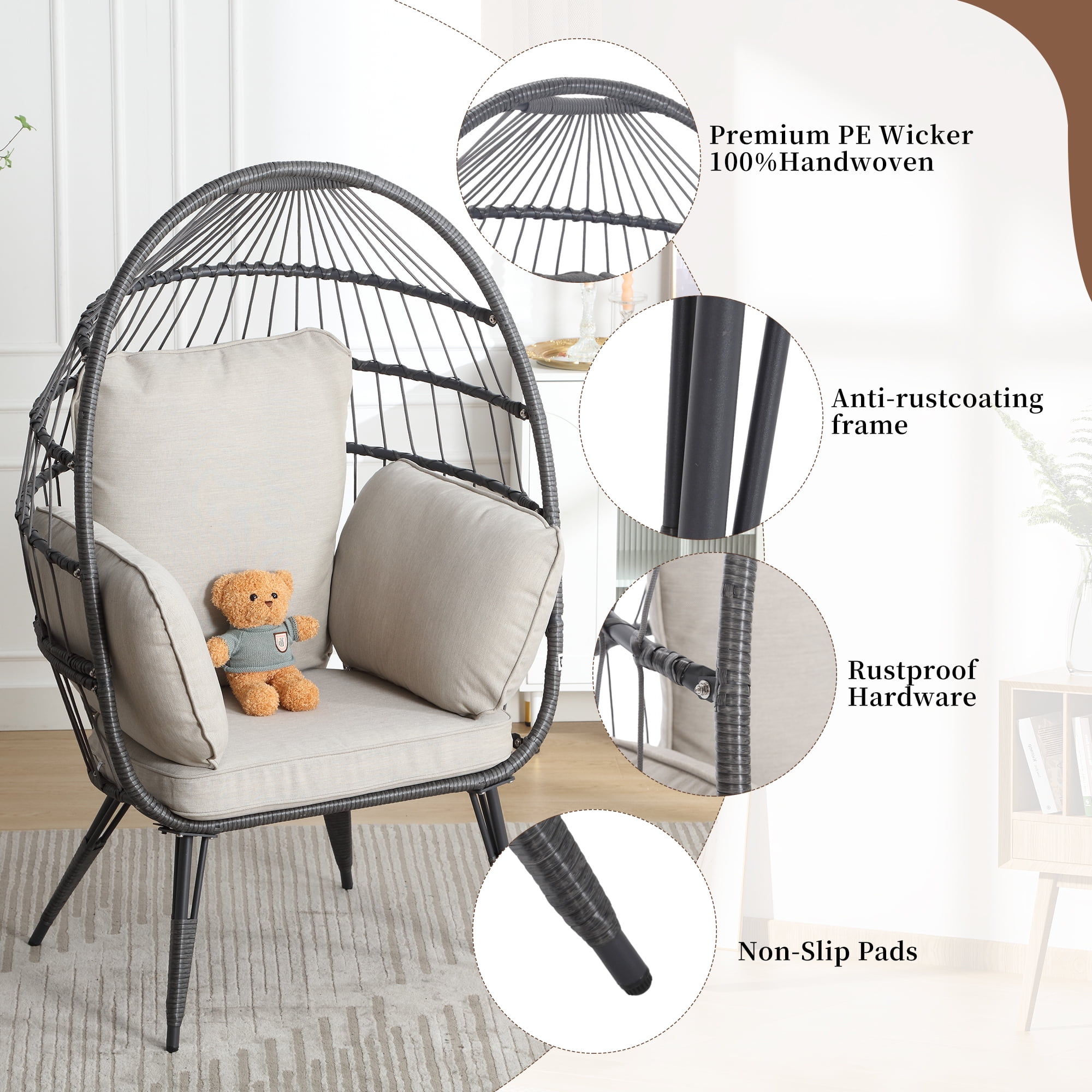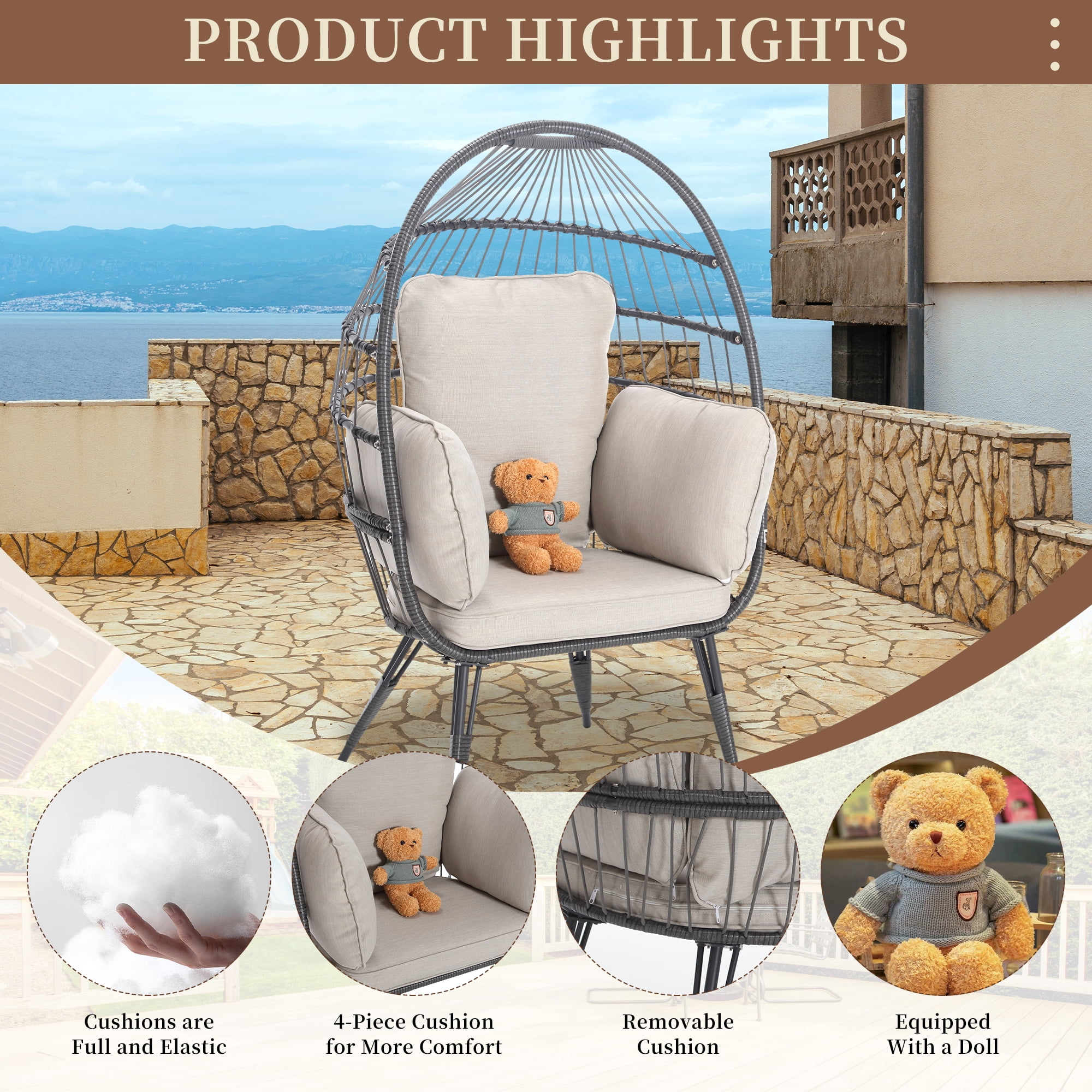 MOONMISS Rattan Water Resistant UV Resistant Cushio Egg Basket Chairs with a Teddy Bear-Beige