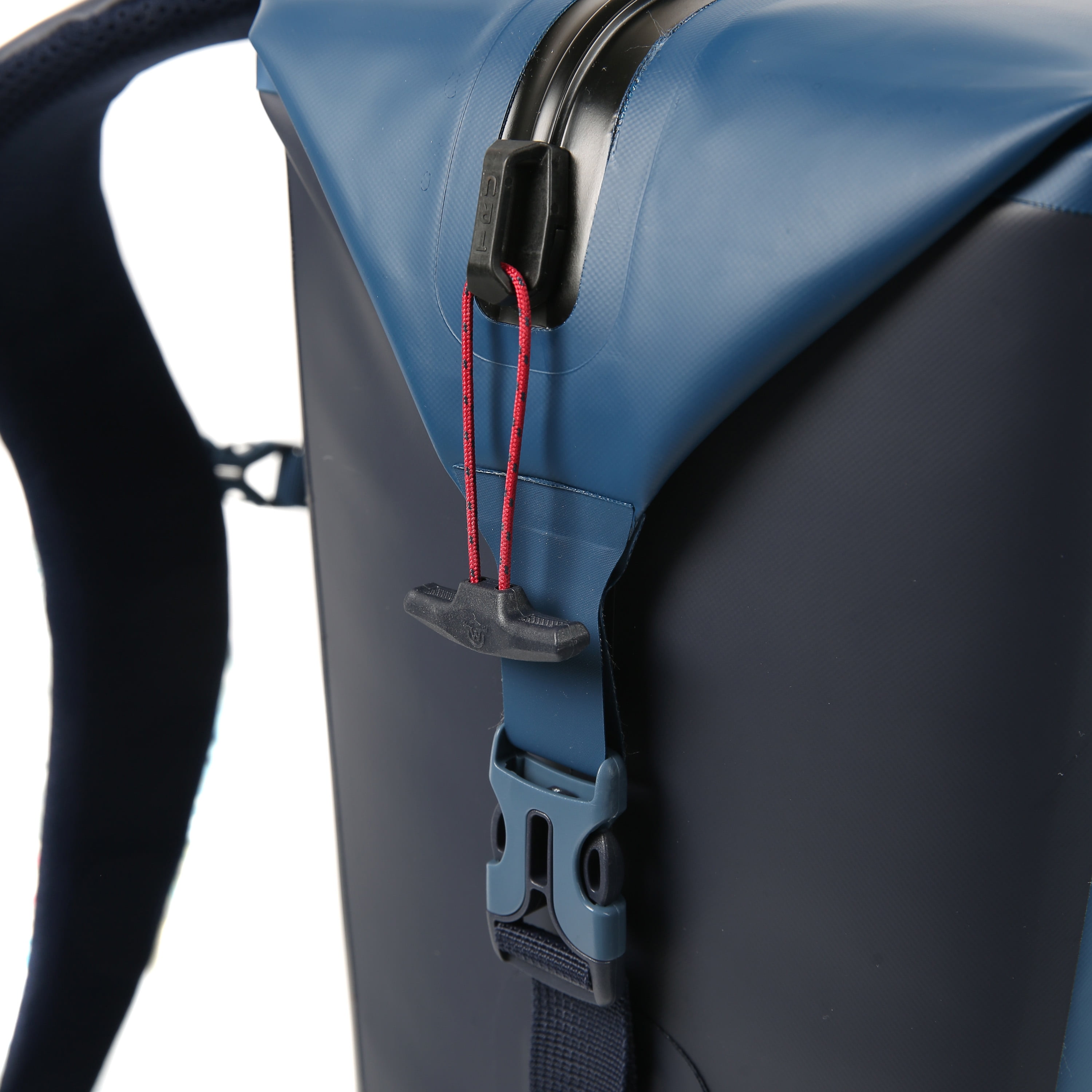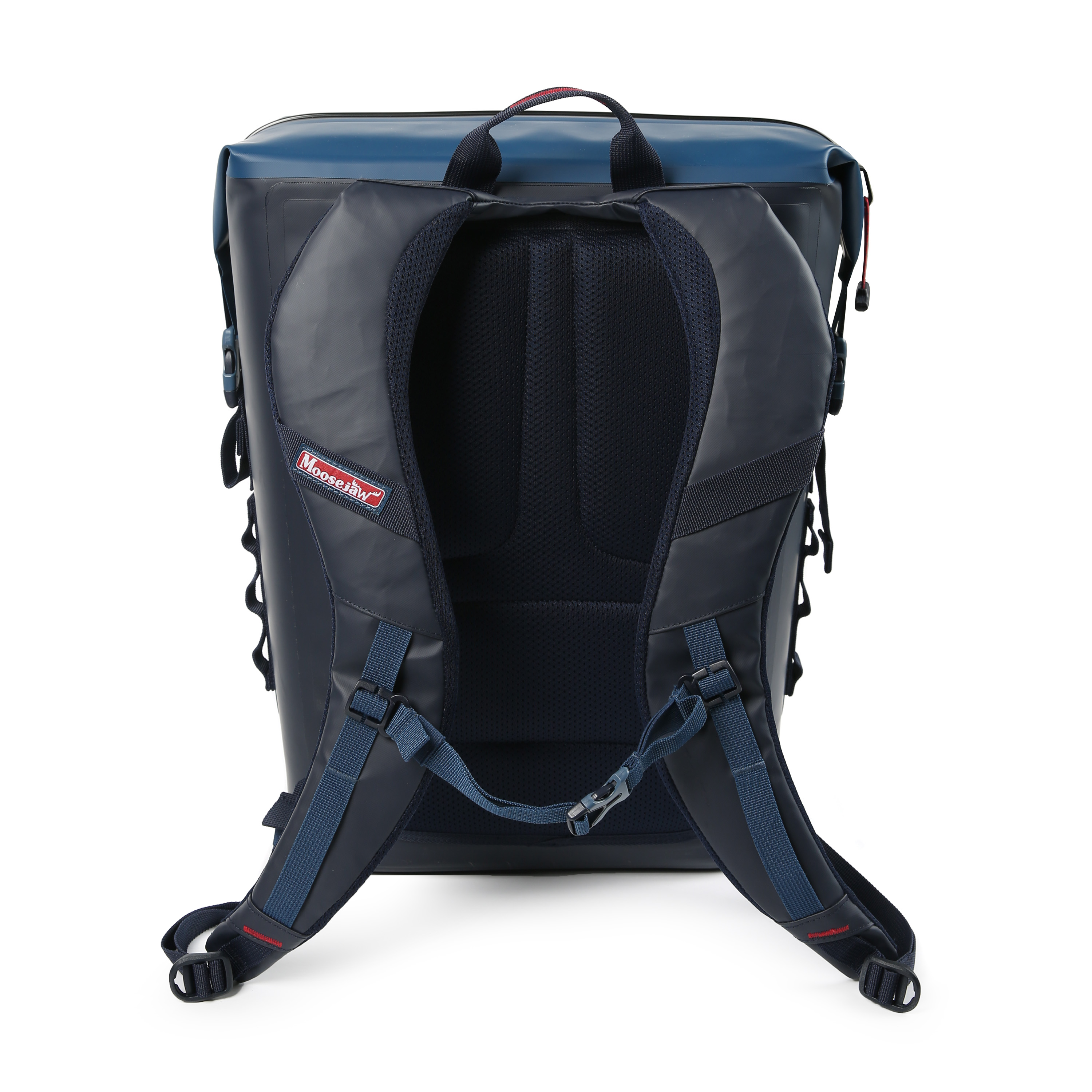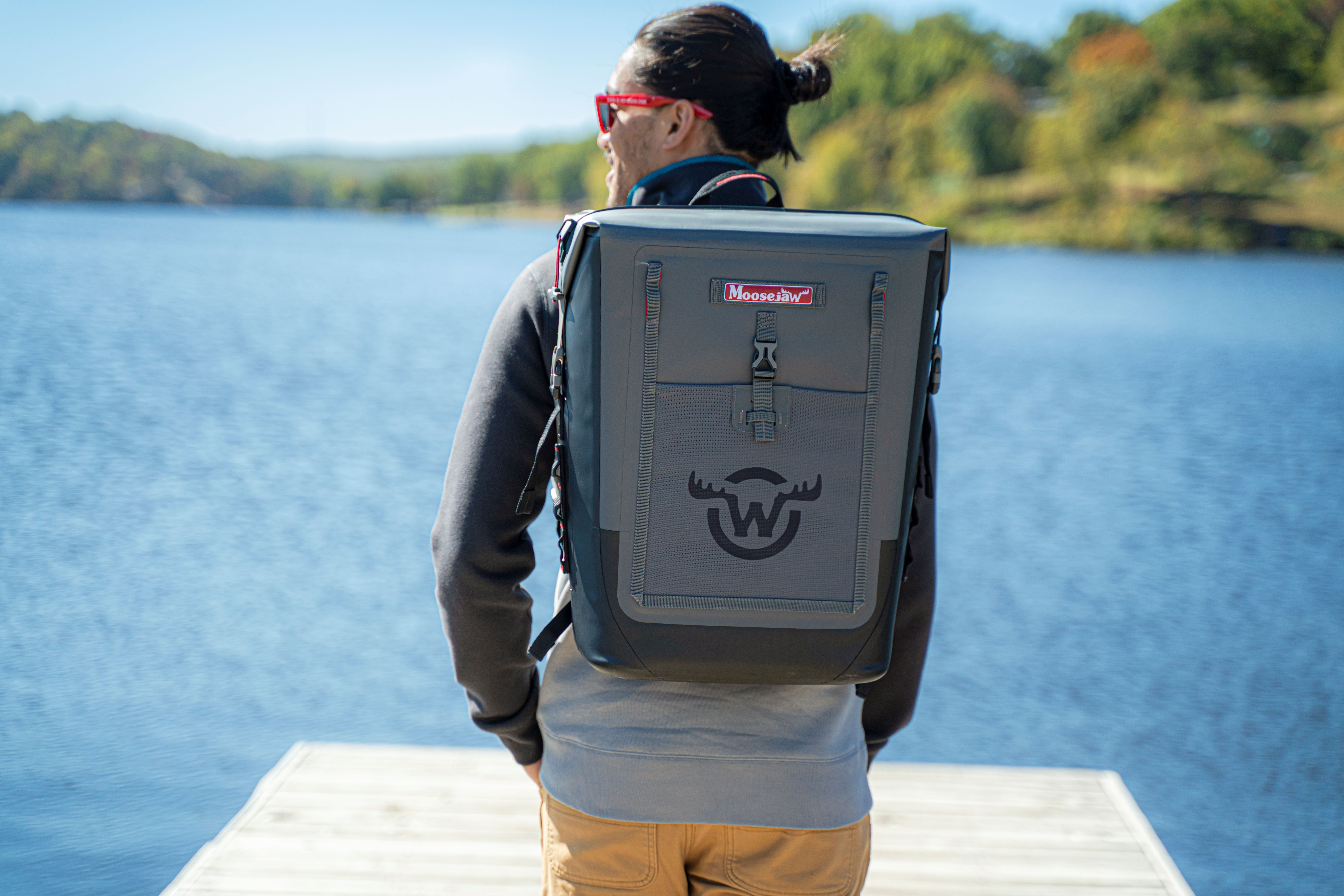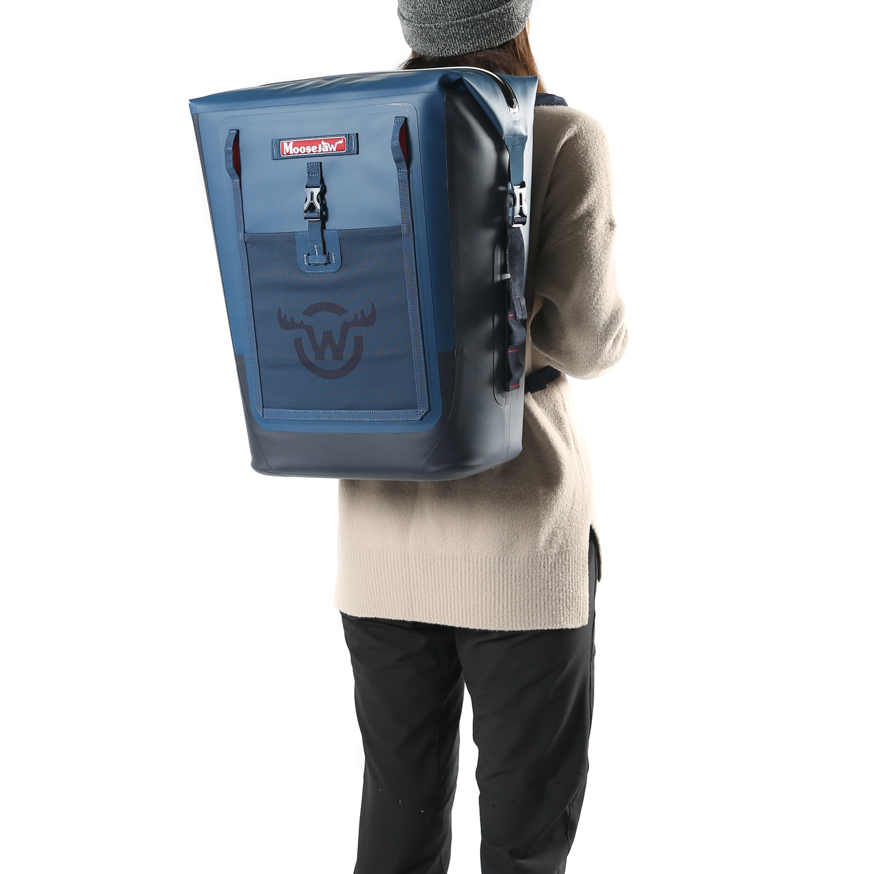 Moosejaw 24 Can Chilladilla Soft-Sided Backpack Cooler – Midnight Made from Recycled Materials: 40% of the exterior fabric is made with recycled nylon reclaimed from used fishing nets Holds up to 22 Quarts, big enough capacity to hold up to 24 12-oz cans or 22 lbs. of ice High performance insulation – retains ice for up to 48 hours at a 50/50 ice-to-can ratio TRU® Zip leak proof seal keeps water in and is self-repairing Padded, ventilated back panel for comfort while carrying Ergonomic shoulder and sternum straps help support and stabilize heavy loads Microban® antimicrobial protection against bacterial odors and stains EVA molded base and rugged, waterproof welded exterior provides stability, durability and added insulation Side daisy chains to hang keys, water bottles and gadgets Front mesh pocket to secure your essentials Limited 3 Year Warranty