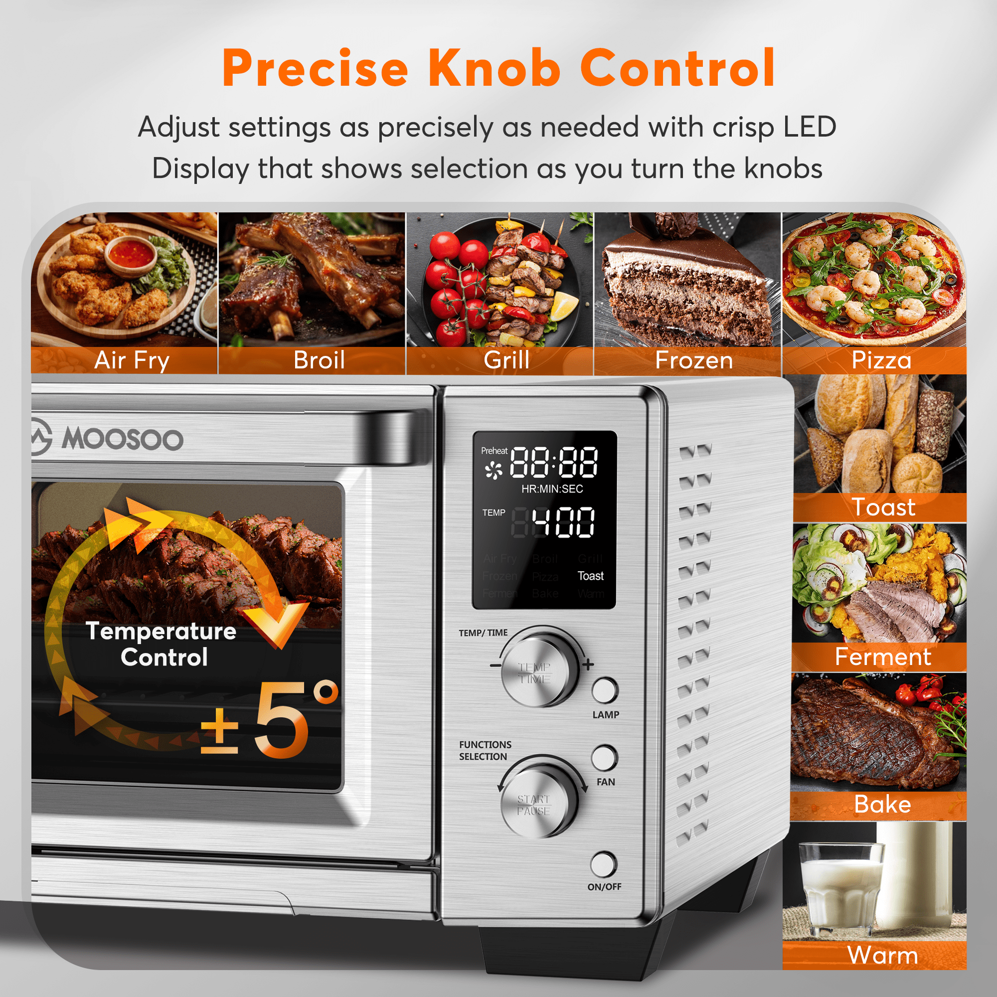 MOOSOO 30Qt Air Fryer Oven with LED Digital Screen, 9 Preset Modes, Stainless Steel