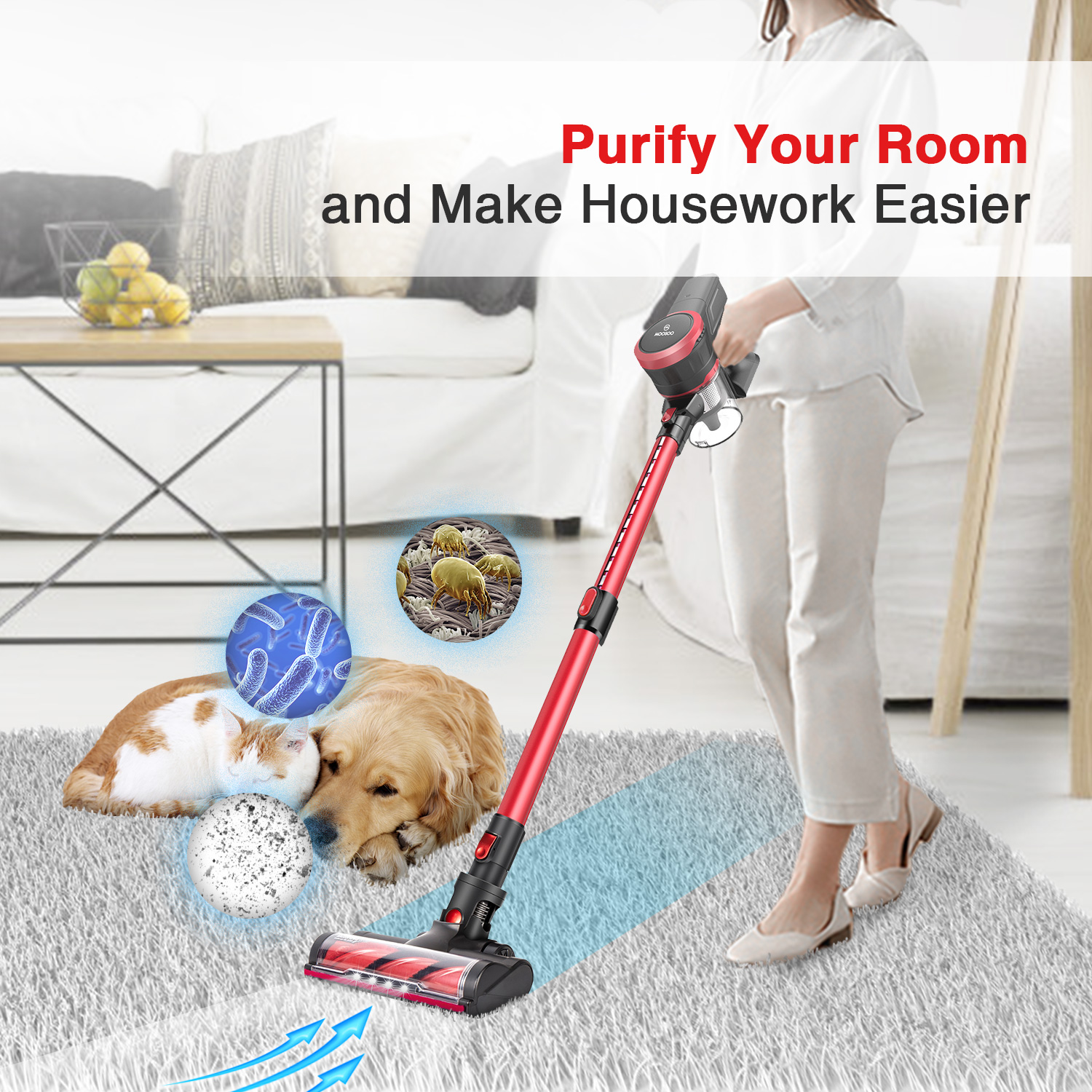 MOOSOO Cordless Stick Portable Vacuum Cleaners for Hardwood Floor,Carpet, Pet Hair
