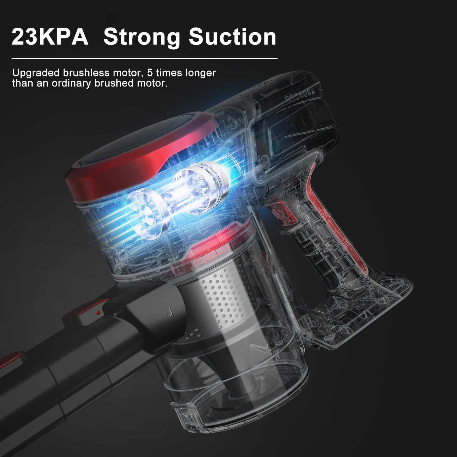 Unrestricted & Versatile New Cordless Stick Vacuum Cleaner, K17 Powerful 200W motor delivers 23Kpa suction for superior cleaning Cordless design allows unrestricted and versatile cleaning Removable battery enables extended 15-30 minute cleaning sessions LED lights illuminate dark corners to spot hidden dust 4 Stages high-efficiency filtration system captures 99.97% of fine particles down to 0.1 microns Washable HEPA filtration saves money compared to replacements Quiet brushless motor keeps noise levels under 70dB Multi-purpose use for home, car, keyboards, toys, etc.