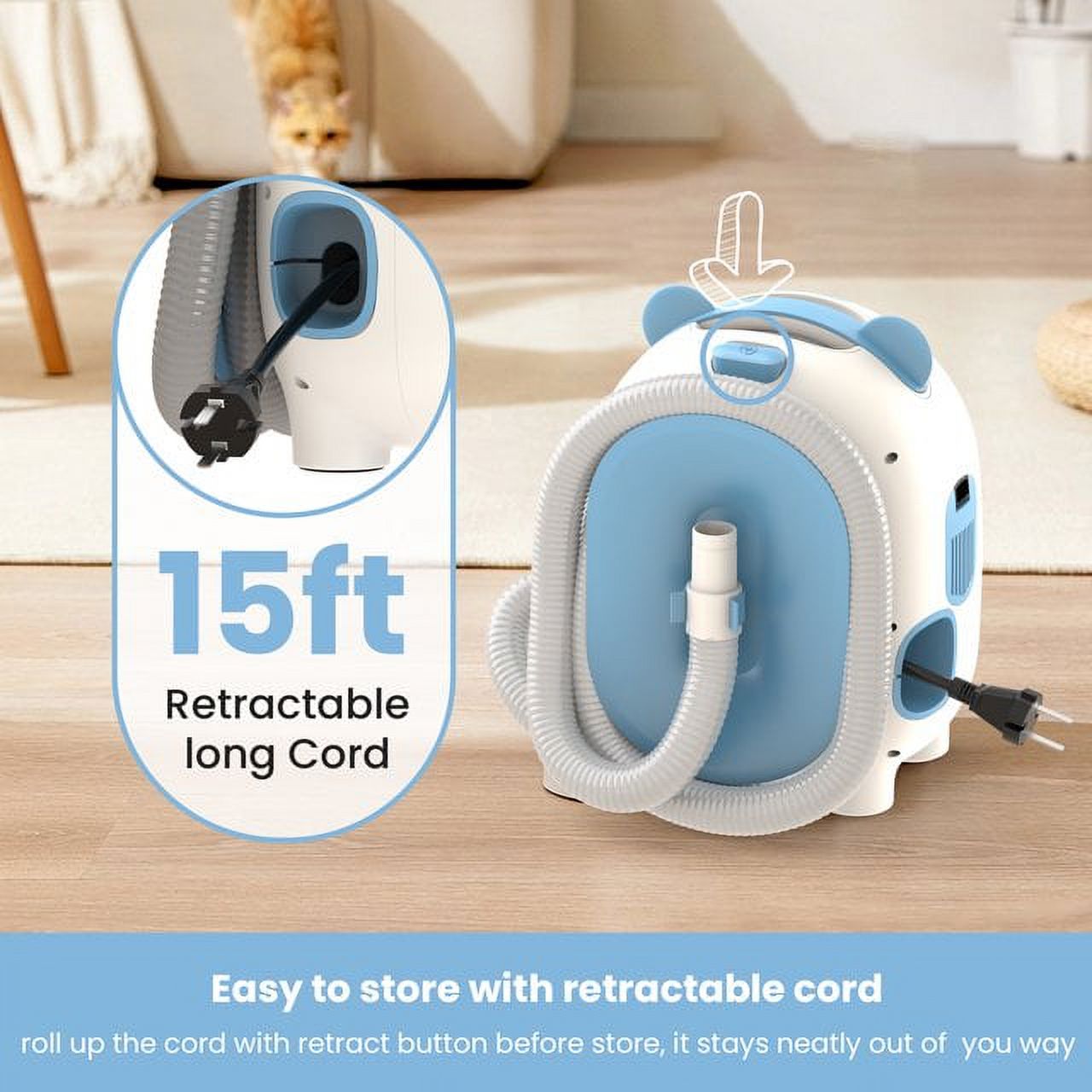 Suction Power: 3 Gears, 6kPa/8kPa/12kPa 1.3L Large Dust Cup Dog Grooming Vacuum with 5 Grooming Tools Pet Grooming Kit and Vacuum Picks Up 99% Pet Hair Low Noise Dog Hair Vacuum