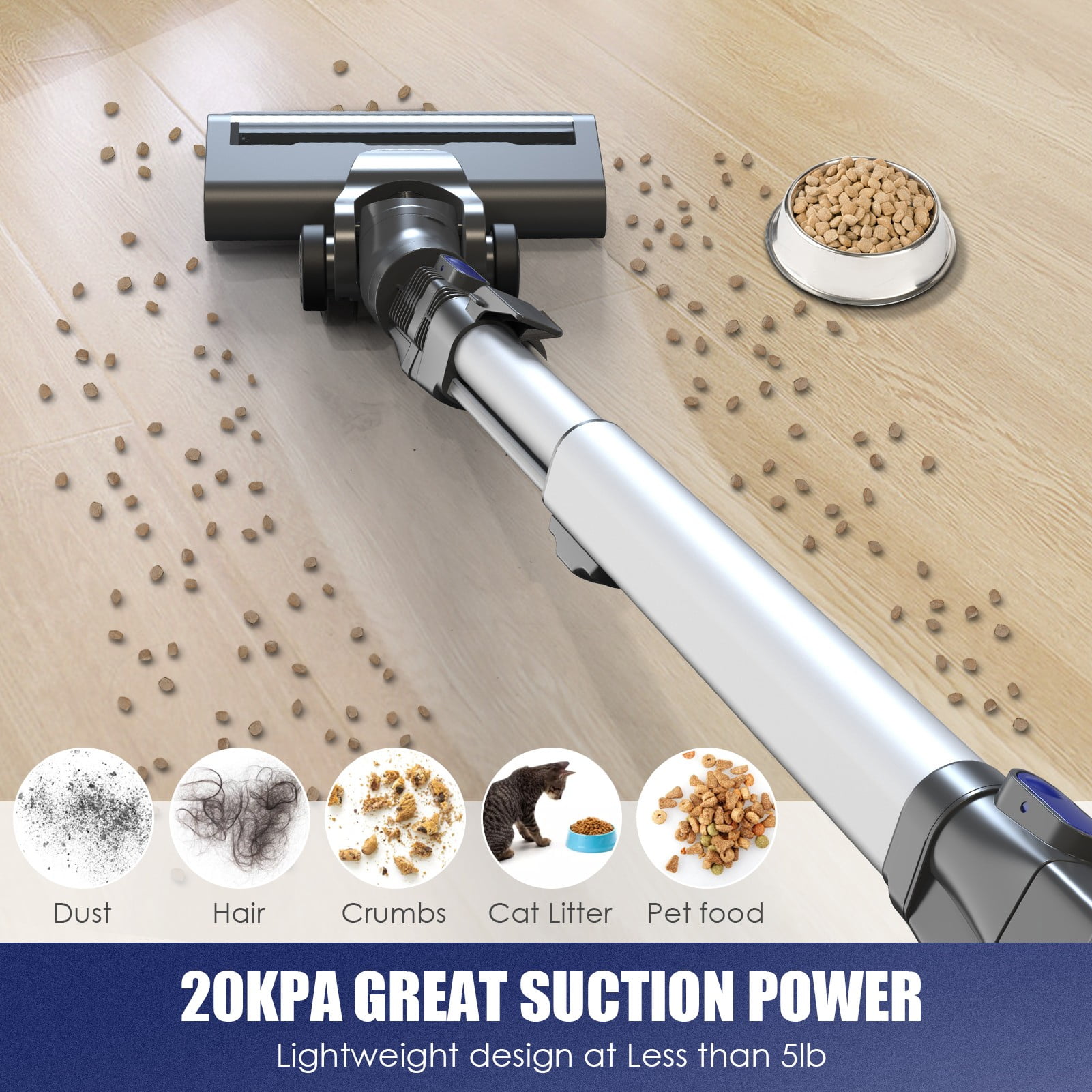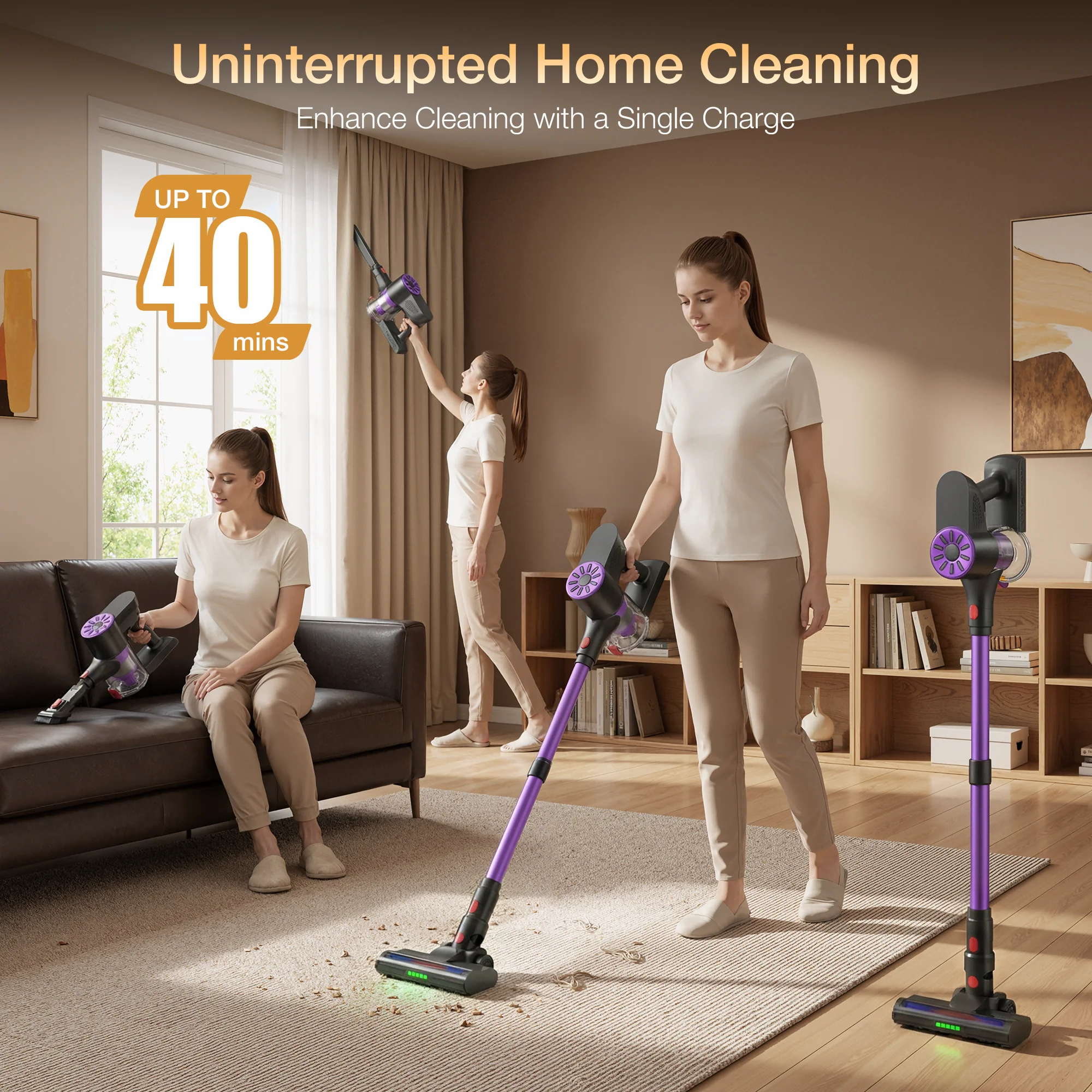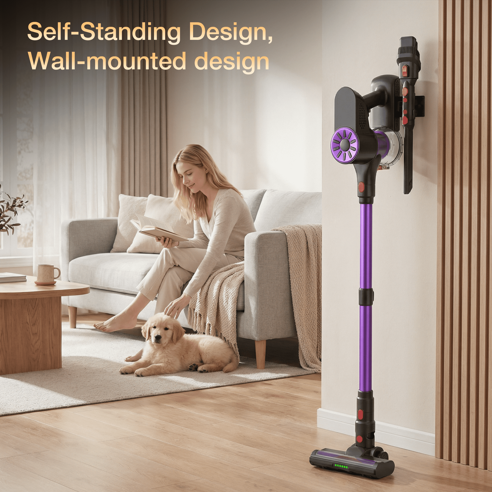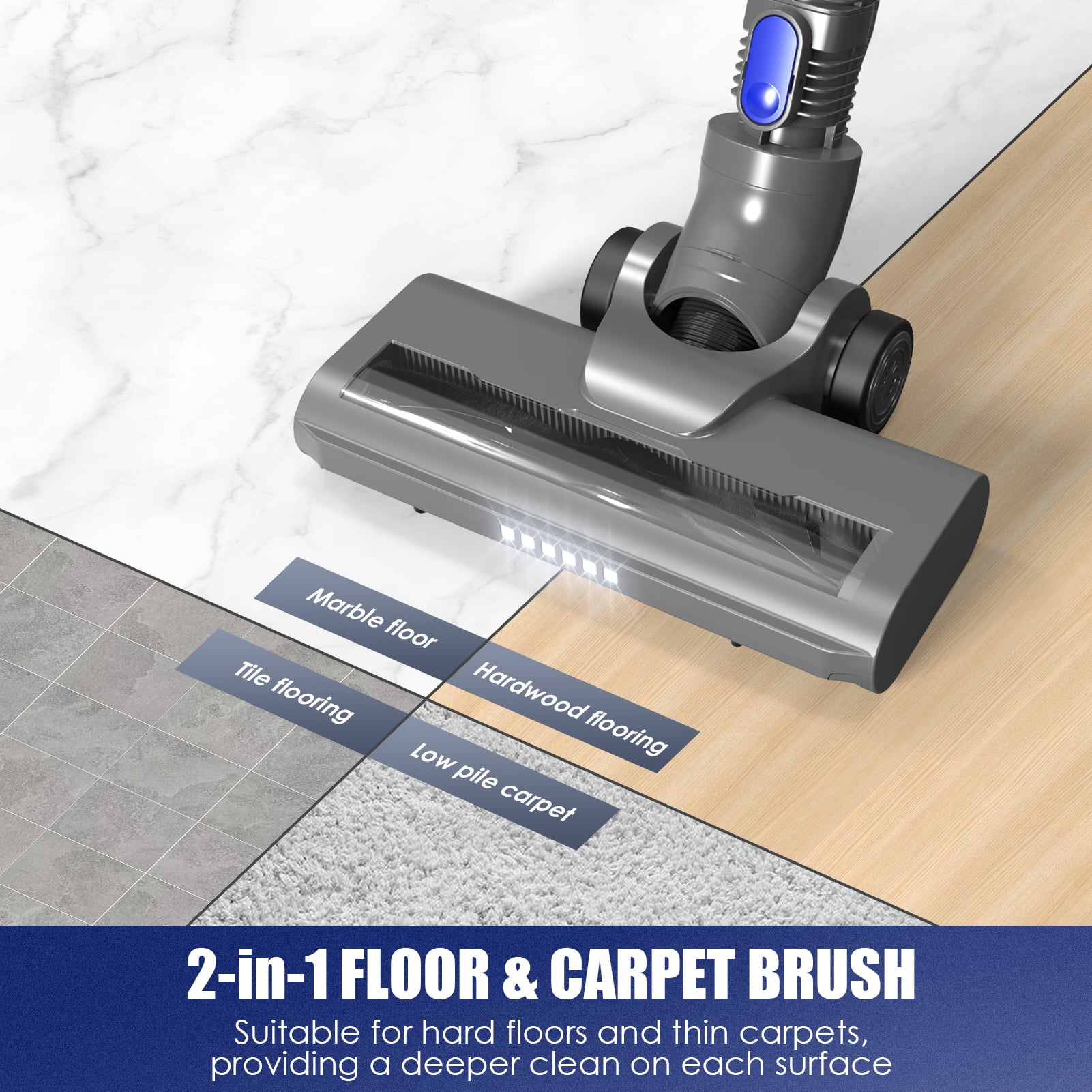 Performs Well on All Floors 1.3L Largest Dust Cup for Stick Vacuum 120 Degree Whirling Flexible Floor Head 4 Stage Cyclonic Washable Filtration System Wall Mount – Easy for Storage 4-in-1 Multi-use Design for Different Cleaning Needs LED Floor Head Track Dust Every Dark Corners