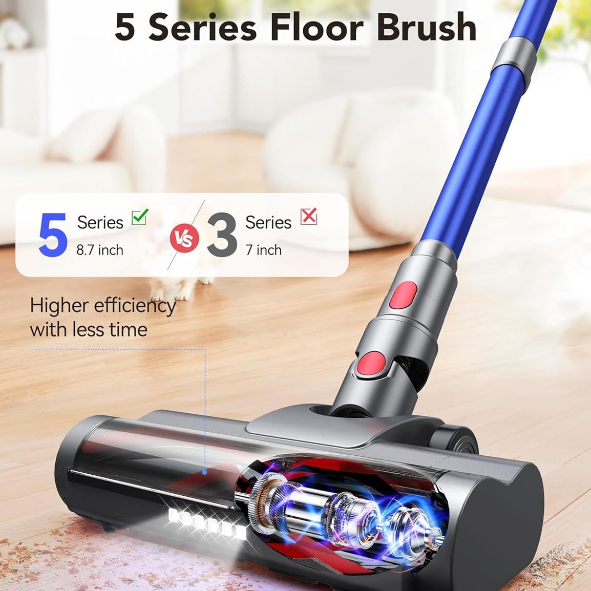 MOOSOO YC1 6-in-1 Cordless Stick Vacuum Cleaner with Smart Digital Display – Powerful 18Kpa Suction for Pet Hair, Hard Floors & Low-Pile Carpets Smart Digital Display for Ultimate Control Stay informed with our large LED screen that clearly shows: Real-time battery percentage (25+ mins runtime) Current suction mode (Max/Normal) Instant red alert for blockages or brush jams 180°+90° Ultra-Flexible Cleaning System Our pivoting electric floor brush effortlessly: Rotates 180° side-to-side for furniture navigation Adjusts 90° up/down for under-bed cleaning Reaches where other vacuums can’t! Triple LED Headlights + Anti-Tangle Roller 3 bright LED lights expose hidden dirt in dark corners Specialized roller design minimizes pet hair wrap Perfect for midnight cleanups or shadowy spaces Pro-Grade 18Kpa Suction Power Max Mode: Tackles embedded pet hair, litter, and debris Normal Mode: Quiet daily cleaning Effortlessly handles: Pet hair, Food crumbs, Fine dust, Coarse debris
