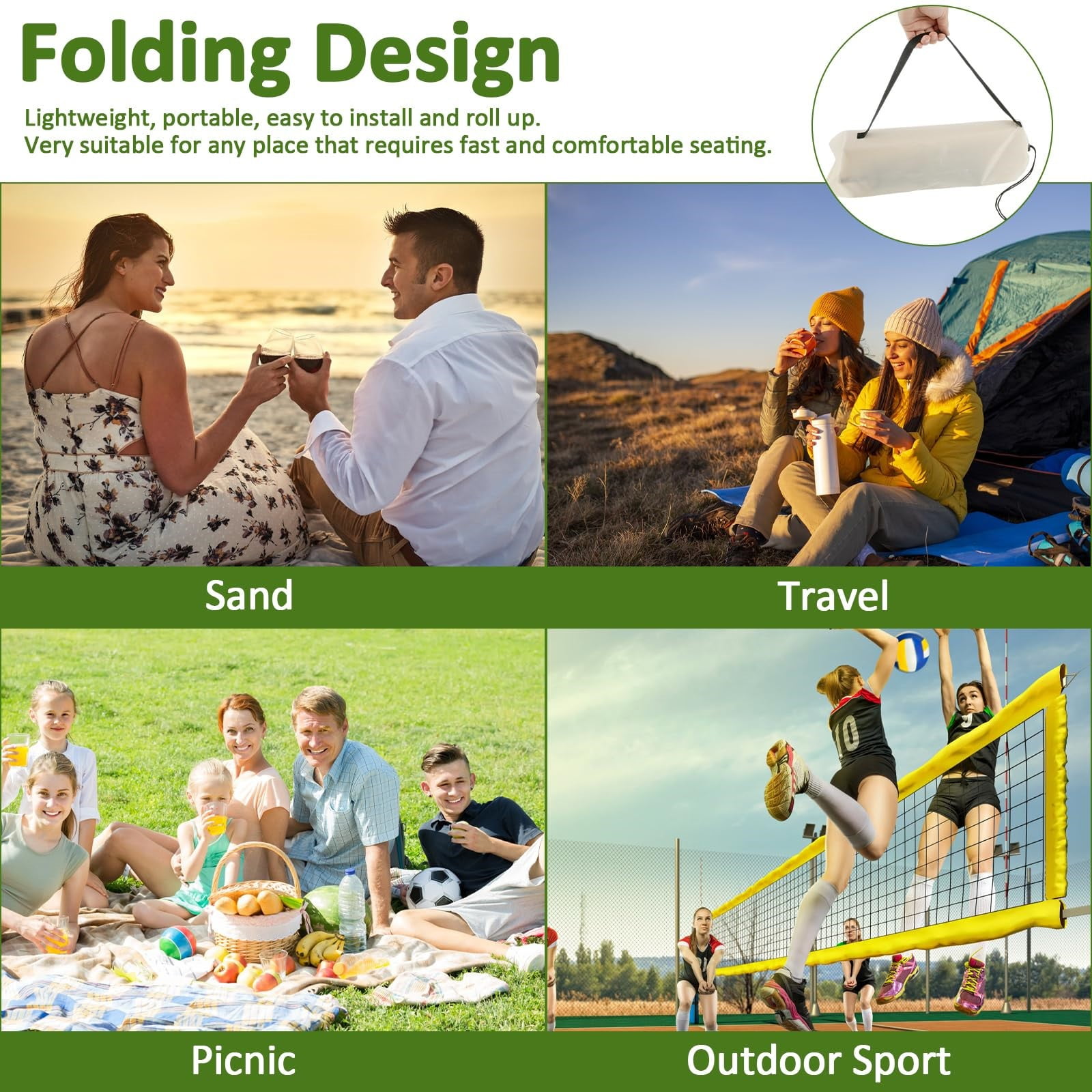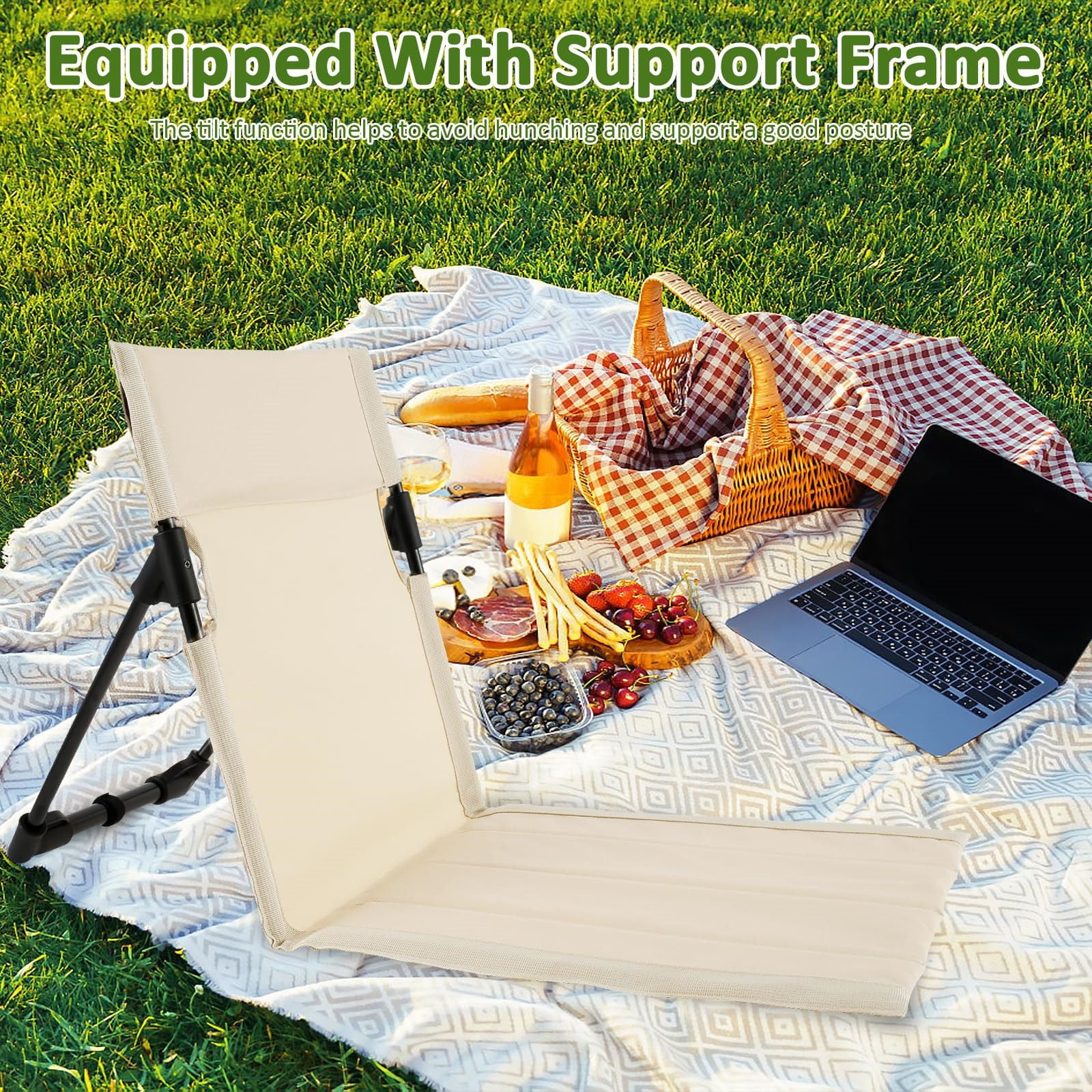 MOQIN 2024 Folding Design Beach Chair High-Quality Material: Made of durable 600D fabric, filled with sponge for a soft and comfortable seating experience Versatile Use: Ideal for outdoor sporting events, stadiums, picnics, camping, hiking, parks, beaches, and travel Ergonomic Comfort: Designed to conform to the ergonomic chair angle, allowing for extended sitting without discomfort Tilt Function: Features a tilting design to support your back and legs, promoting good posture while relaxing Compact and Portable: Lightweight and foldable for easy storage and transport, making it perfect for camping and outdoor activities