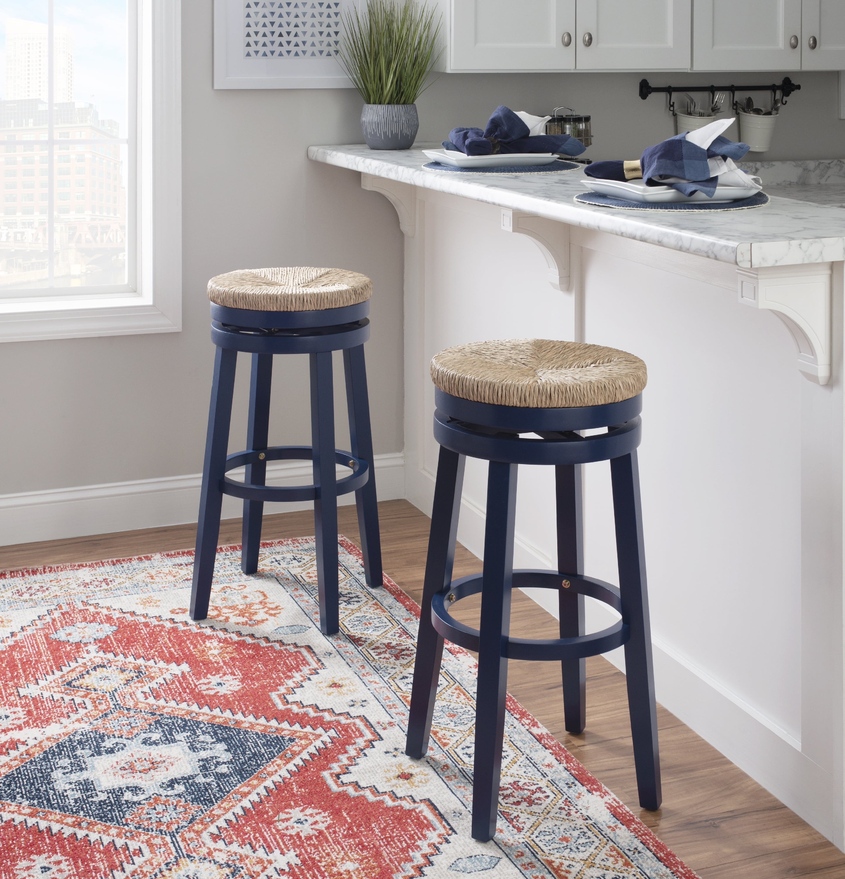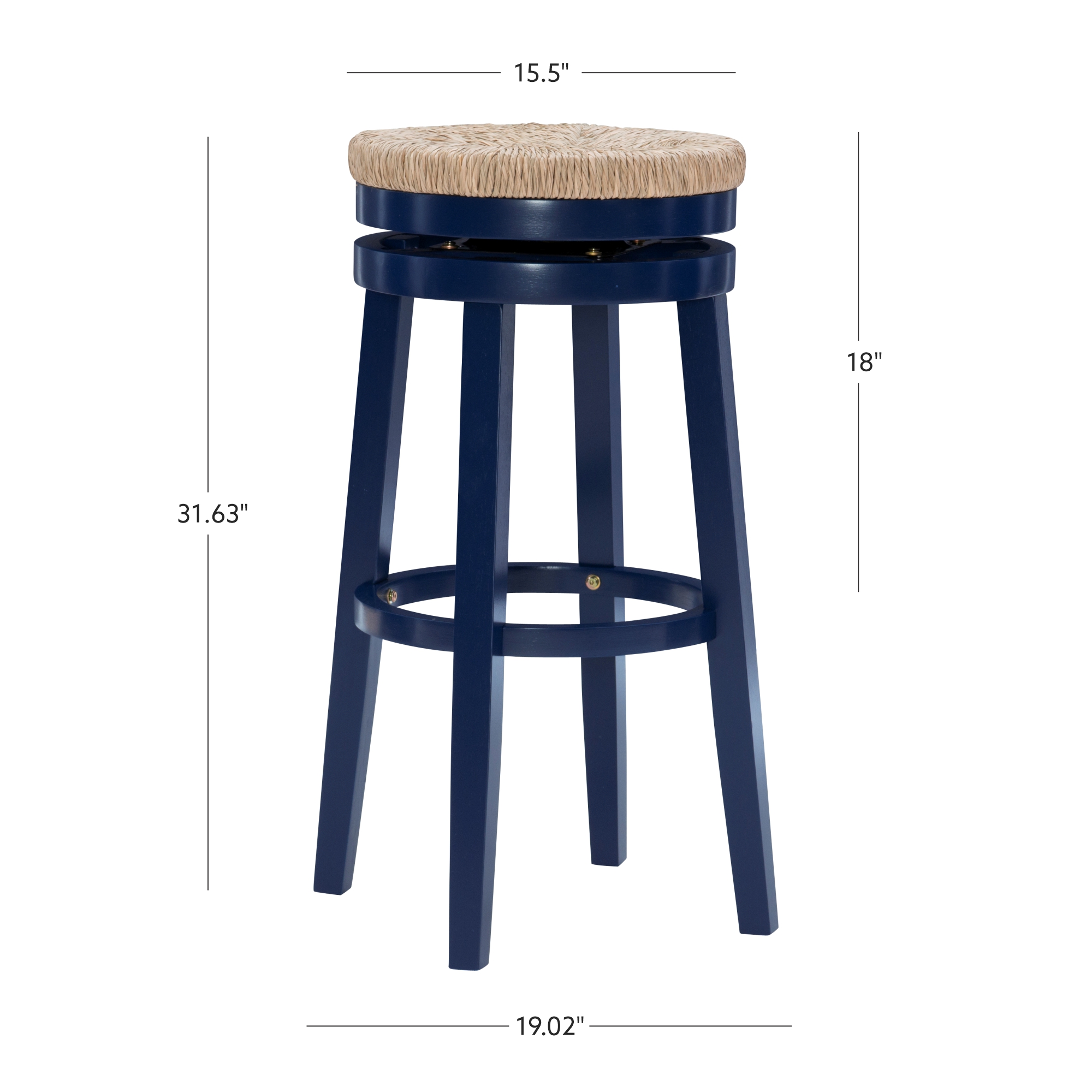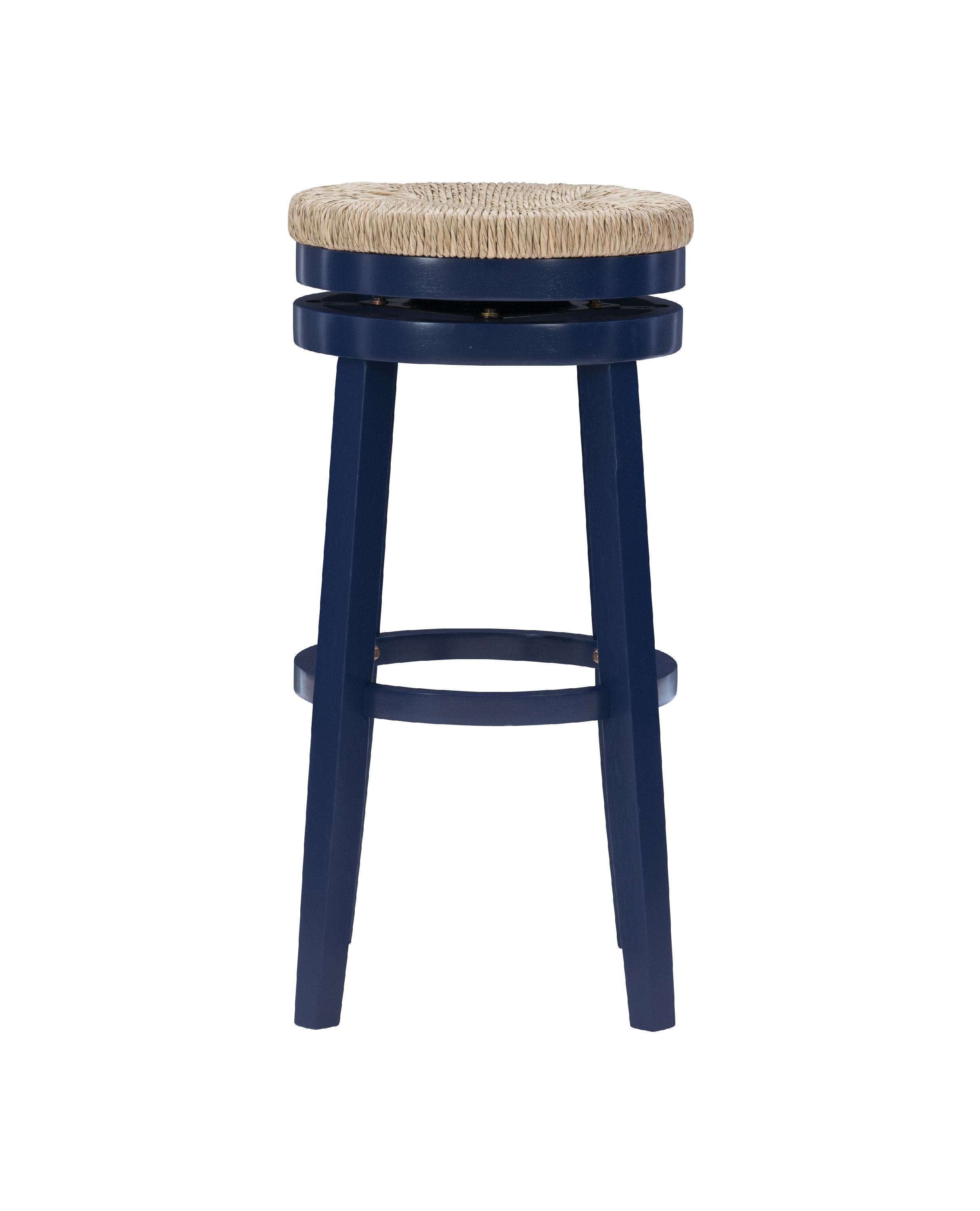 Morgan 31″ Backless Bar Stool with Swivel, Navy Blue with Natural Rush