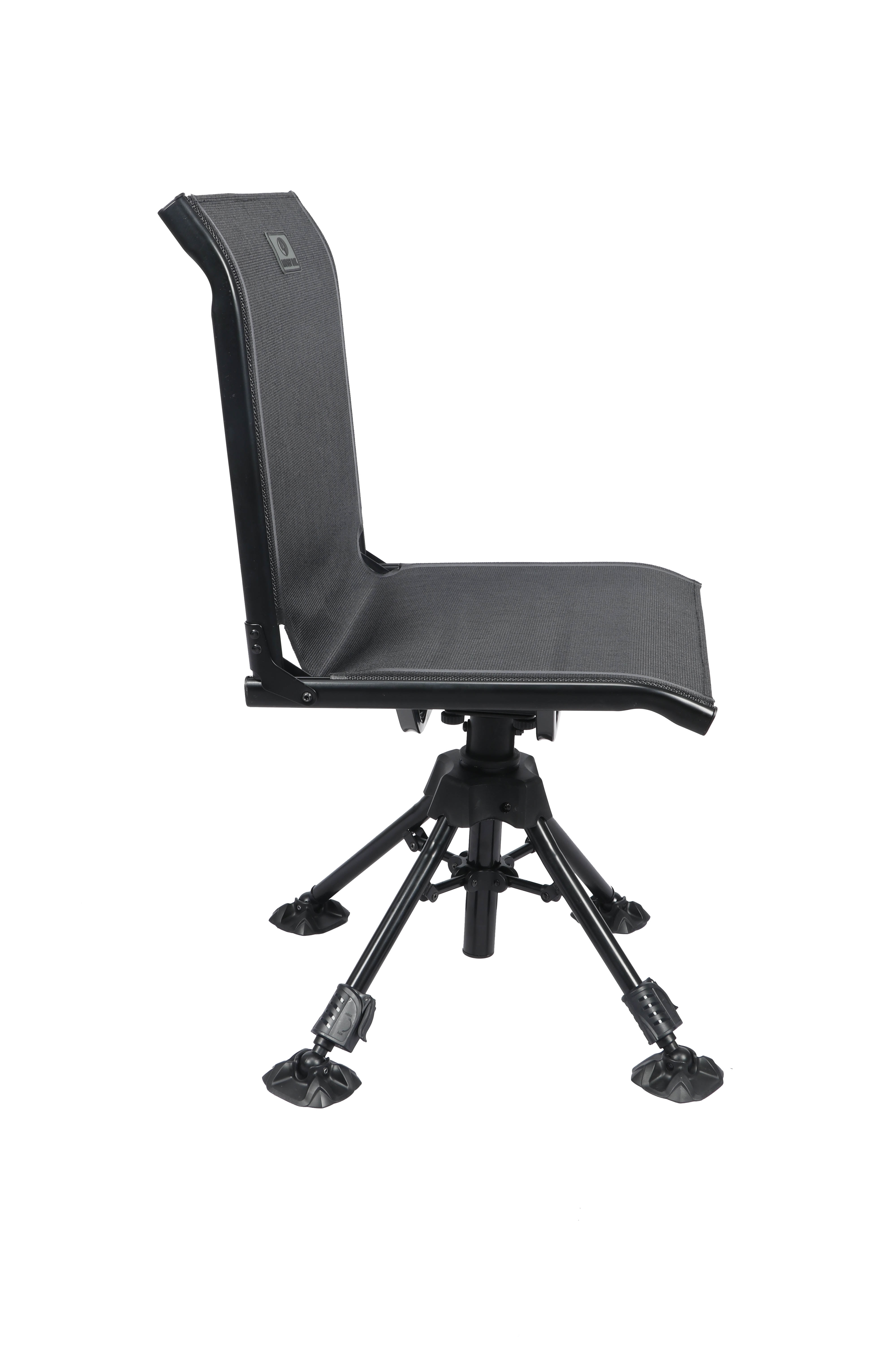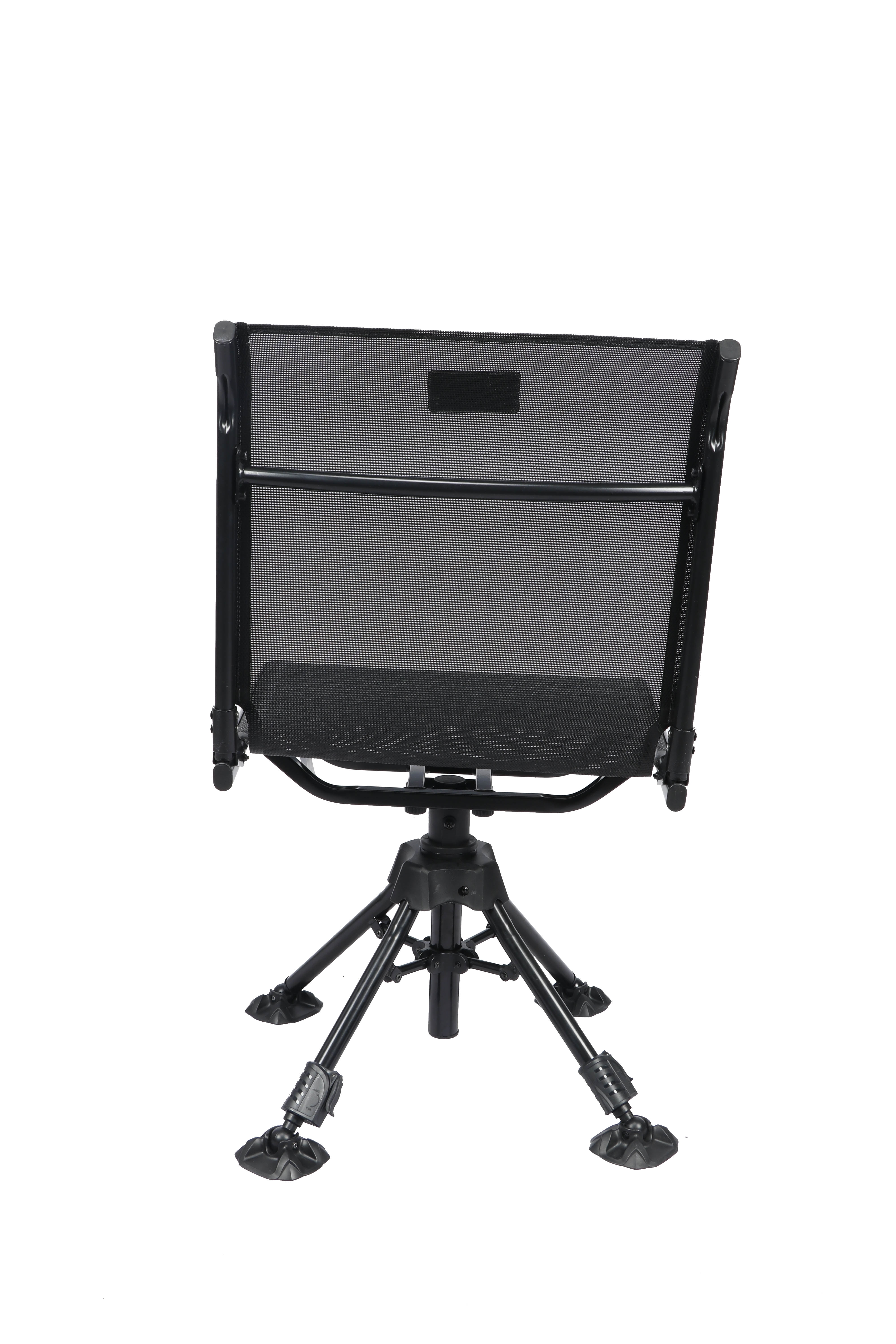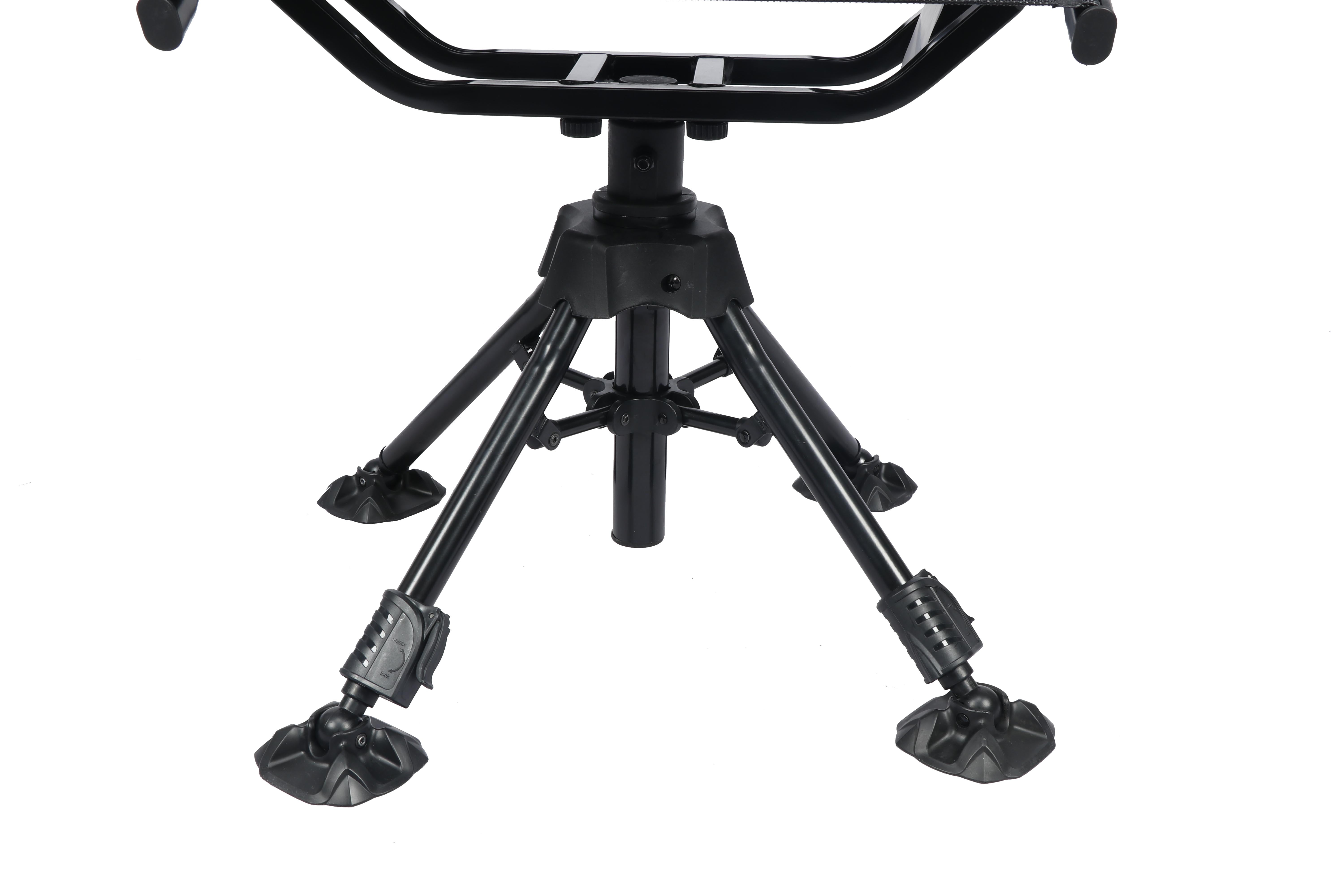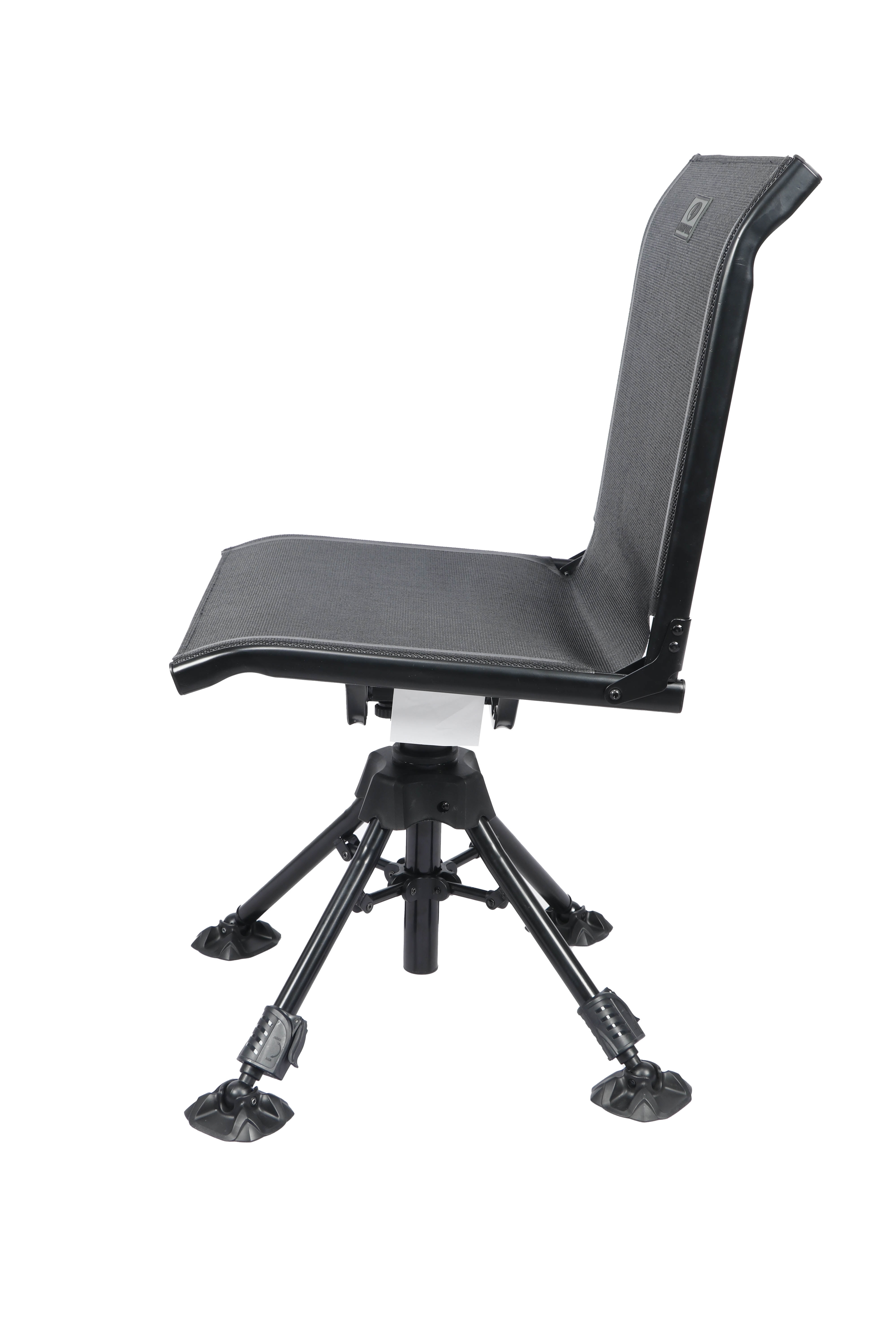 Mossy Oak Swivel Blind Chair with a 360° spin. Four supporting feet can also be adjusted to different lengths and firmly locked by buckles Mud feet to prevent sinking in soft soil Strong, breathable Duramesh keeps you comfortable Swivel base allows for great range of motion Unisex Adult size