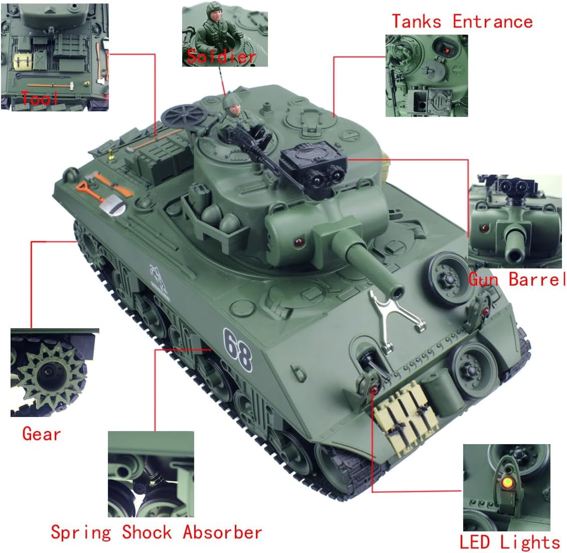 Mostop Remote Control Tank, Sherman M4A3 Main Battle RC Tank Toys for Ages 8 +, Green, Plastic