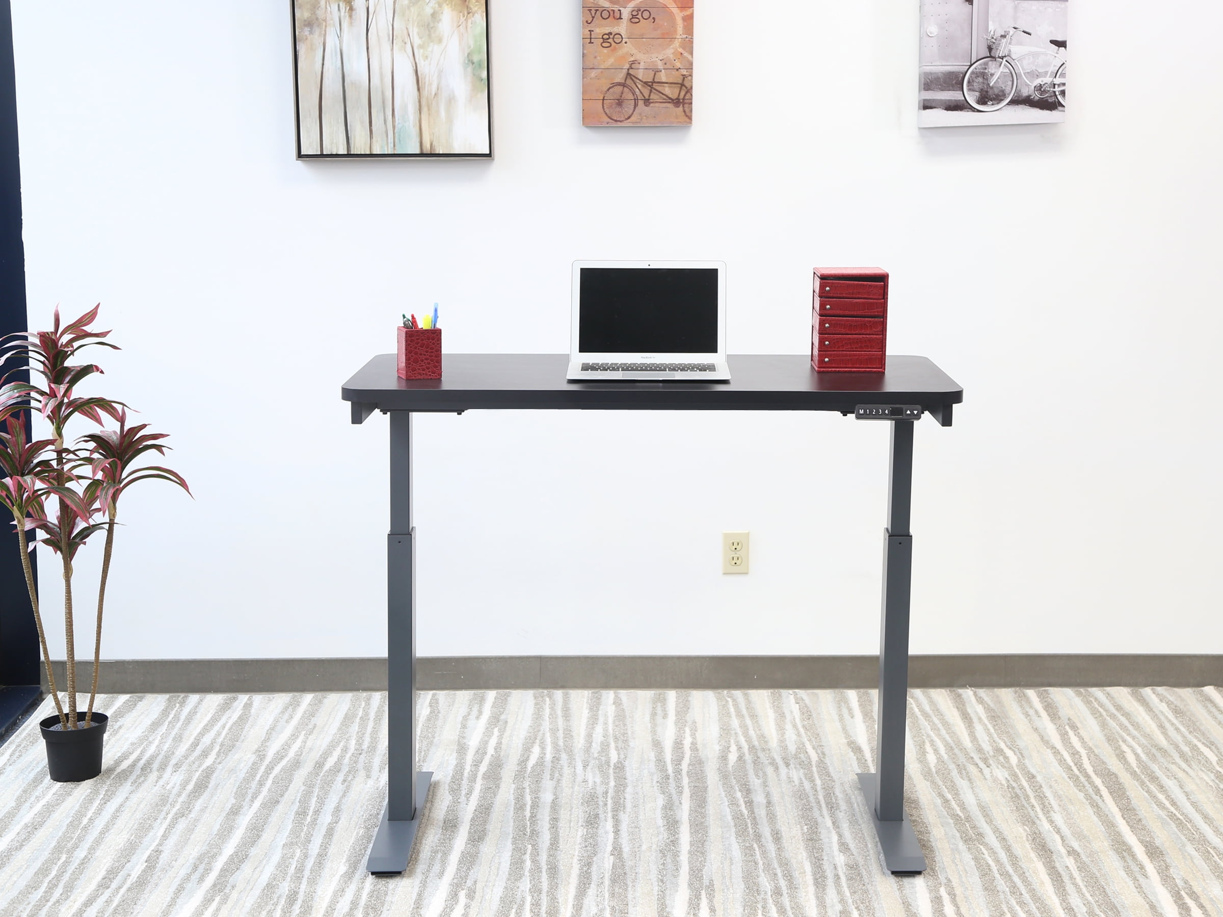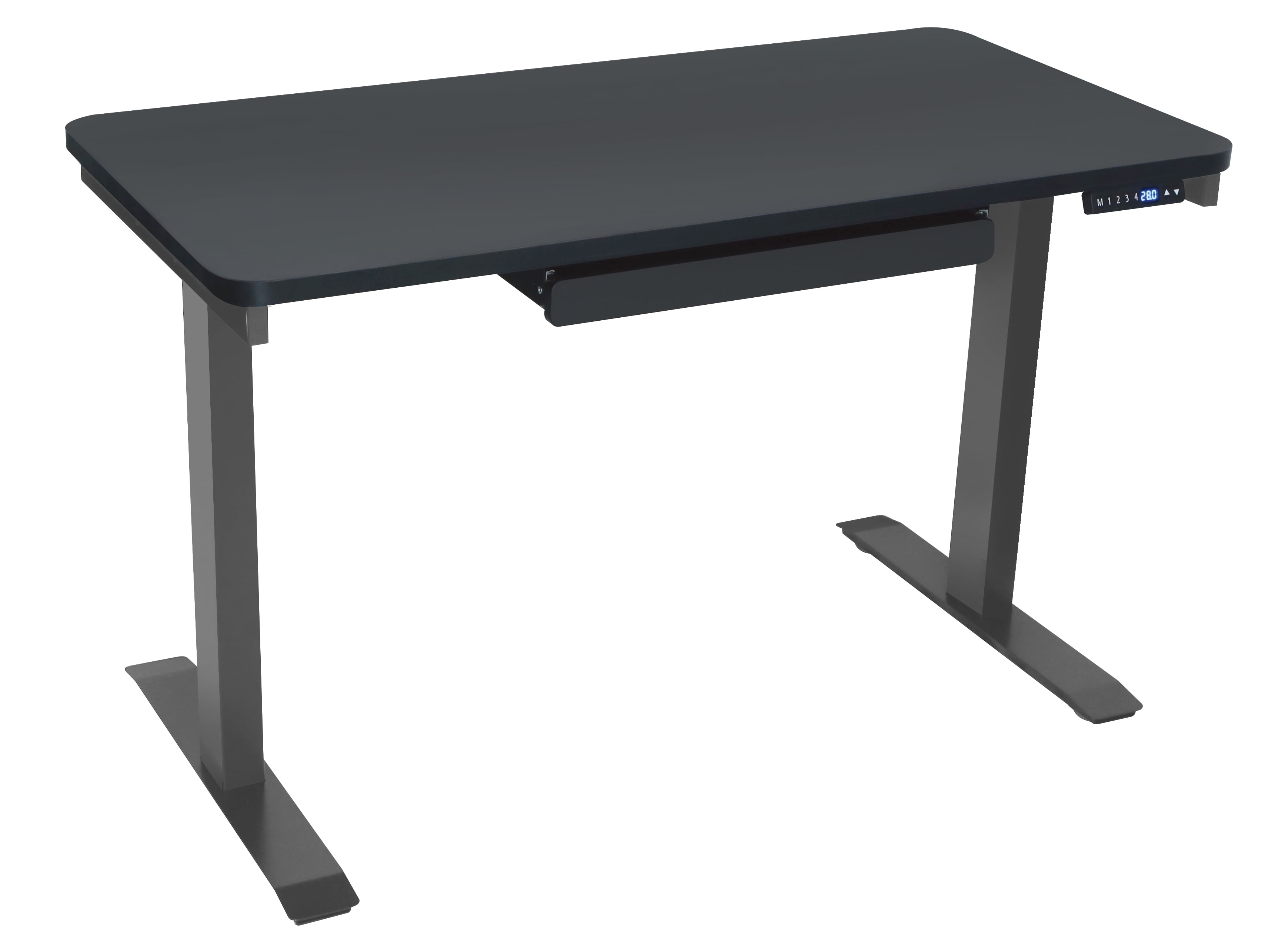 Electric Height Adjustable Sit & Stand Desks 24″ x 48″ Desktop with 28″ – 48″ Adjustable Height In compliance with the following national and international certifications: UL, ETL, CE, EMC, CSA, BIFMA and EIN526-527 Easy to assemble – less than 30 minutes with only two primary components – frame/legs pre-assembled and desk surface. Sliding desk drawer installed for additional storage Manually fine tune your heights by the touch of a button Motorized control system with 4 pre-set height memories Built to Last – Motionwise frame?s are steel constructed with a beautiful powder coat finish sporting an impressive lift capability of 225 lbs. One USB Charge port Dual Synchronized Motors