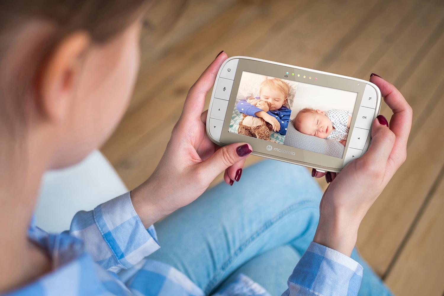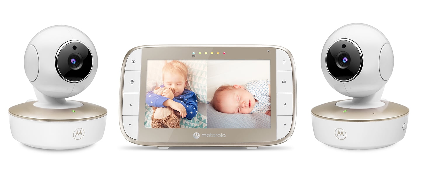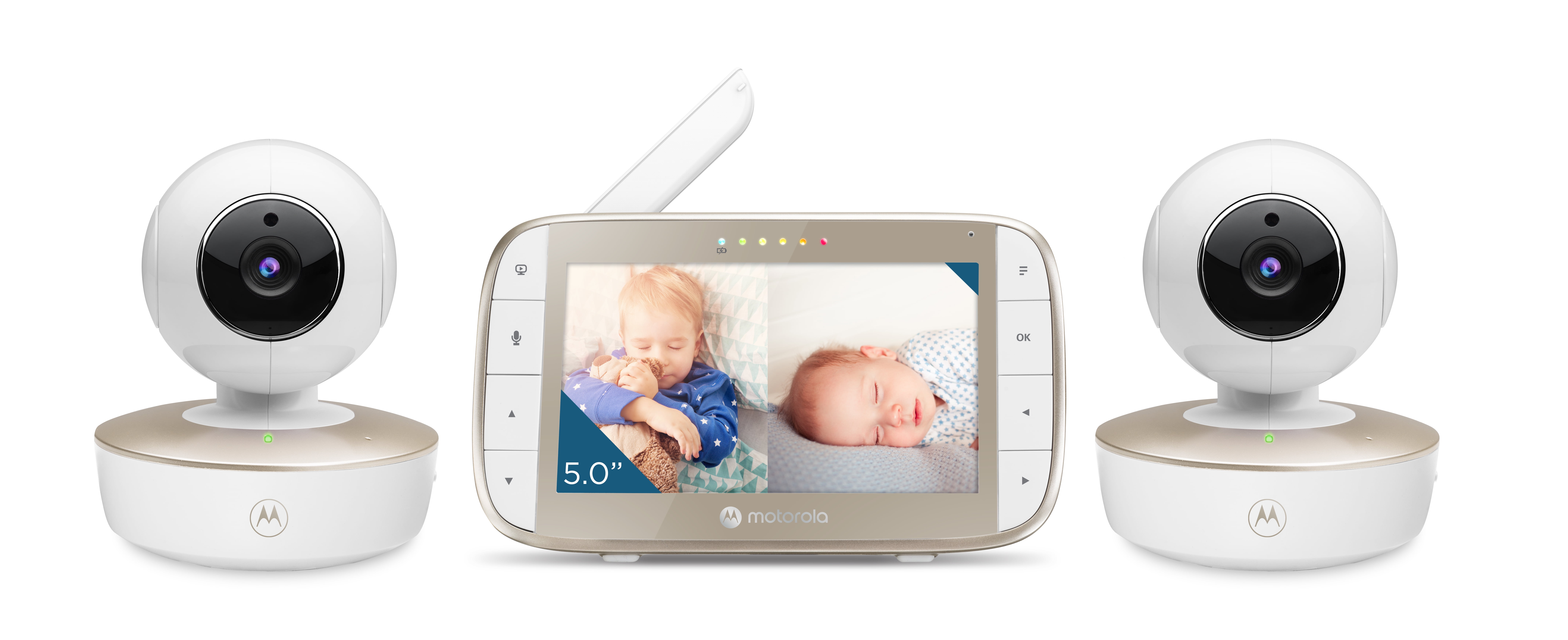 MOTOROLA VM50G-2 5″ Screen Video Baby Monitor with (2) Remote Pan, Tilt & Digital Zoom Cameras Motorola VM50G-2 includes a 5″ screen with split-screen viewing and one with remote pan, tilt & digital zoom cameras with night vision. Speak to your little ones with two-way talk, soothe them with pre-loaded lullabies, and know if their rooms are too hot or too cold with room temperature monitoring. Stay connected throughout your home with up to 1,000ft (300m) range and never miss a peep with the high sensitivity microphone. Monitor What Matters. Use the large, 5.0” display to get a clear and close up view of your little one and control the camera features. Lullabies and Room Temperature Monitoring Soothe your baby to sleep with the pre-loaded lullabies, and monitor their room temperature Beautifully Clear Video, Even at Night Our infrared night vision technology allows you to clearly view your baby even in the dark. Secure and Private Connection You can rest assured that your baby’s safety is our first priority, through our secure and private connectivity.