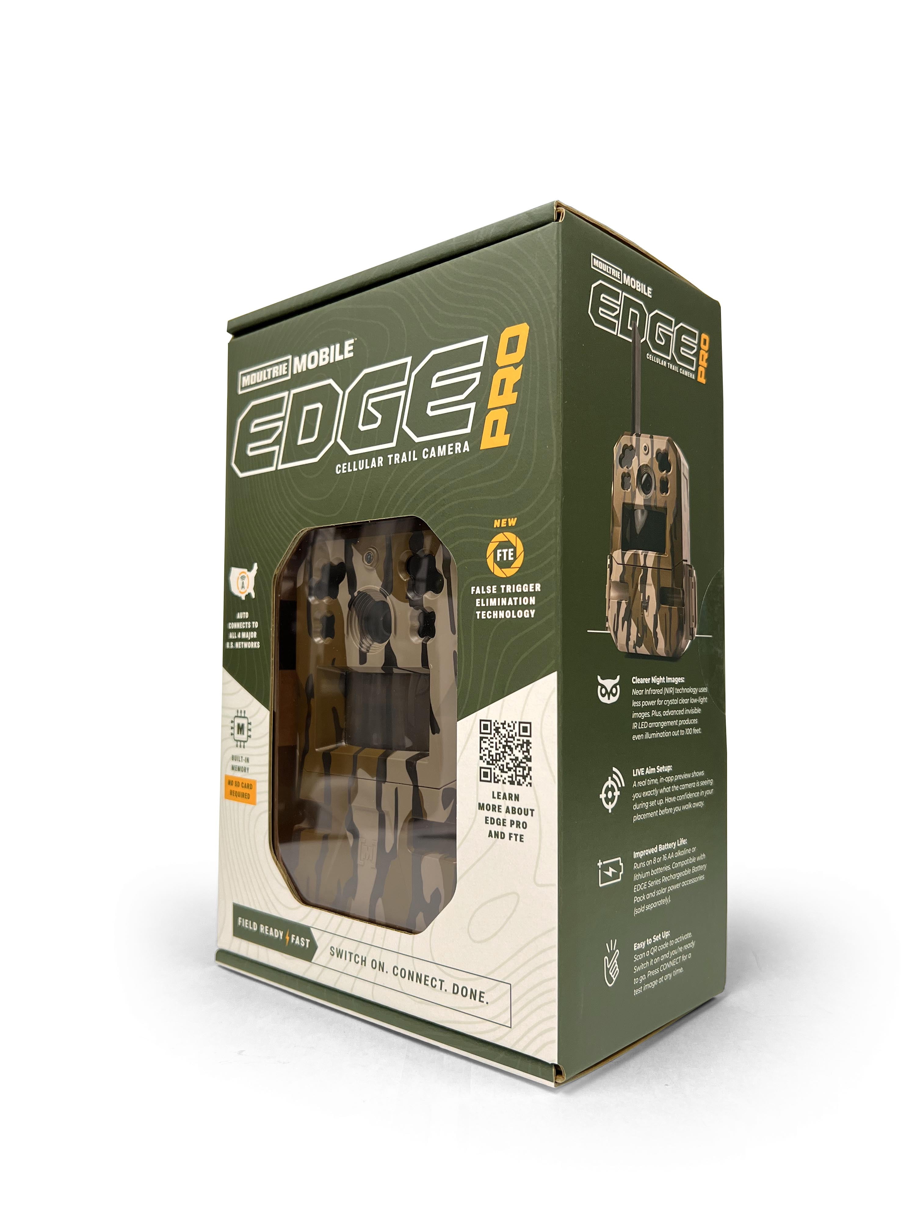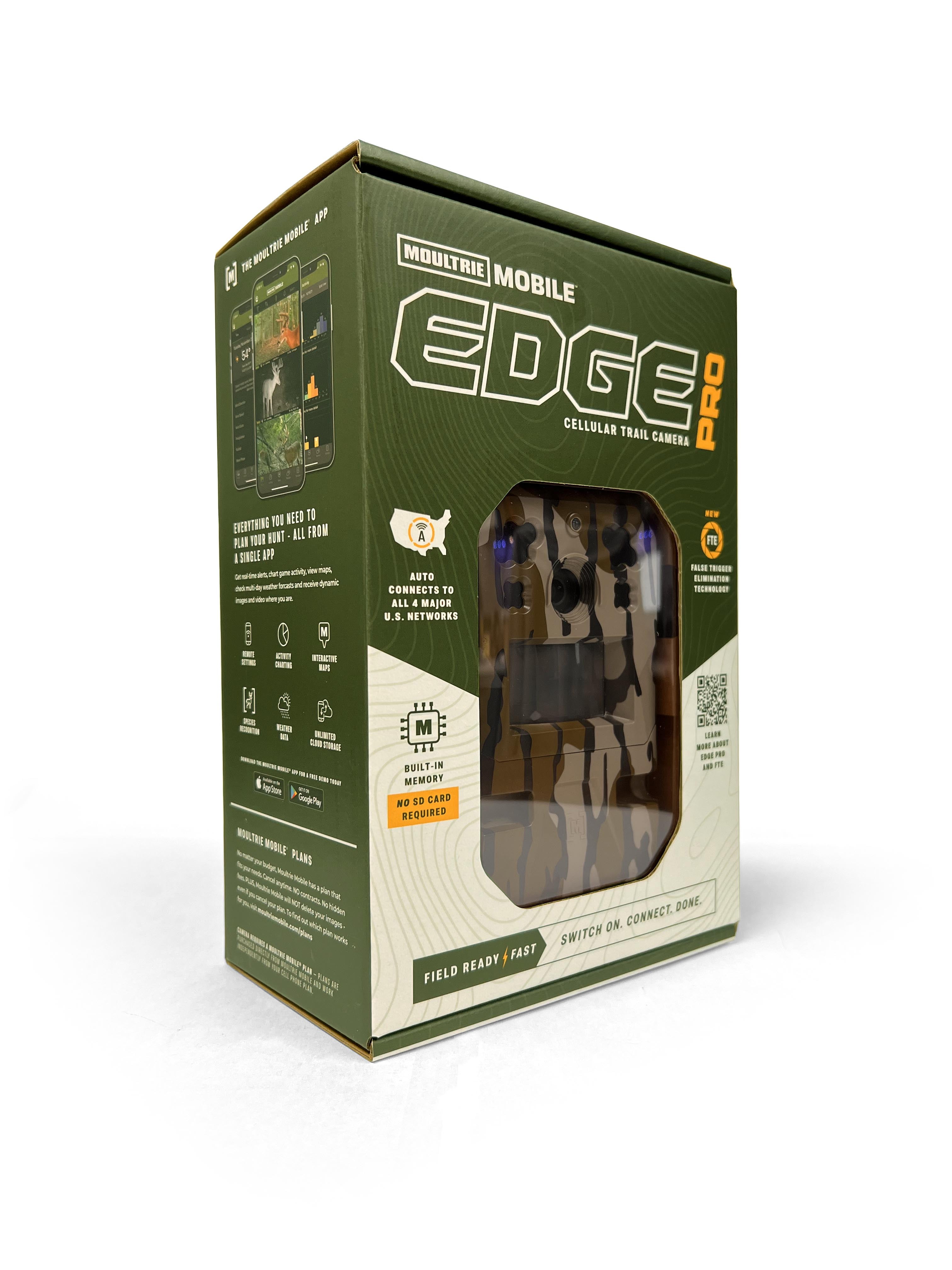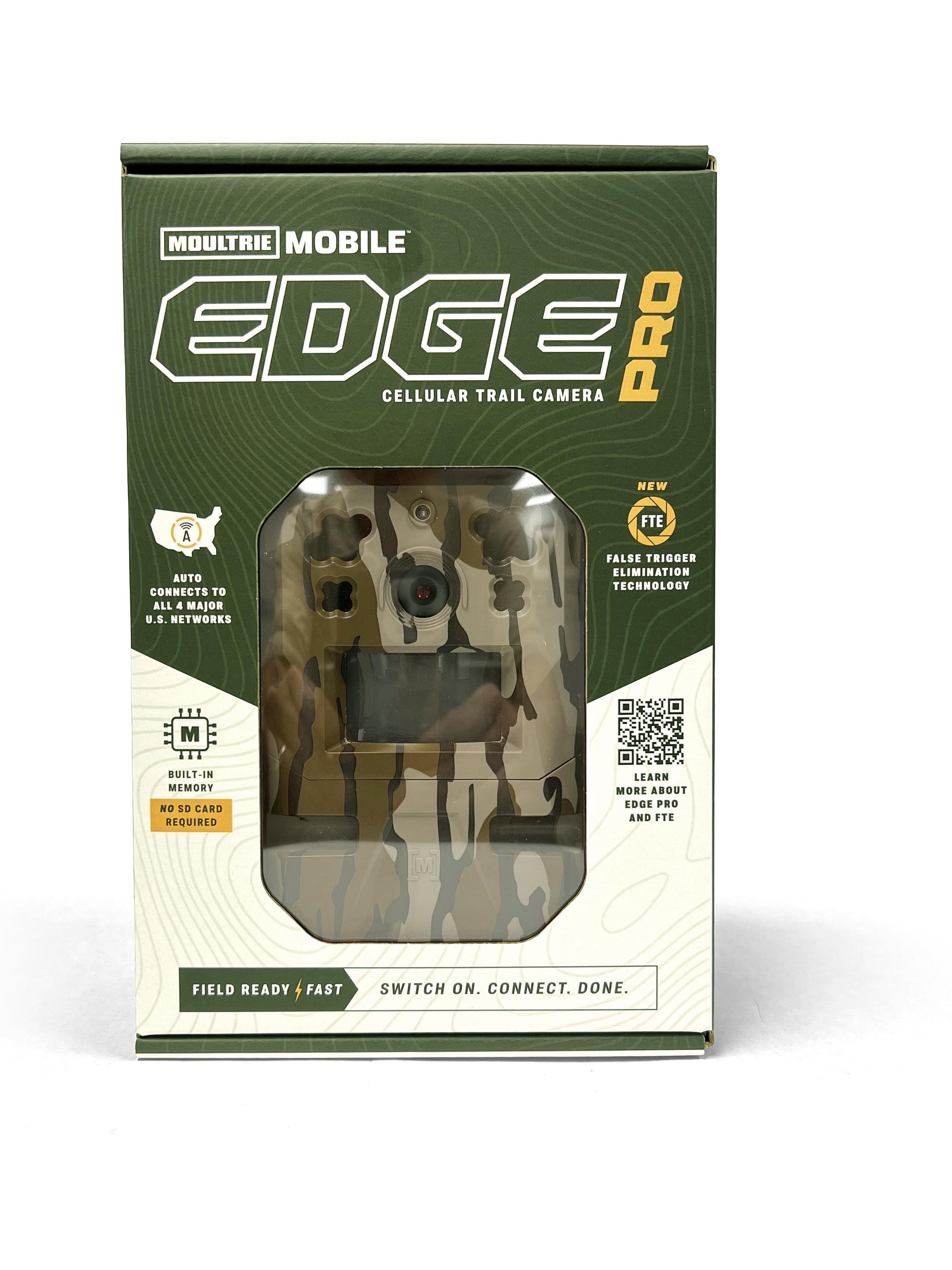 Introducing the Moultrie EDGE PRO Cellular Trail Camera — the ultimate upgrade for your trail camera experience! We’ve taken all the proven features of the EDGE camera and amplified them to deliver unparalleled performance – meet EDGE PRO. Say goodbye to false triggers with our groundbreaking False Trigger Elimination Technology (FTE). With Smart Zones, you can specify specific areas in the camera’s field of view where you don’t want it to trigger an image. No more bothersome notifications from swaying branches! Our Smart Trigger feature intelligently identifies and captures only the target species that matter to you, ensuring you never miss a valuable shot. Experience the power of Nyxel® NIR technology, which harnesses the near-infrared spectrum to provide clearer low-light images while consuming less power. Connect effortlessly to the strongest signal from a range of nationwide networks with our Auto Connect feature — no need to hassle with swapping SIM cards. Enjoy the convenience of built-in memory and unlimited cloud storage, eliminating the need for external memory purchases. With Live Aim, you gain real-time access to the camera’s image field, ensuring precise and efficient trail camera setup — no more uncertainty, as you can now confidently capture images of your desired area. Easily connect and conveniently manage Live Aim through the user-friendly Moultrie Mobile app, offering you seamless control and the peace of mind you deserve. Capture breathtaking moments with the high-performance sensor that delivers stunning 36MP detail and 1080p video with HD audio. The lightning fast 0.5-second trigger with enhanced accuracy, along with a 100′ detection and flash range, ensures you achieve incredible coverage and full-frame shots of that impressive buck. Capture stunning nighttime pictures without alarming game using the low-glow infrared flash. Stay connected with excellent connectivity provided by the Cellboost antenna, which conveniently folds down for easy transport. Power your camera with either 8 or 16-AA alkaline or lithium batteries (not included), or consider solar-power accessories for even greater flexibility (not included). Maximize the potential of your Moultrie trail camera with the industry-leading Moultrie Mobile app. Accessible plans starting at just $9.99 per month offer unmatched features. Setting up the camera is a breeze thanks to the included QR code activation process. Simply press the connect button to capture a test image, and you’re ready to go.
