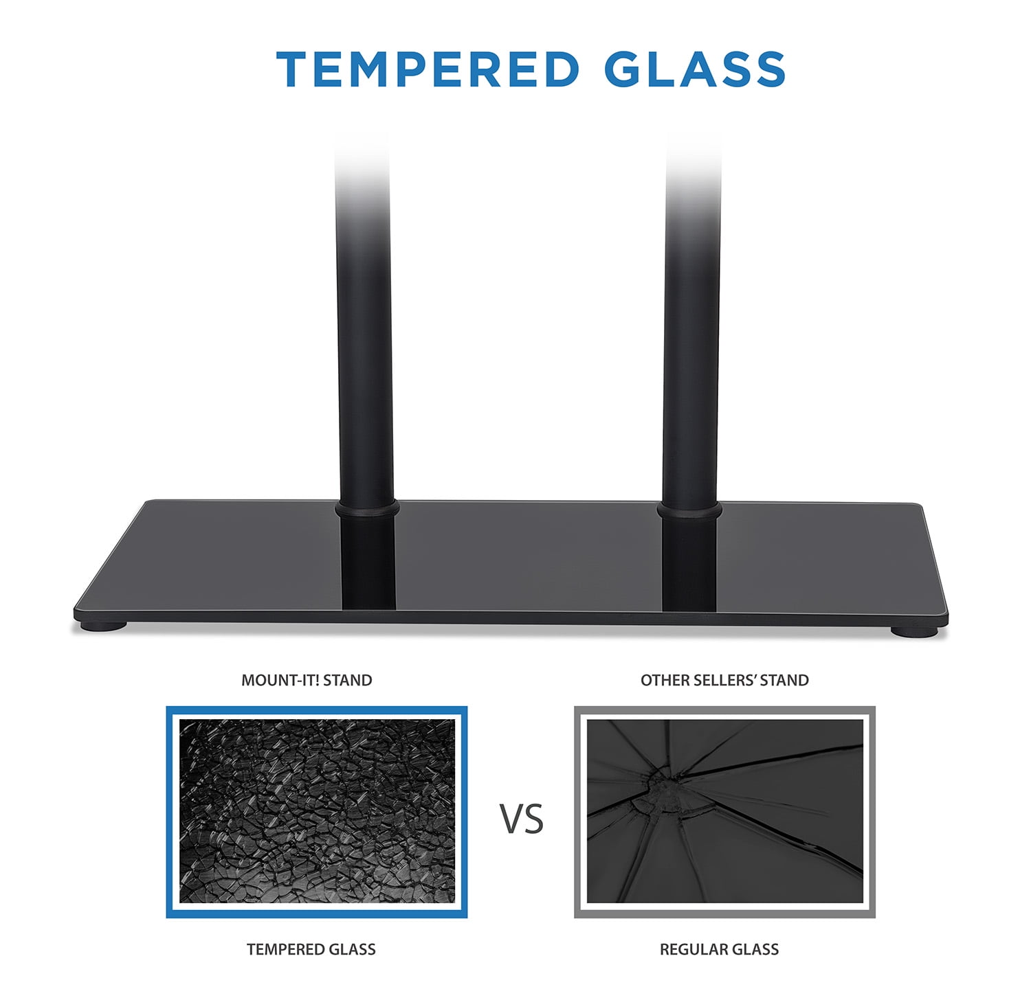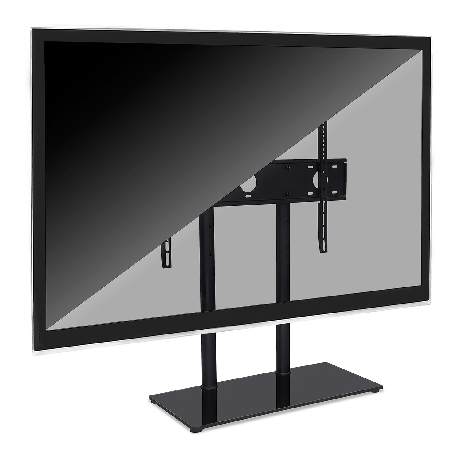Mount-It! Tabletop TV Stand | Fits 32-65 Inch TVs | Height Adjustable with Tempered Glass Base