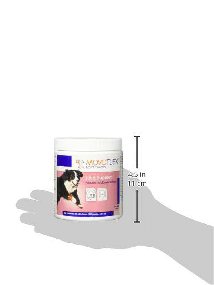 MOVOFLEX Soft Chews are a joint supplement formulated with a proprietary blend of ingredients to offer an alternative to glucosamine and chondroitin. The supplements are indicated for use in dogs, especially the early stages of joint discomfort. Indicated for use in dogs especially in the early stages of joint discomfort. Unique proprietary blend of ingredients. Innovative use of egg shell membrane with proven safety and efficacy. Highly palatable for optimal compliance. Single-chew dosing for dogs of all sizes for a full 60 day supply. Suitable for dogs with certain dietary restrictions because chews are free of gluten, sugar, shellfish, and salt.