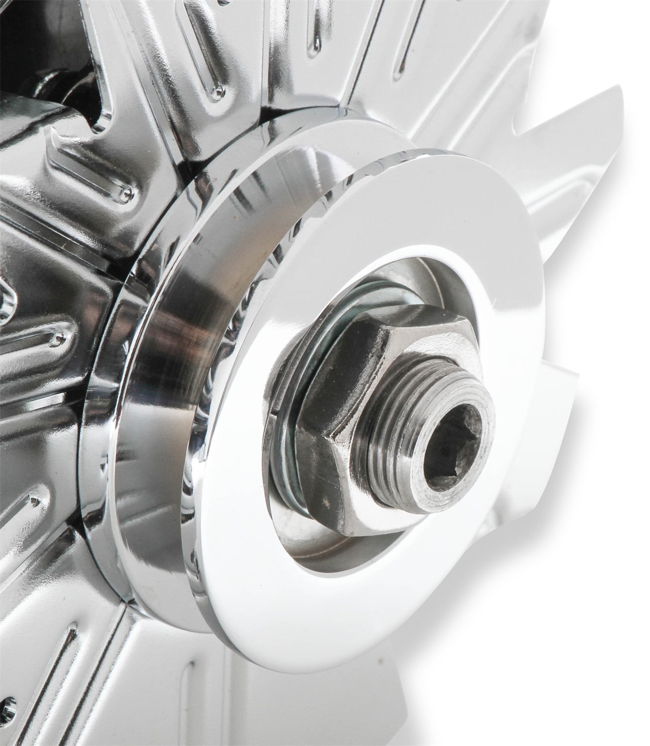Fits Most 1966-’72 GM Vehicles Bolt Spacing 6.6″ 80 Amps GM 10DN Style Alternator Chrome Plated Finish includes V-Belt Pulley – 1-Groove Use w/ OEM Style Regulator