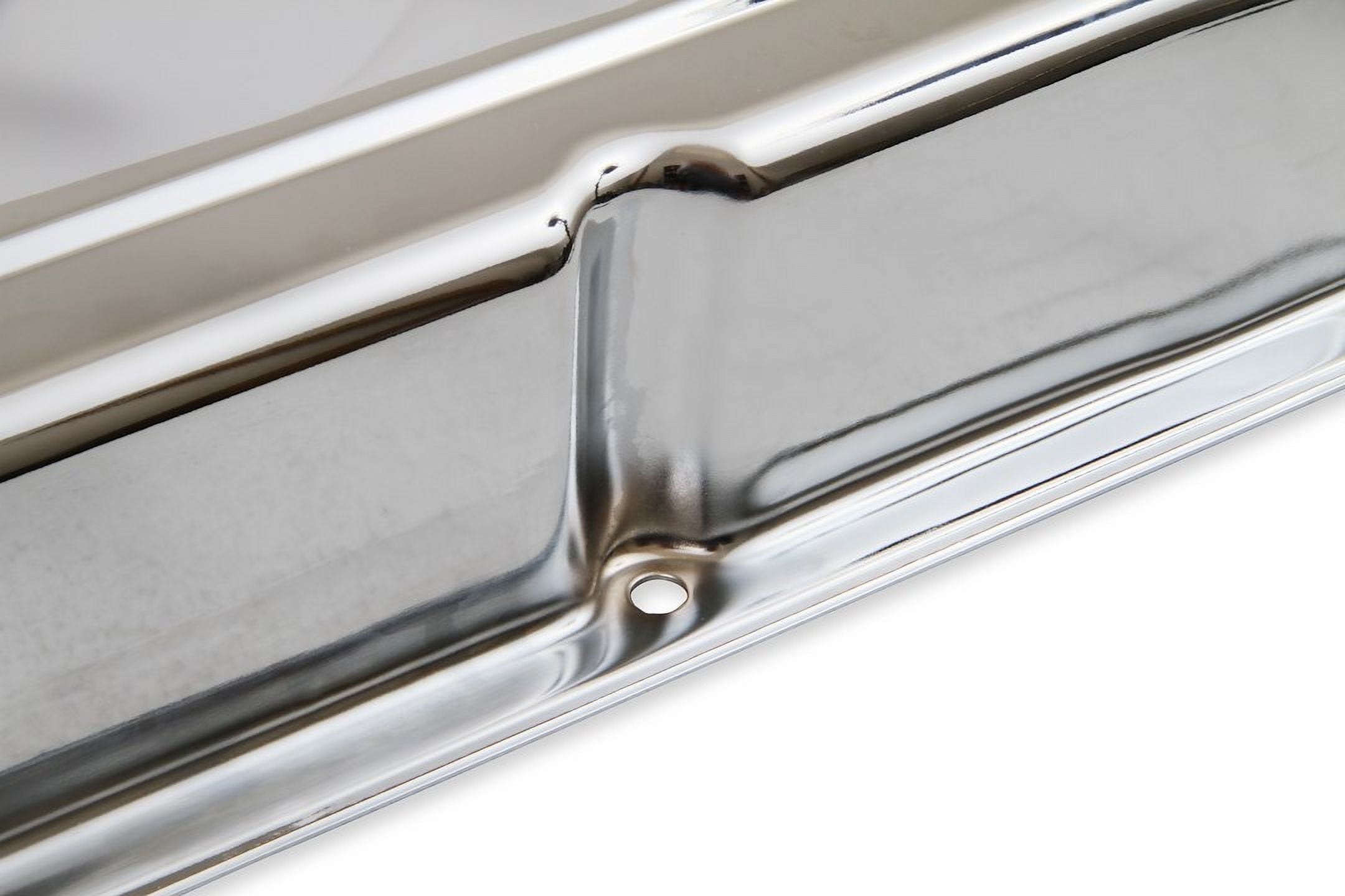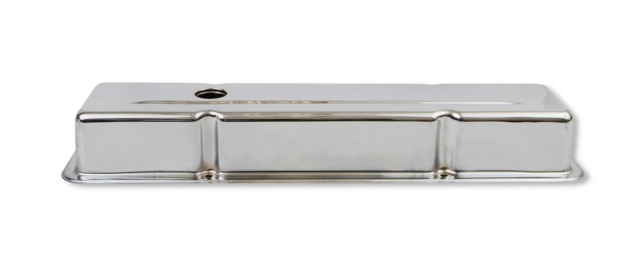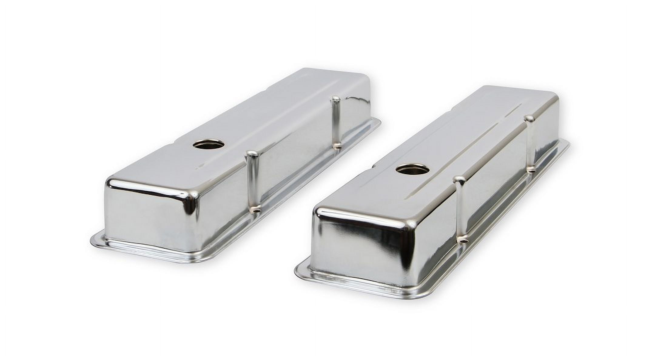 Chrome plated steel valve covers have a flat smooth top. Available for numerous applications. General Information Manufacturer: Mr. Gasket Manufacturer Part Number: Mr. Gasket UPC: 084041098004 Characteristics Engine Make/Size: Chevy Small Block (262-400) Finish: Chrome Material: Stamped Steel Valve Cover Style: Short Cylinder Head Type: Standard Fitment Guide 1977-1980 Buick Century 1978-1978 Buick LeSabre 1977-1980 Buick Regal 1977-1979 Buick Skylark 1955-1975 Chevrolet Bel Air 1958-1972 Chevrolet Biscayne 1969-1974 Chevrolet Blazer 1969-1972 Chevrolet Brookwood 1975-1986 Chevrolet C10 1961-1974 Chevrolet C10 Pickup 1968-1986 Chevrolet C10 Suburban 1975-1986 Chevrolet C20 1961-1974 Chevrolet C20 Pickup 1968-1986 Chevrolet C20 Suburban 1975-1986 Chevrolet C30 1961-1974 Chevrolet C30 Pickup 1967-1986 Chevrolet Camaro 1966-1986 Chevrolet Caprice 1964-1973 Chevrolet Chevelle 1963-1968 Chevrolet Chevy II 1955-1986 Chevrolet Corvette 1958-1958 Chevrolet Del Ray 1964-1986 Chevrolet El Camino 1975-1986 Chevrolet G10 1968-1974 Chevrolet G10 Van 1975-1986 Chevrolet G20 1968-1974 Chevrolet G20 Van 1975-1986 Chevrolet G30 1970-1974 Chevrolet G30 Van 1959-1985 Chevrolet Impala 1975-1986 Chevrolet K10 1961-1974 Chevrolet K10 Pickup 1968-1986 Chevrolet K10 Suburban 1975-1986 Chevrolet K20 1961-1974 Chevrolet K20 Pickup 1968-1986 Chevrolet K20 Suburban 1977-1986 Chevrolet K30 1968-1974 Chevrolet K30 Pickup 1975-1986 Chevrolet K5 Blazer 1969-1972 Chevrolet Kingswood 1973-1976 Chevrolet Laguna 1964-1983 Chevrolet Malibu 1970-1986 Chevrolet Monte Carlo 1975-1979 Chevrolet Monza 1969-1979 Chevrolet Nova 1955-1957 Chevrolet One-Fifty Series 1961-1966 Chevrolet Suburban 1969-1972 Chevrolet Townsman 1955-1960 Chevrolet Truck 1955-1957 Chevrolet Two-Ten Series 1975-1978 GMC C15 1975-1978 GMC C15 Suburban 1967-1974 GMC C15/C1500 Pickup 1967-1974 GMC C15/C1500 Suburban 1979-1986 GMC C1500 1979-1986 GMC C1500 Suburban 1975-1978 GMC C25 1975-1978 GMC C25 Suburban 1967-1974 GMC C25/C2500 Pickup 1967-1974 GMC C25/C2500 Suburban 1979-1986 GMC C2500 1979-1986 GMC C2500 Suburban 1975-1978 GMC C35 1967-1974 GMC C35/C3500 Pickup 1979-1986 GMC C3500 1978-1986 GMC Caballero 1975-1978 GMC G15 1967-1974 GMC G15/G1500 Van 1979-1986 GMC G1500 1975-1978 GMC G25 1967-1974 GMC G25/G2500 Van 1979-1986 GMC G2500 1975-1978 GMC G35 1971-1974 GMC G35/G3500 Van 1979-1988 GMC G3500 1970-1986 GMC Jimmy 1975-1978 GMC K15 1975-1978 GMC K15 Suburban 1967-1974 GMC K15/K1500 Pickup 1968-1974 GMC K15/K1500 Suburban 1979-1986 GMC K1500 1979-1986 GMC K1500 Suburban 1975-1978 GMC K25 1975-1978 GMC K25 Suburban 1967-1974 GMC K25/K2500 Pickup 1968-1974 GMC K25/K2500 Suburban 1979-1986 GMC K2500 1979-1986 GMC K2500 Suburban 1977-1978 GMC K35 1968-1974 GMC K35/K3500 Pickup 1979-1986 GMC K3500 1971-1977 GMC Sprint 1977-1977 Oldsmobile Custom Cruiser 1978-1980 Oldsmobile Cutlass 1978-1980 Oldsmobile Cutlass Calais 1980-1980 Oldsmobile Cutlass Cruiser 1978-1980 Oldsmobile Cutlass Salon 1978-1980 Oldsmobile Cutlass Supreme