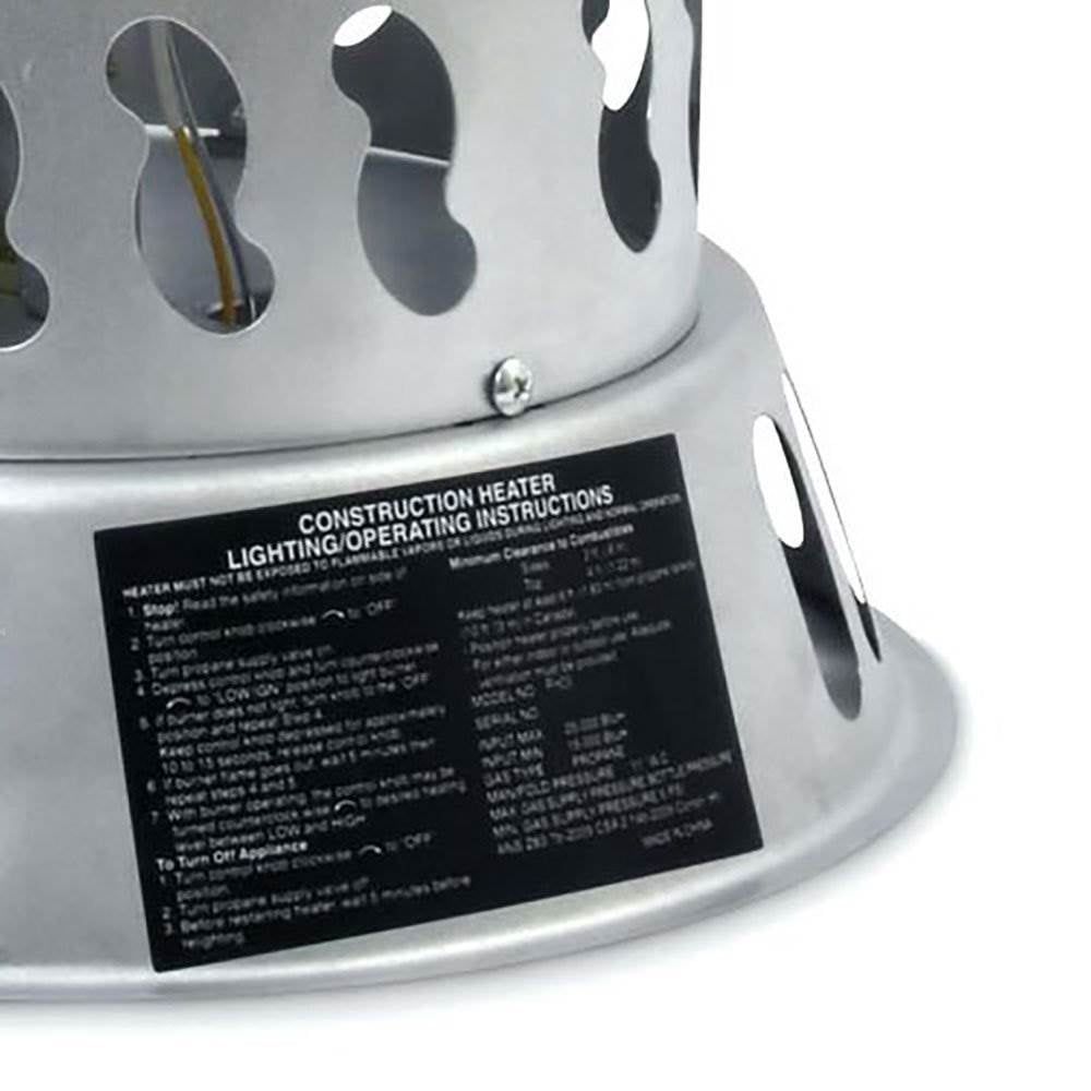 Take the edge off this winter in your garage, on your patio, in your hunting blind, or on the construction site Heater outputs between 15,000 25,000 BTUs per hour Use the 10 foot hose to hook up with standard 20 pound propane gas tank (not included) Operates up to 17 hours on a single tank Features a thermo electric safety valve and standing pilot for increased safety and peace of mind No electricity required, operates on gas with a push to start piezo ignition Quiet, odorless, and clean burning Heats up to 625 square feet of space Specifications: Model: MH25CVX BTUs per hour: 15,000-25,000 BTUs per hour Tank size: 20 pound propane cylinder (not included) Fuels consumption: 0.176 pounds per hour Use: Outdoor only Fuel type: Liquid propane Heat type: Convection Ignition: Piezo