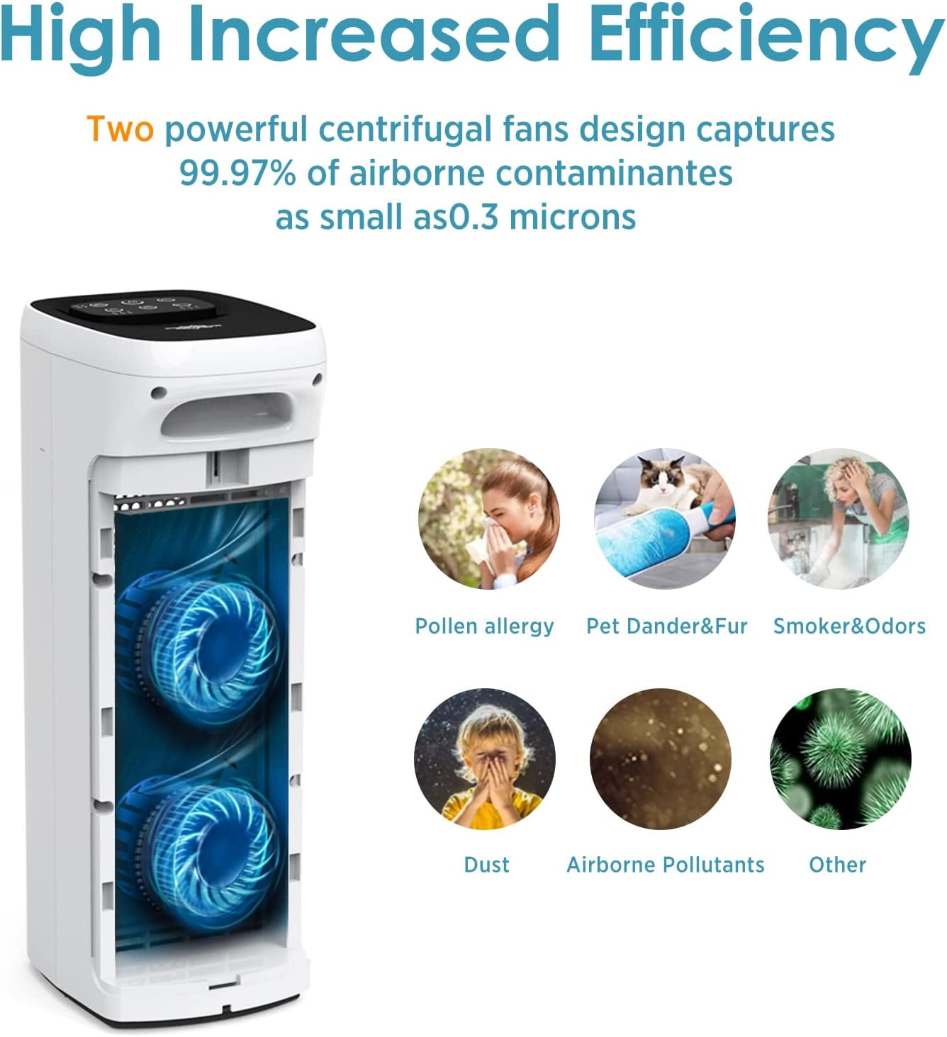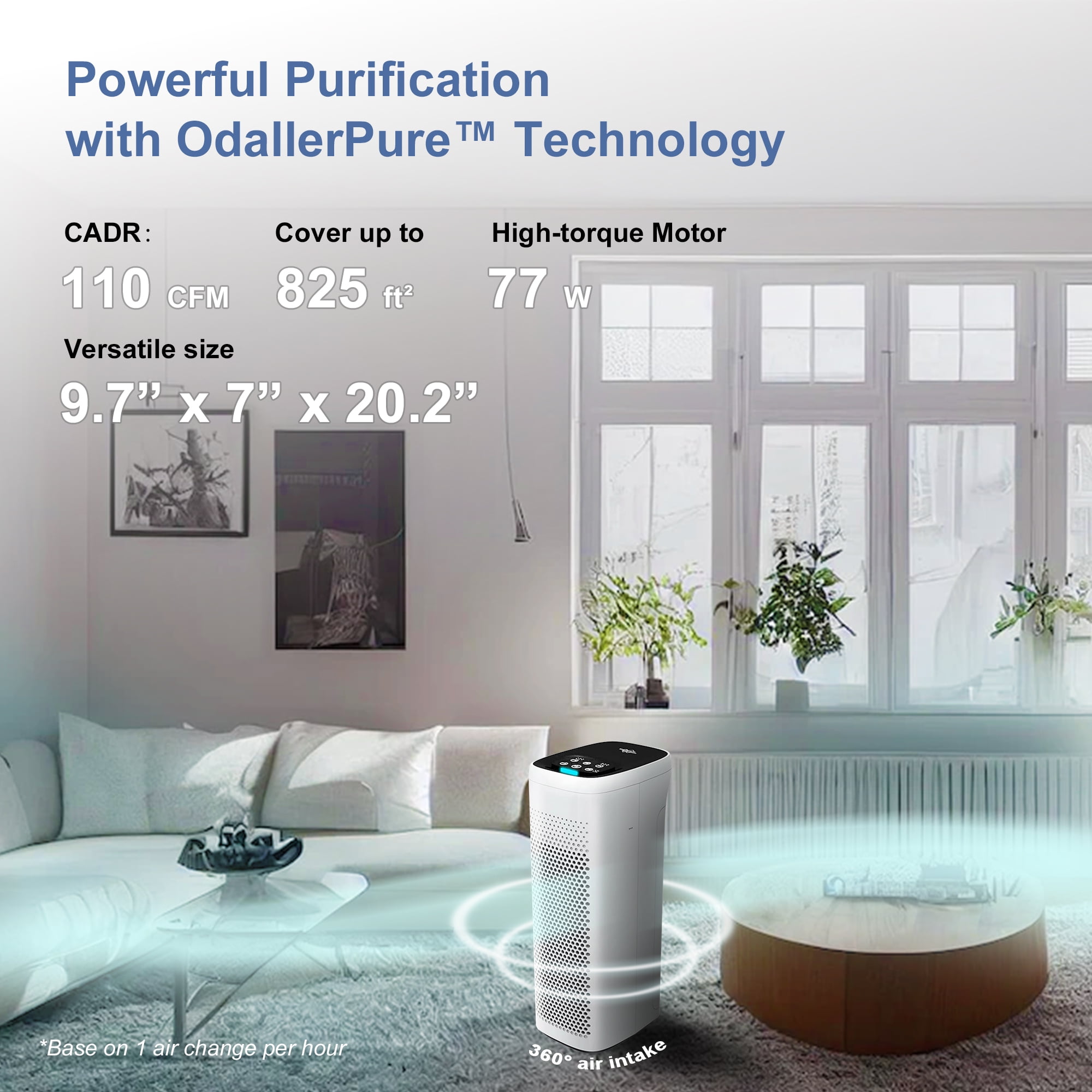 The MS18 air purifier perfect fit for home living rooms, large family rooms, bedrooms, offices, nurseries, and kitchens. 825 square feet/77 square meters in 60 minutes. 1 Pre-Filter(Washable) with 3 Stages HEPA Filtration System (Unwashable) Reduces up to 99.97% of particles as small as 0.3 microns in the air Remove dust, pet dander, hair, pollen, cigarette smoke, odors, VOCs, and more. Quiet Operation only 20-30db of noise. A HEPA air filter could be used for more extended time