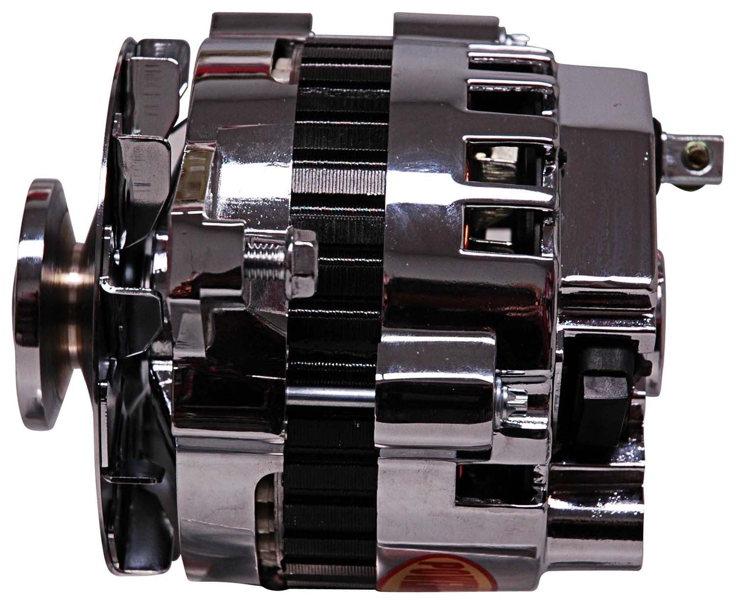 This alternator features 160 AMPS and a show quality chrome finish!;Whether you need a high output alternator to power your muscle car, street rod or touring machine, MSD has you covered with the DynaForce Alternator. For the street, MSD offers a 120 or 160 amp one-wire alternator. Not only are they designed for extreme output at higher rpm, but MSD balances the current output to keep your electronic components up to speed during idle and lower rpm operation as MSD ll. Both the 120 and 160 Amp alternators feature one-wire installation to keep things clean, easy and effective. The charge post of the alternators is moved to the side of the housing to allow for improved clearance to the block, plus a pulley baffle is included to ensure there is never any fan-to-belt issues (common at high rpm on lesser alternators).;