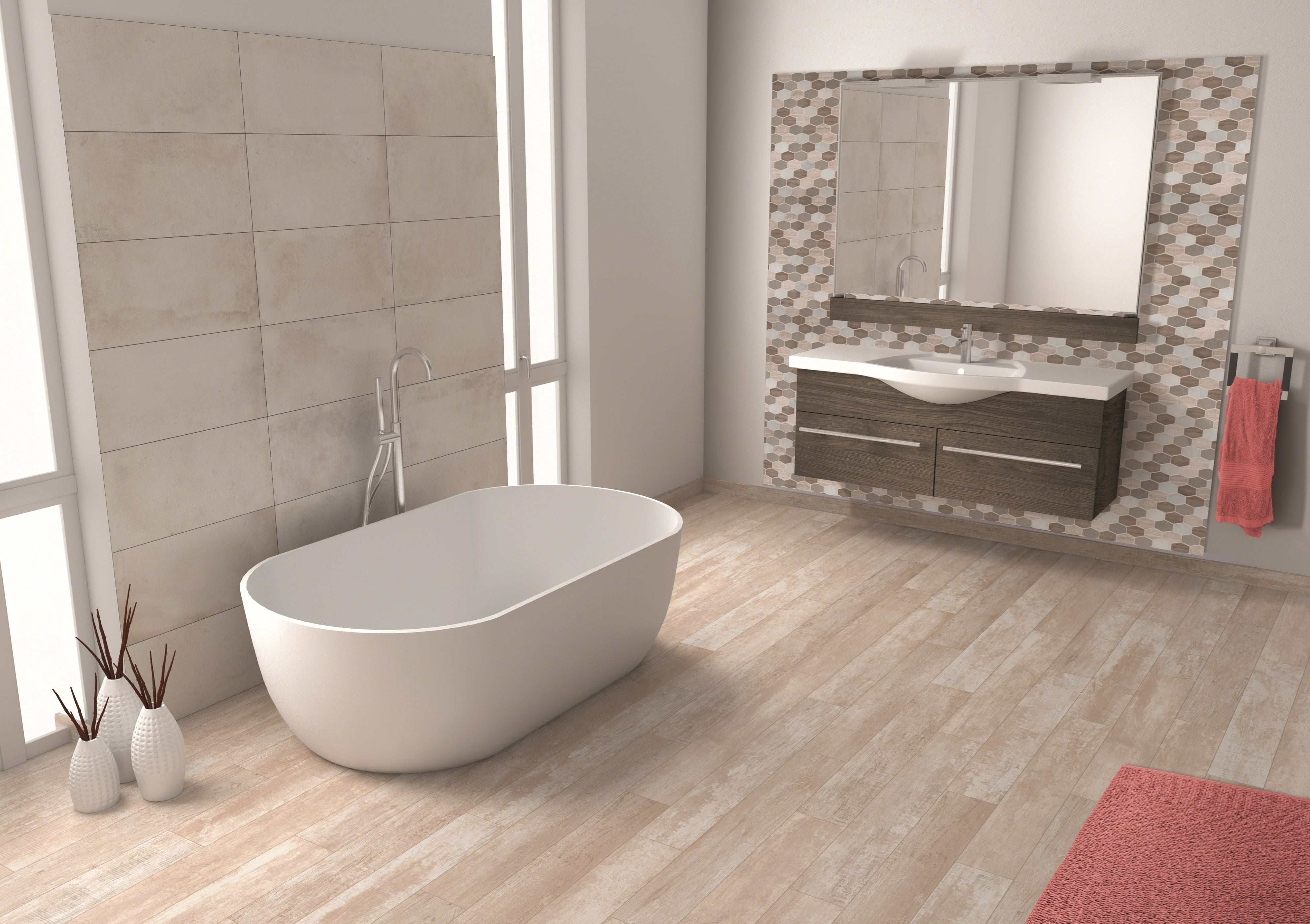 9.7 square feet, 10 pieces per case, case weight is 50 lbs. Grade one, natural marble mosaic for floor, wall and countertop use 12 in. width x 12 in. length x 10 mm thick mesh-mounted mosaic, elongated hexagon brick pieces Honed finish with a medium sheen and random variation in tone