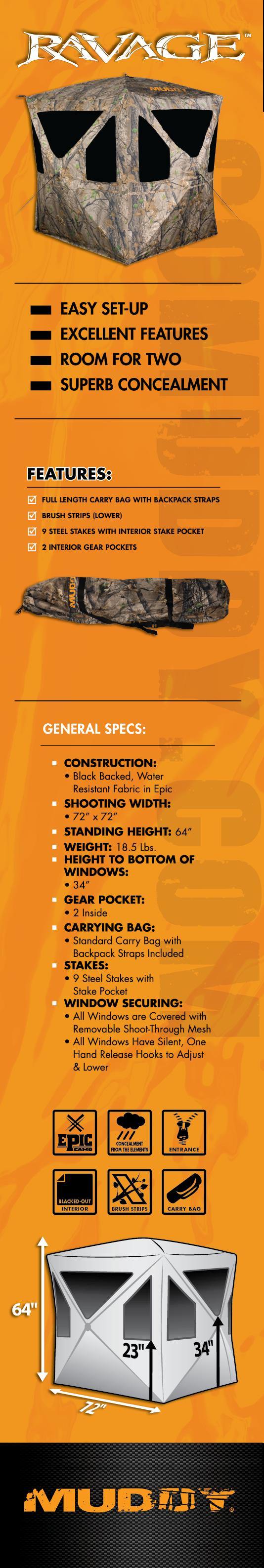 Muddy Hunting Whitetail Deer Buck Hog Silent Standing Height 64” Epic Camo Pattern Ravage Ground Blind