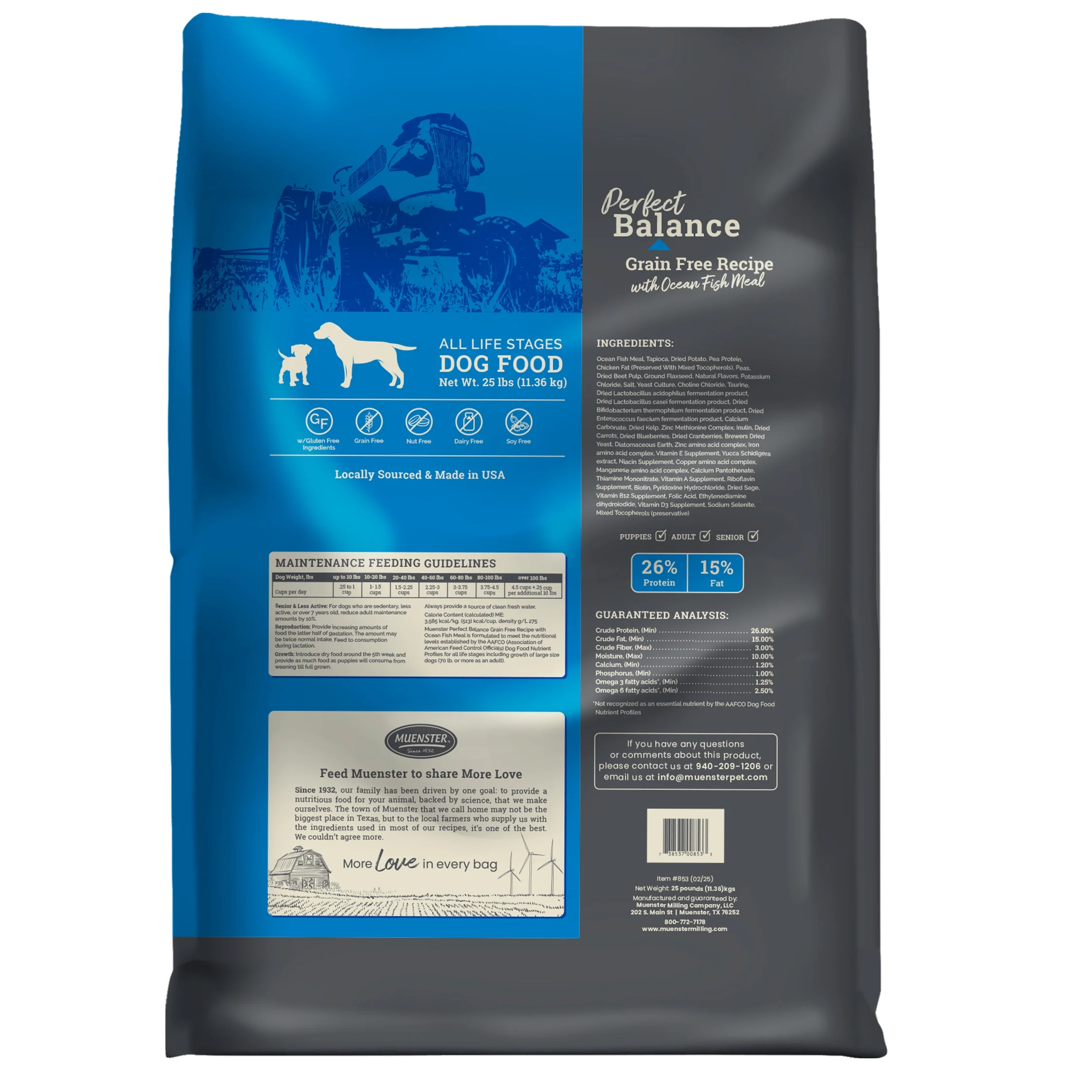 Muenster Perfect Balance Grain Free Ocean Fish Dog Food, All Life Stages, 25 lb Bag